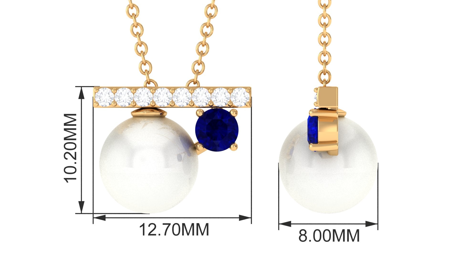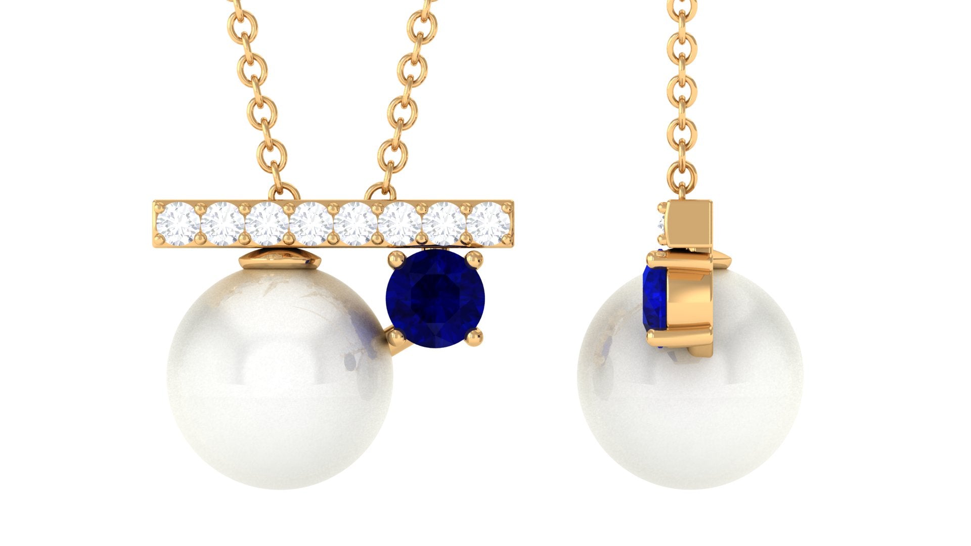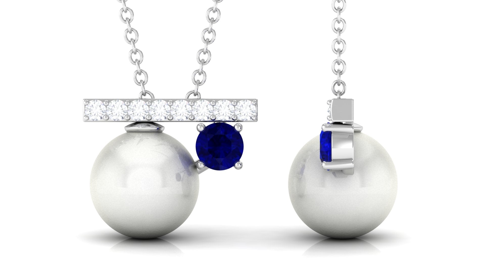 Round Freshwater Pearl and Blue Sapphire Estate Necklace with Moissanite