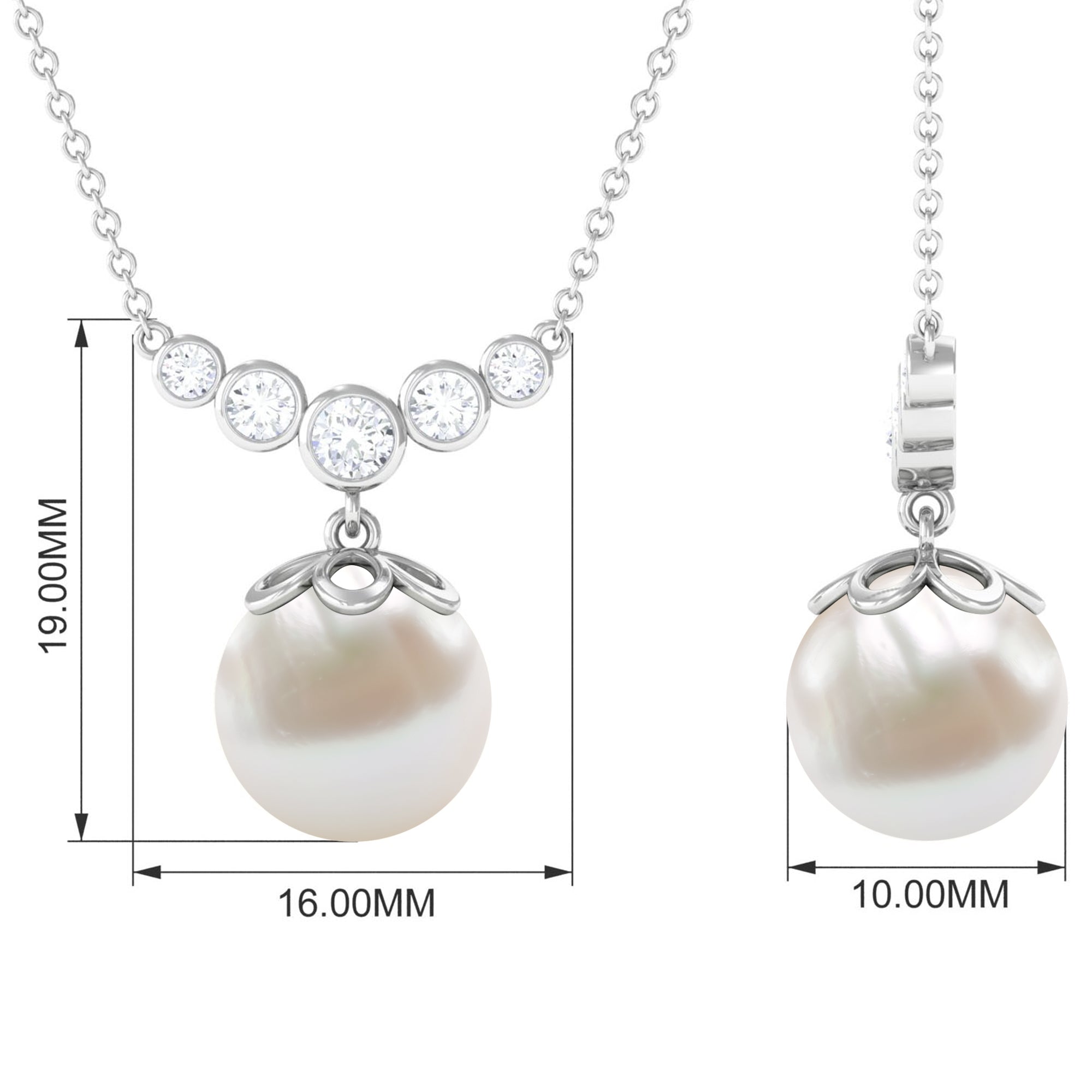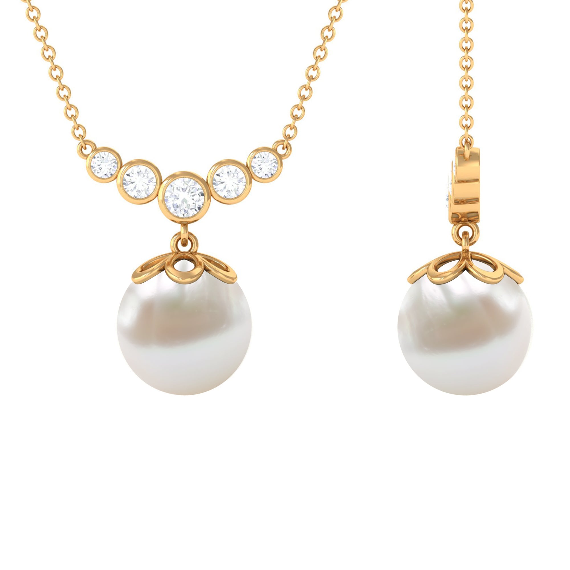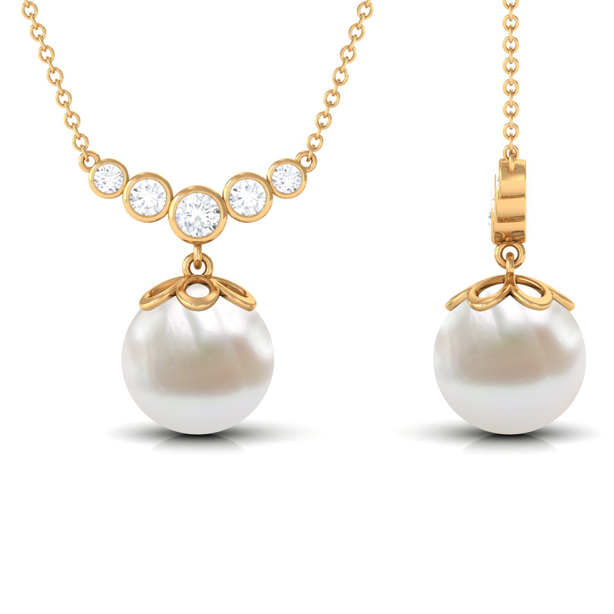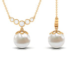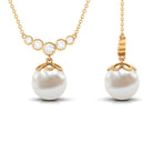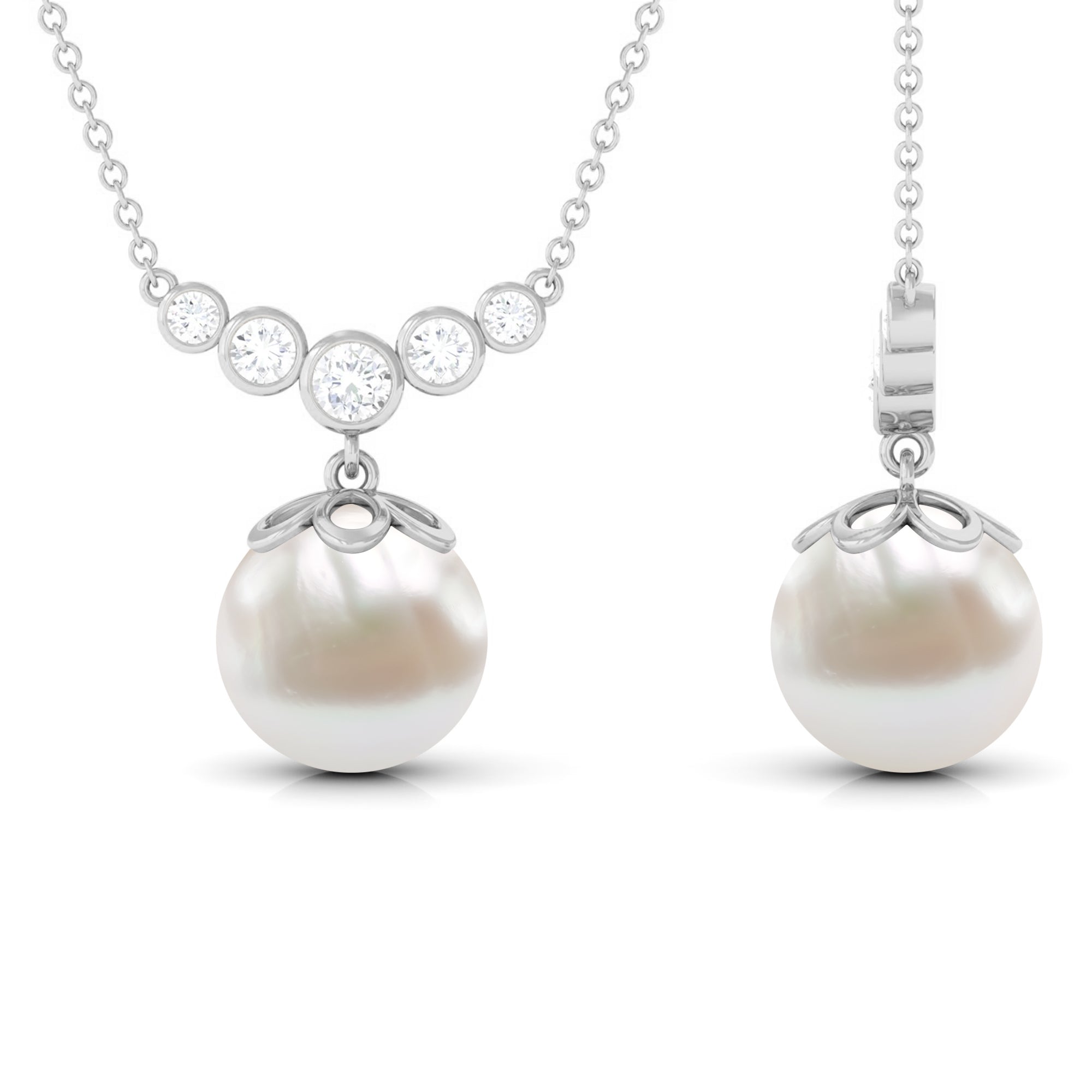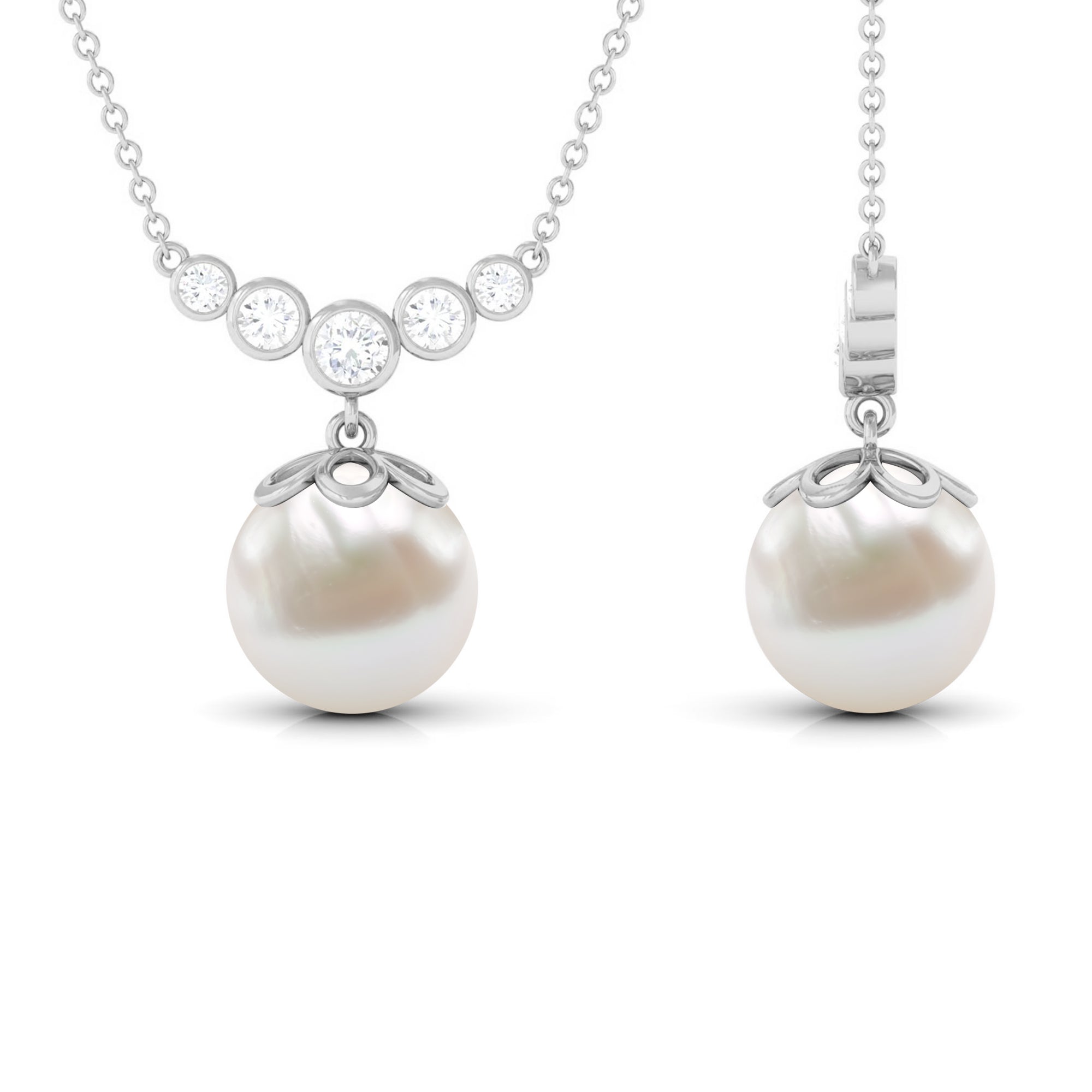 Round Freshwater Pearl Designer Necklace with Bezel Set Diamond