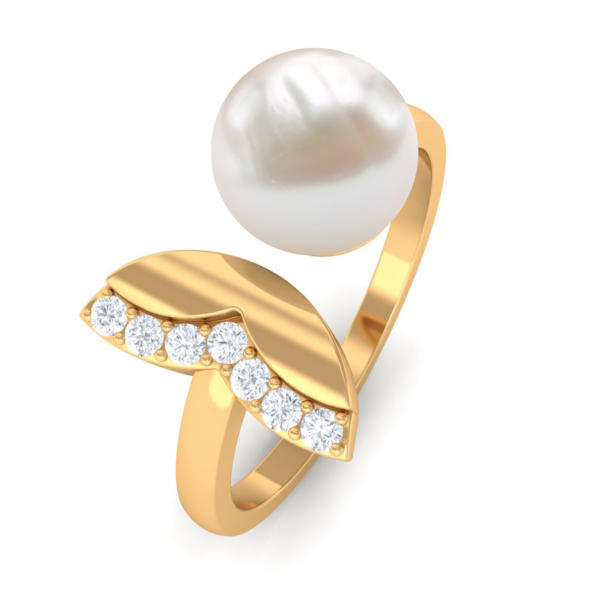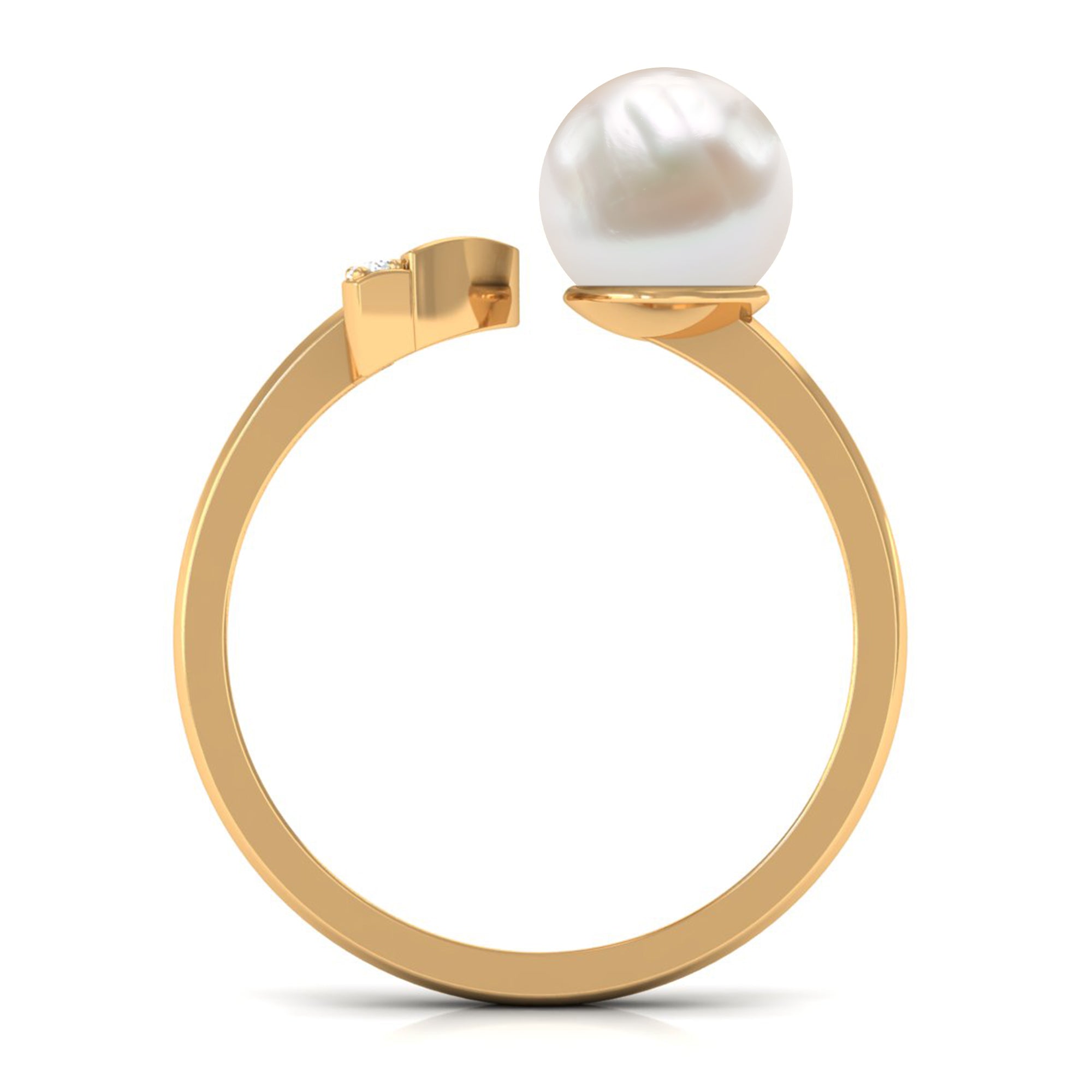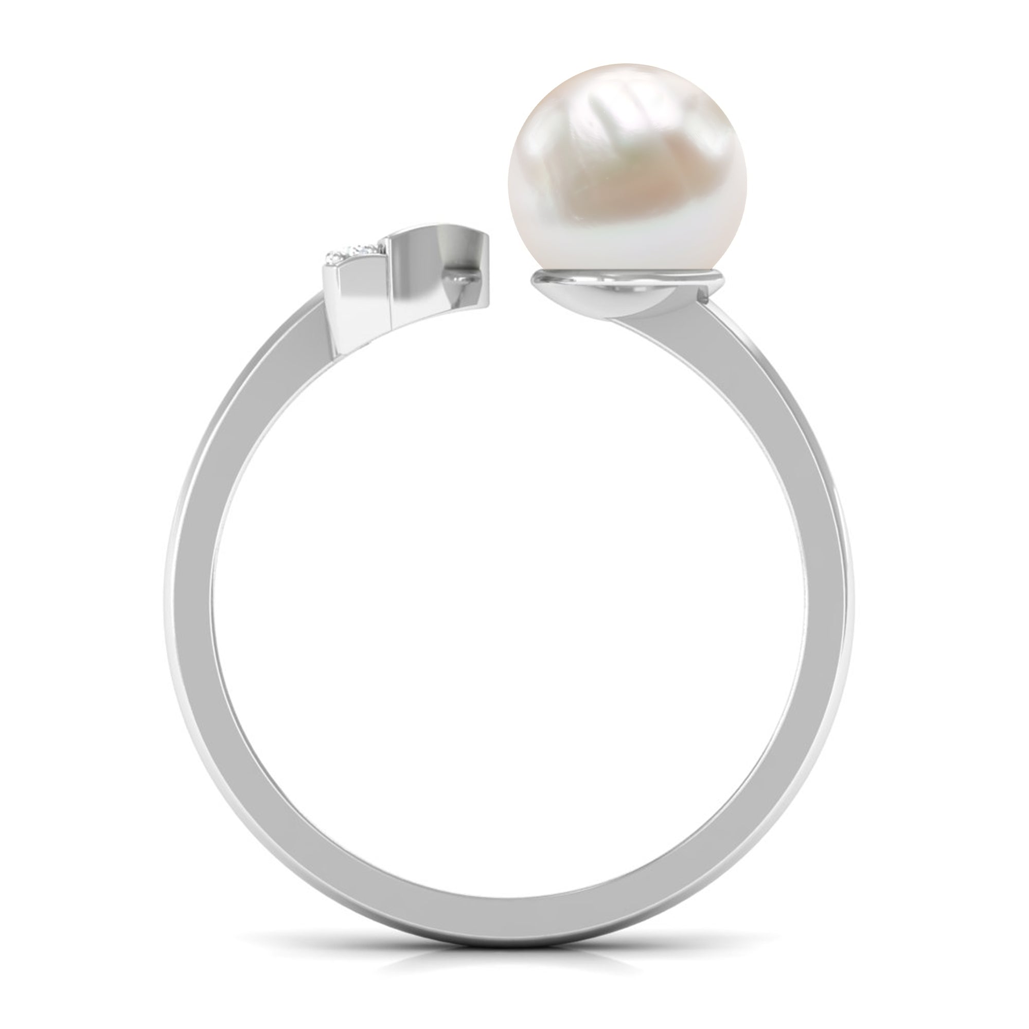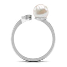 Round Freshwater Pearl Solitaire Cuff Ring with Diamond