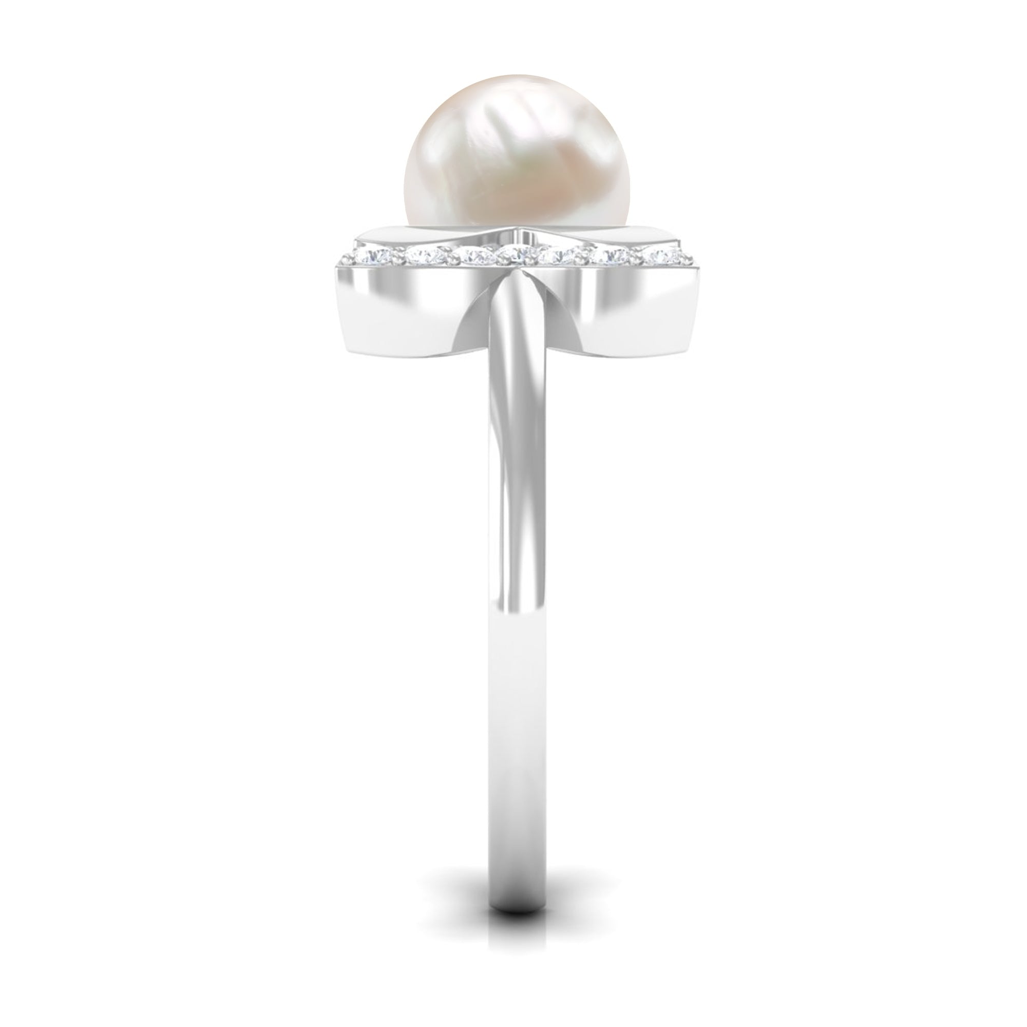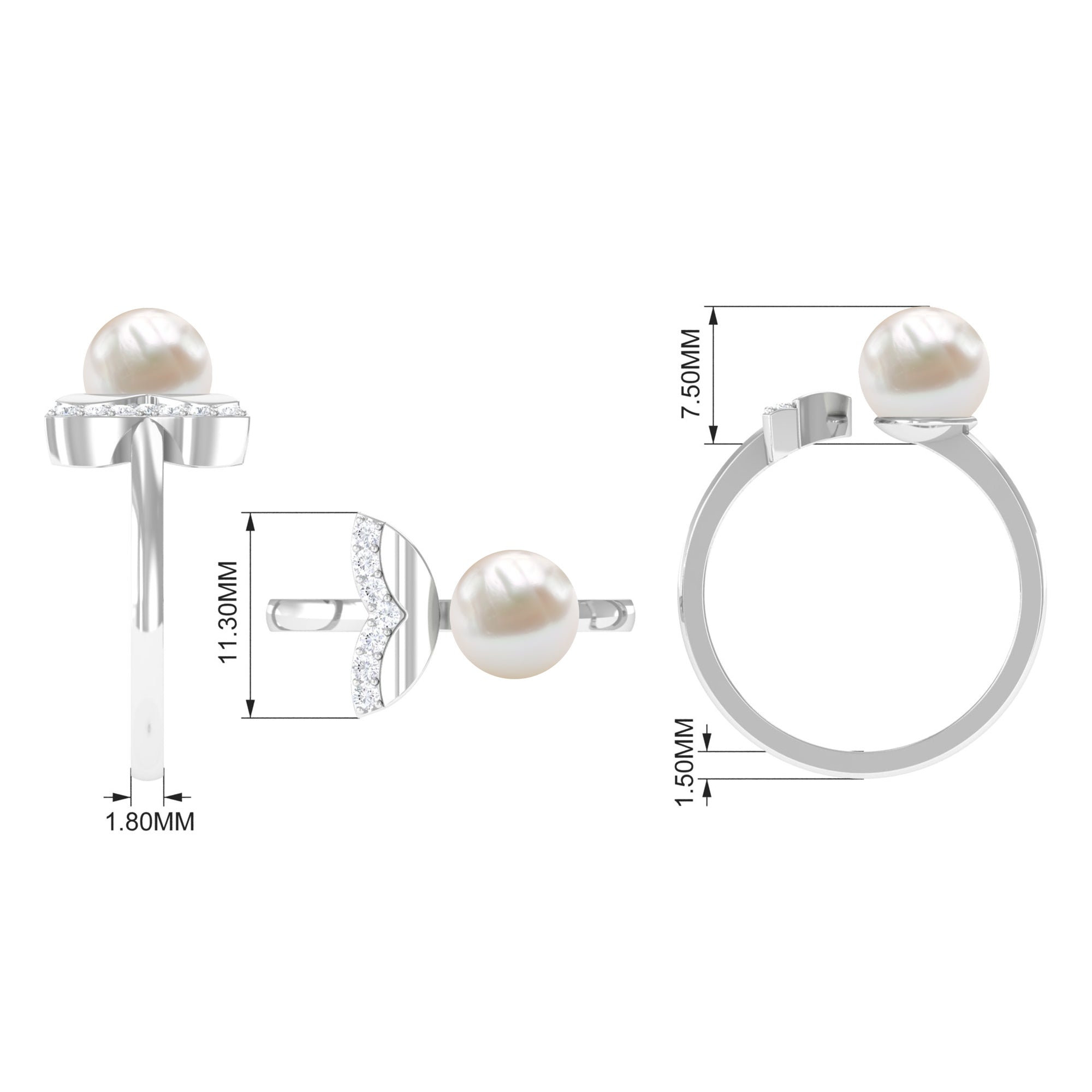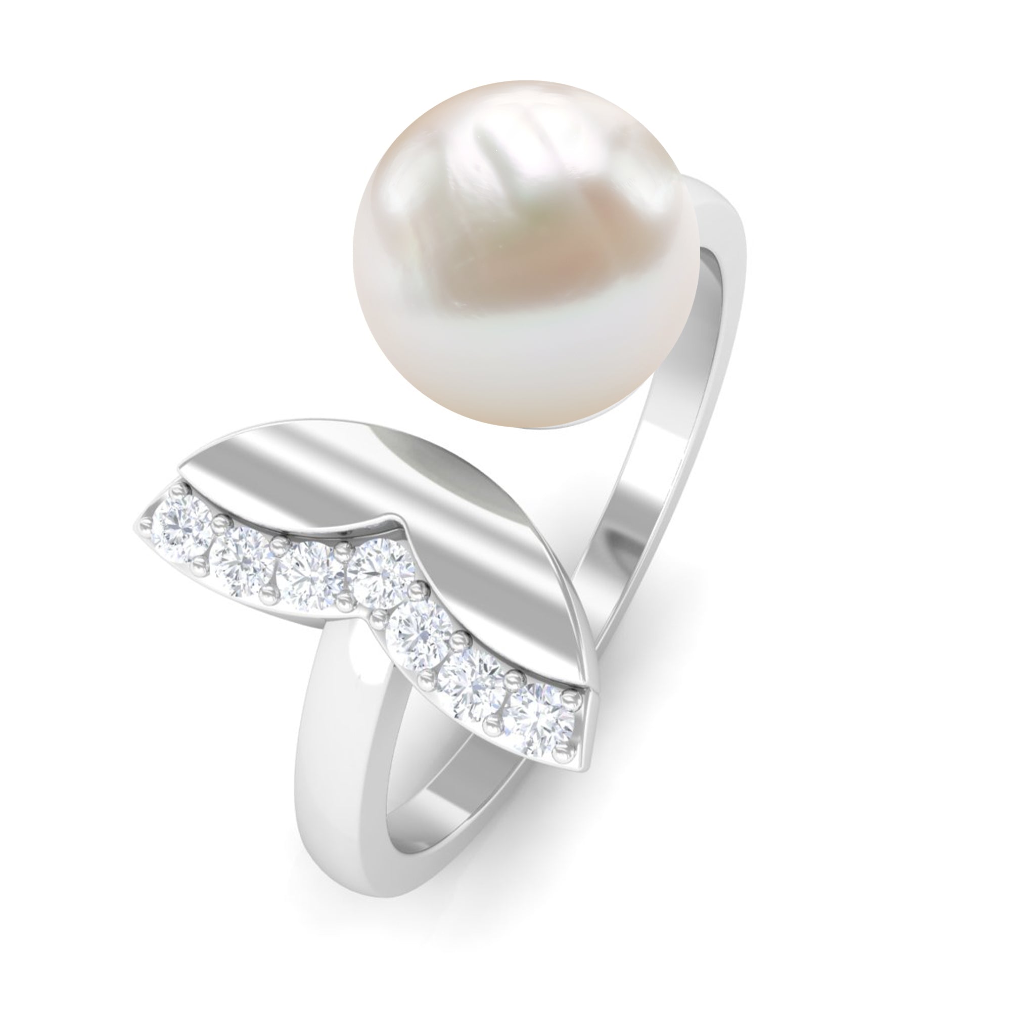 Round Freshwater Pearl Solitaire Cuff Ring with Diamond