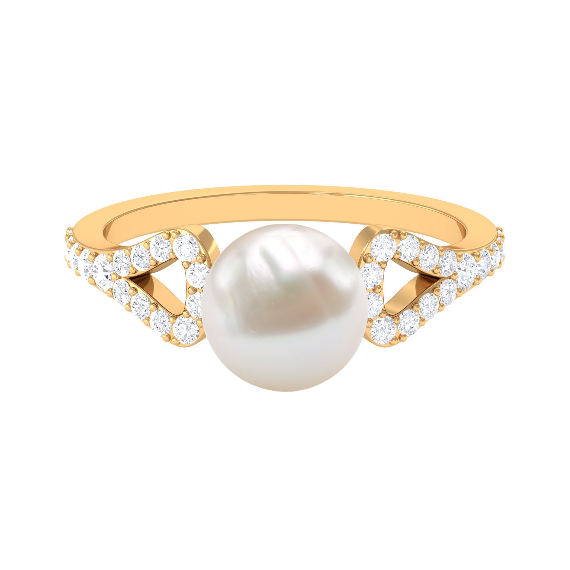 Round Freshwater Pearl Solitaire Engagement Ring with Diamond
