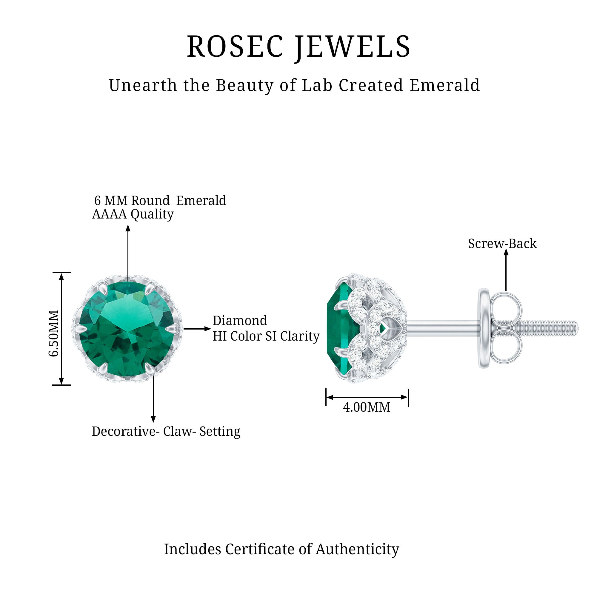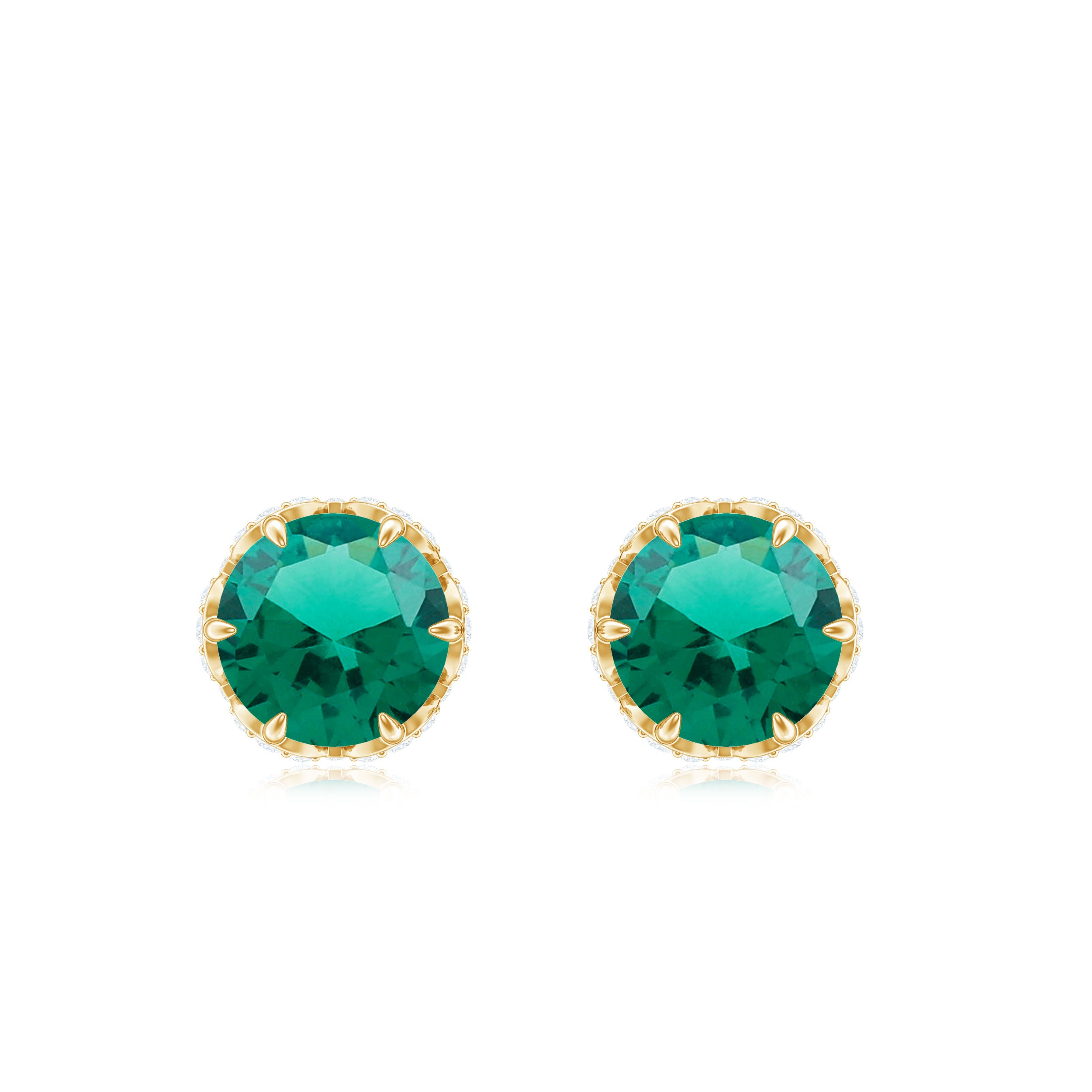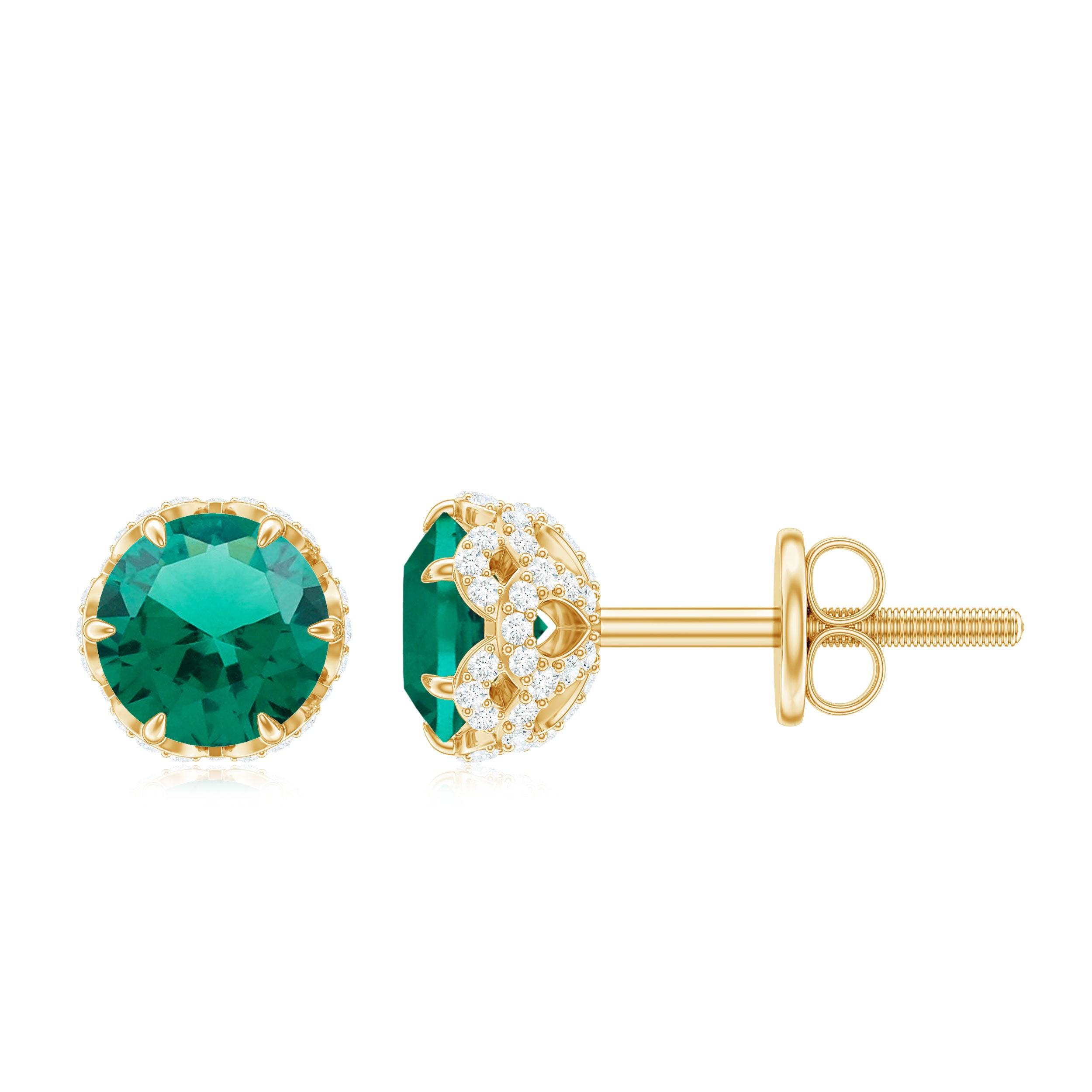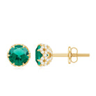 Round Lab Created Emerald Stud Earrings with Diamonds