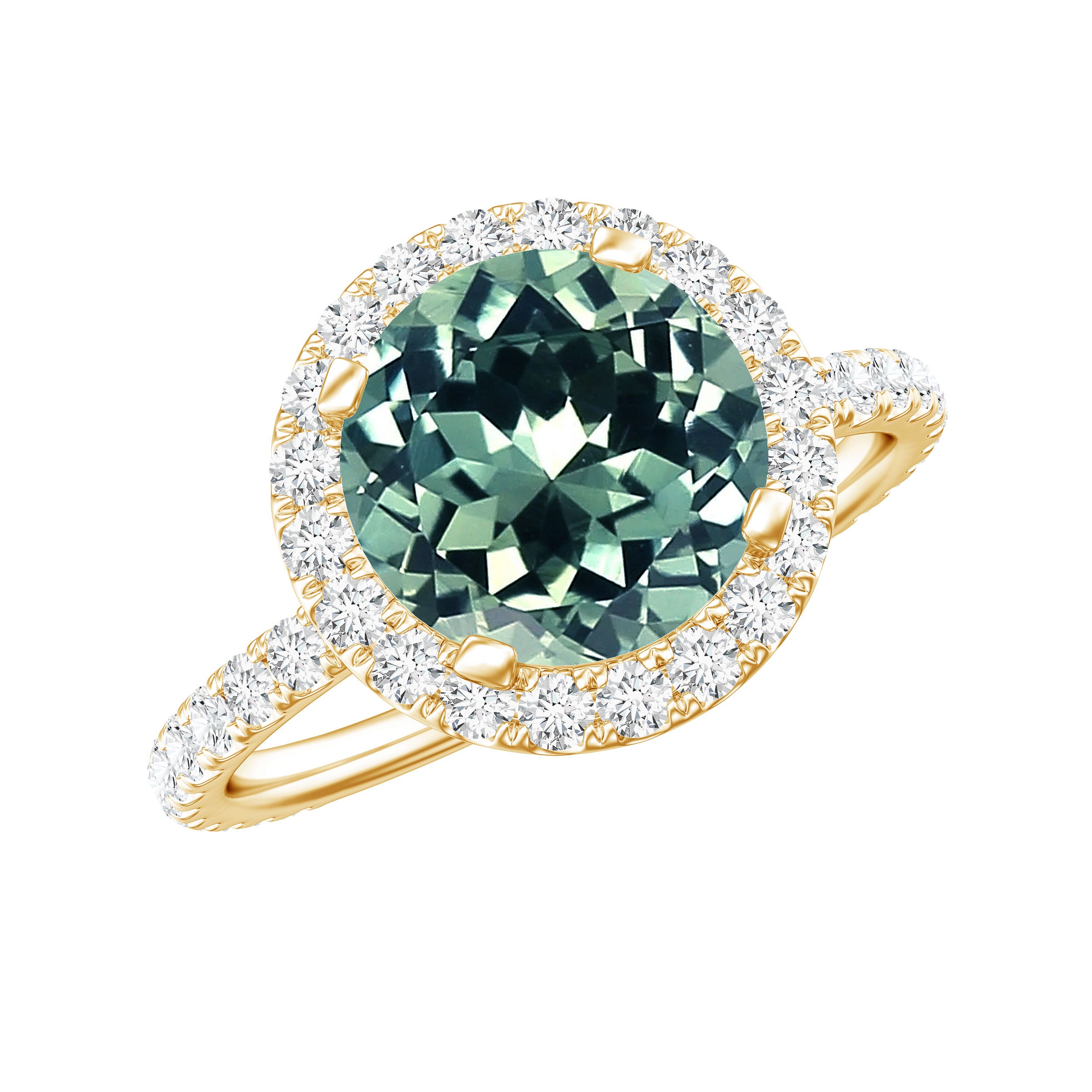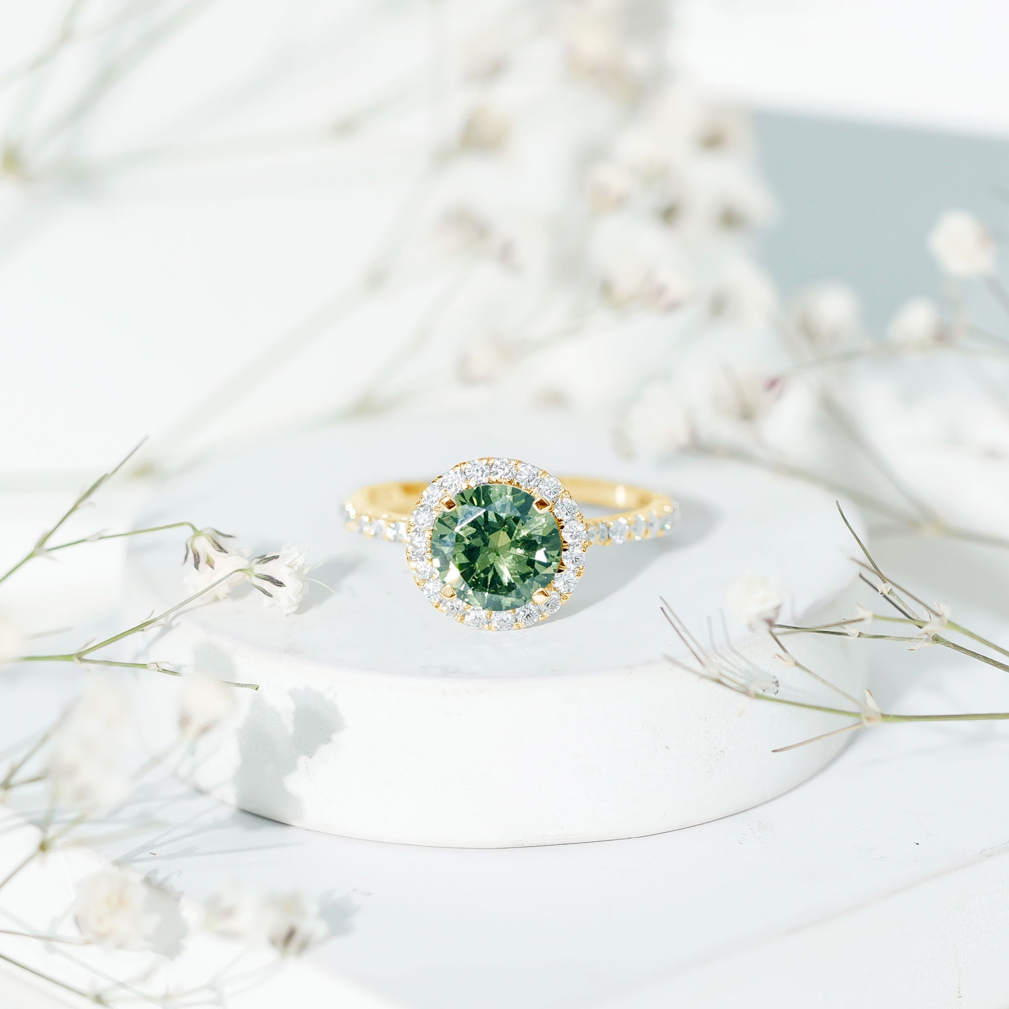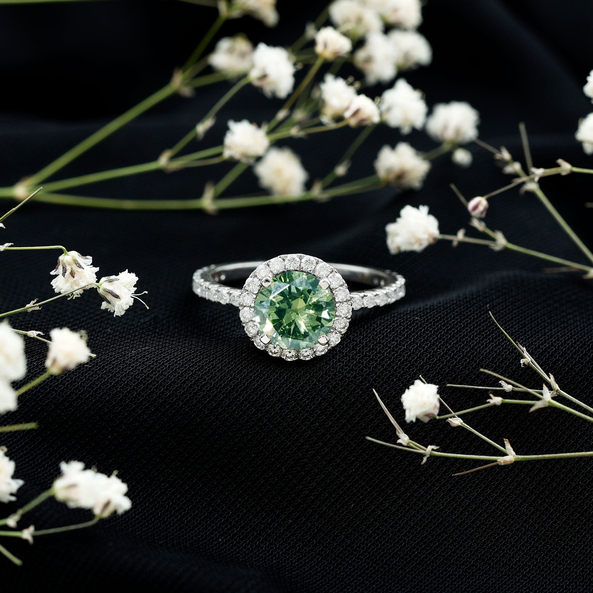 Round Lab Created Green Sapphire Halo Engagement Ring with Moissanite