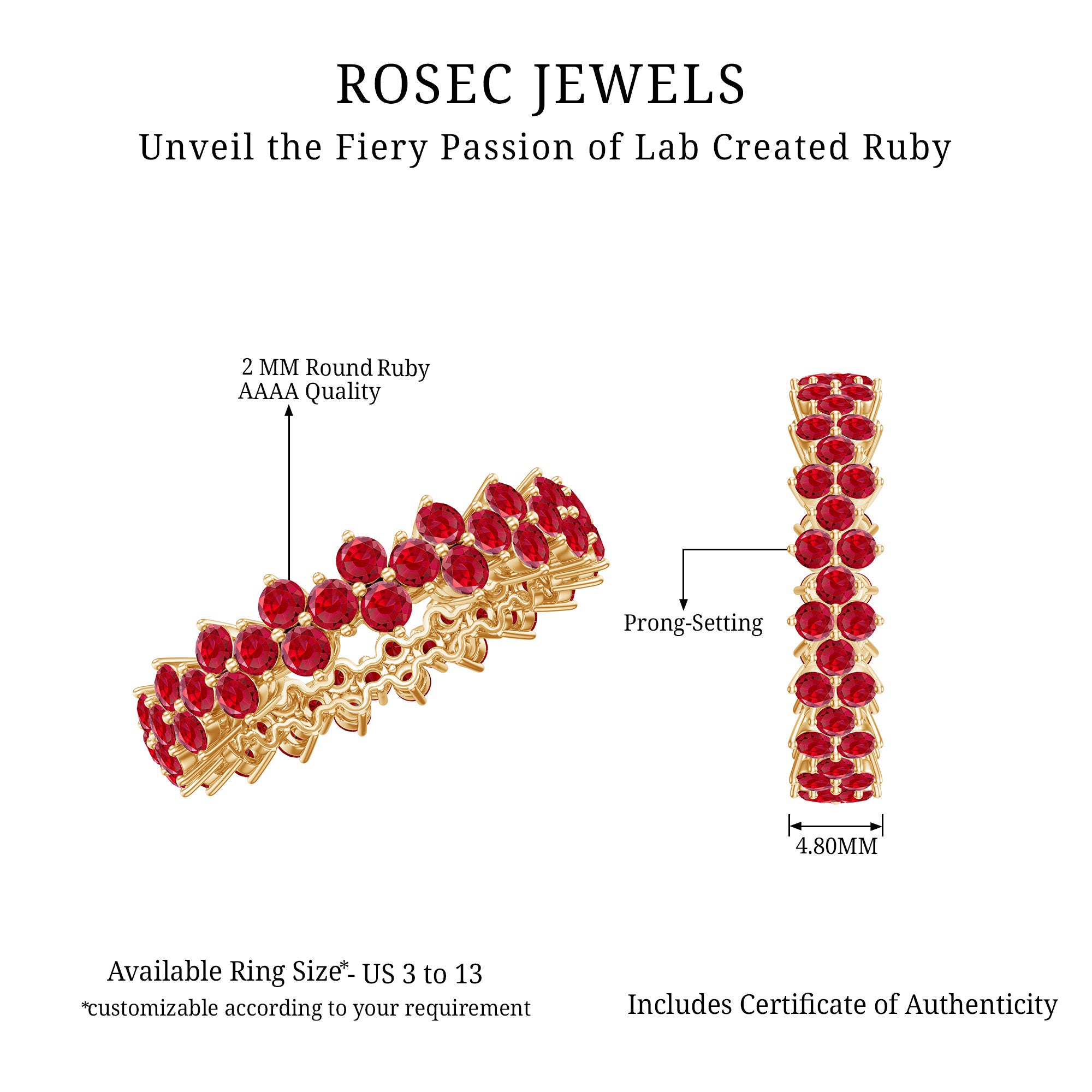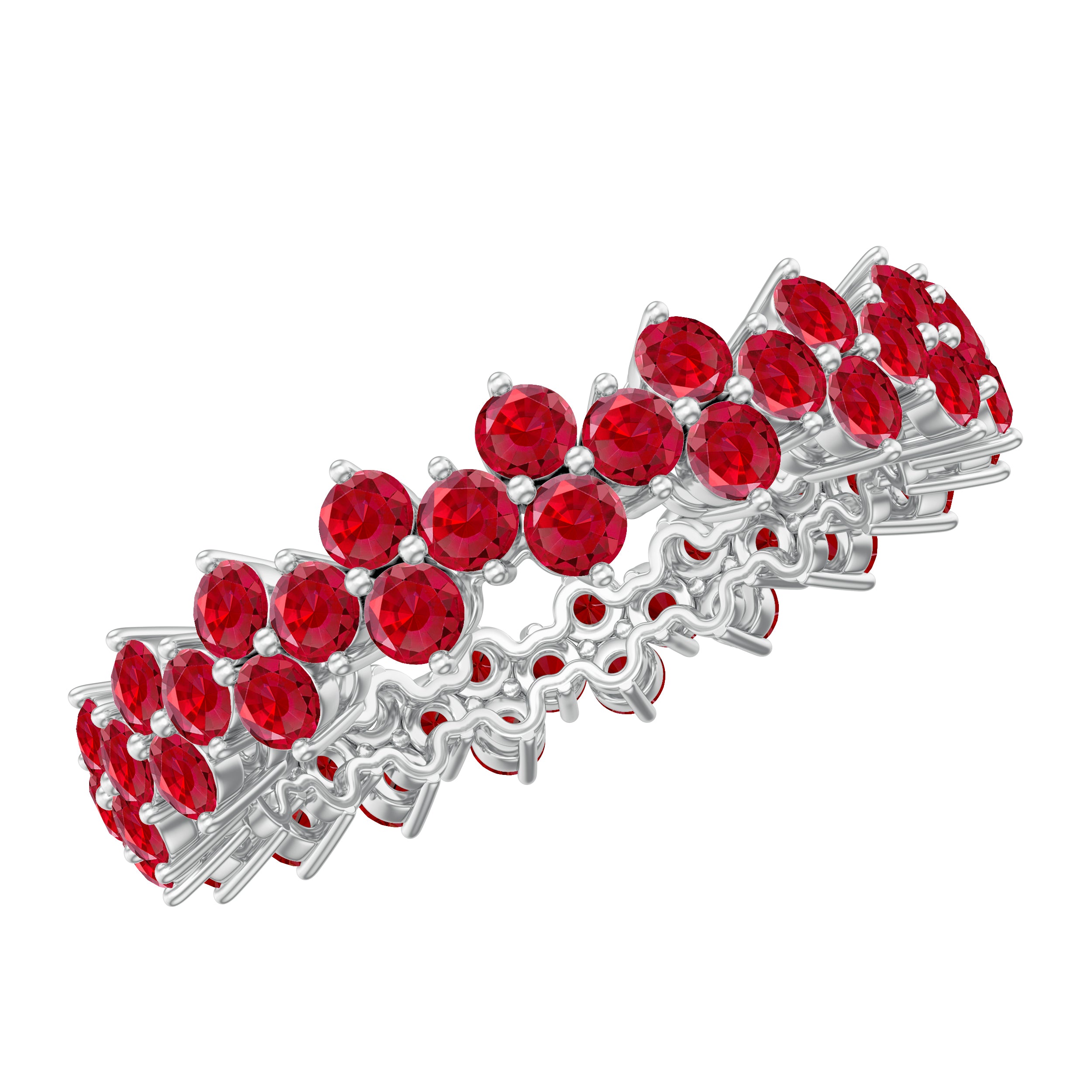 Round Lab Created Ruby Cluster Eternity Ring in Prong Setting