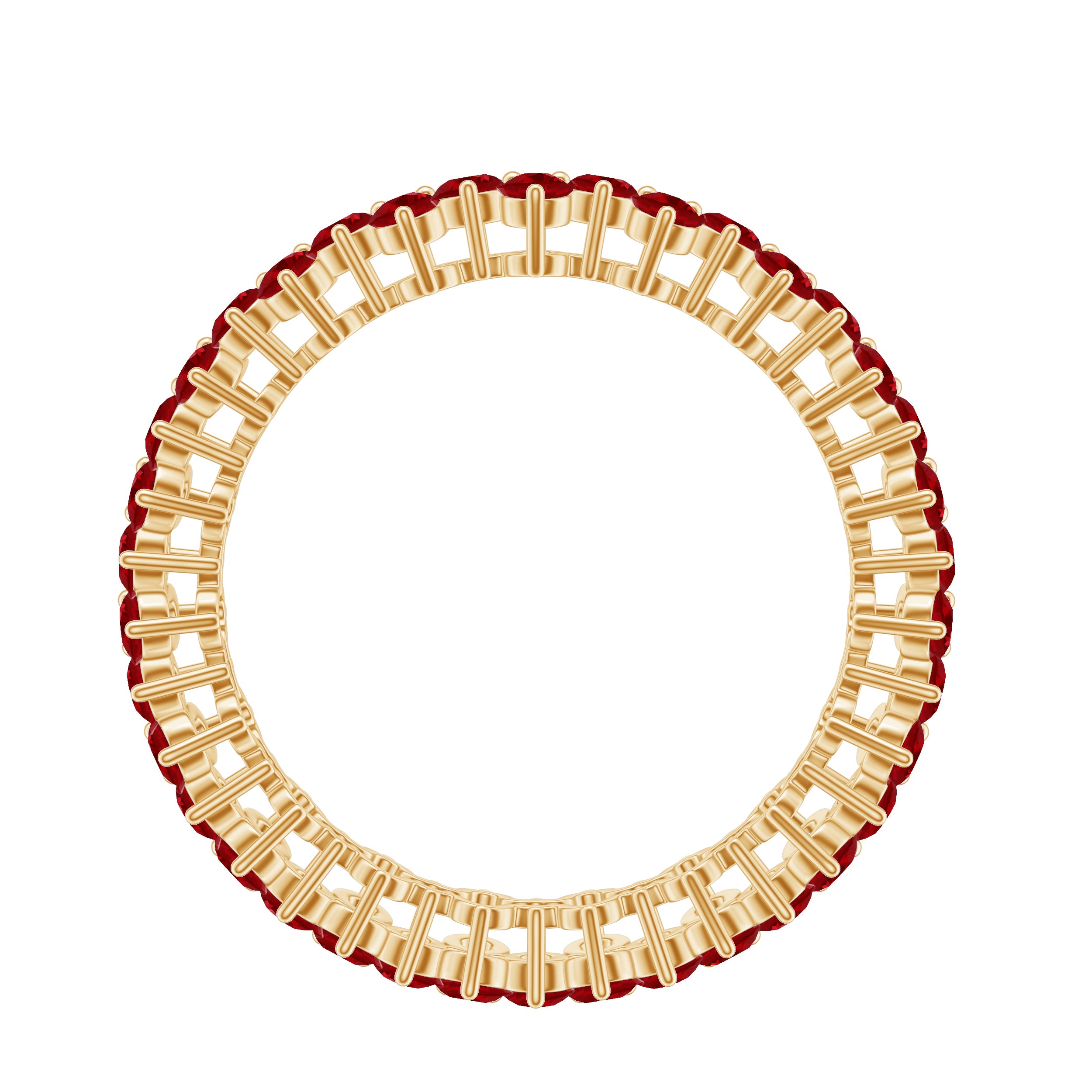 This glittering lab created ruby ring is the perfect accessory to add some sparkle to your life. The round cut created ruby in a prong setting on a full eternity band makes it versatile and perfect to wear with any outfit. Crafted from gold, this full eternity ring is a stunning and memorable gift for yourself.