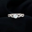 Here is a Lab Grown Diamond Infinity Ring that perfectly reflects upon the boundless spirit of all the boss ladies out there who refuse to give up, come what may! Boasting a one of a kind sparkle, it is effortlessly mounted by the Single Stone of 5 MM Round Shape Lab Grown Diamond that is fastened to the metal by Peg Head Setting. Complementing it at its finest is the meticulously crafted Infinity design on either sides of the center stone, encrusted with sparkling series of Lab Grown Diamond.