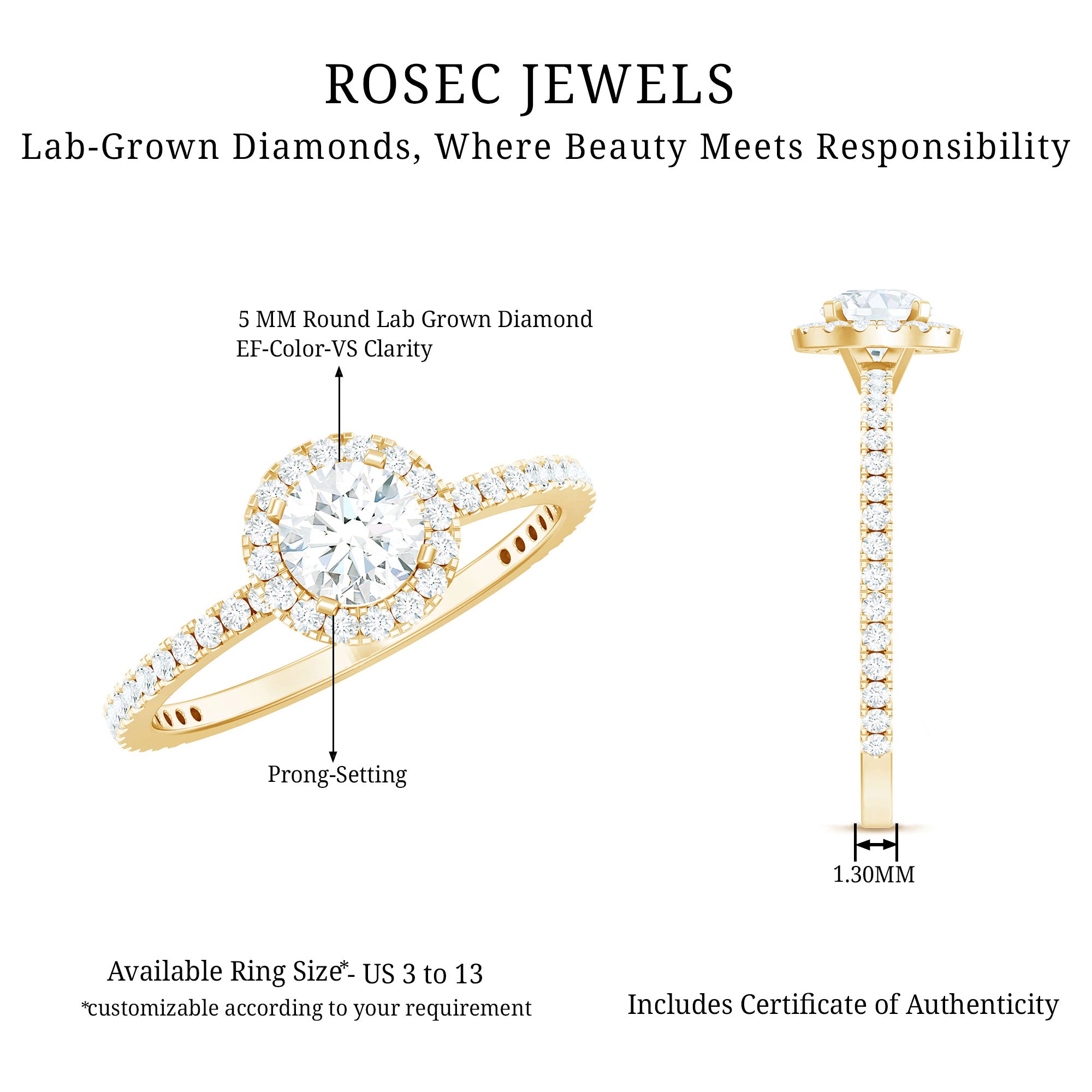 Capturing the essence of a heartfelt promise, this Promise Engagement Ring is a radiant symbol of commitment. This exquisite ring features a 5 MM Round Shape Lab Grown Diamond as a centerpiece, encircled by a shimmering Halo. Whether it marks the beginning of a lifelong journey or a significant milestone, this Simulated Diamond Engagement Ring is a cherished token of the love and dedication that bind two hearts together.
