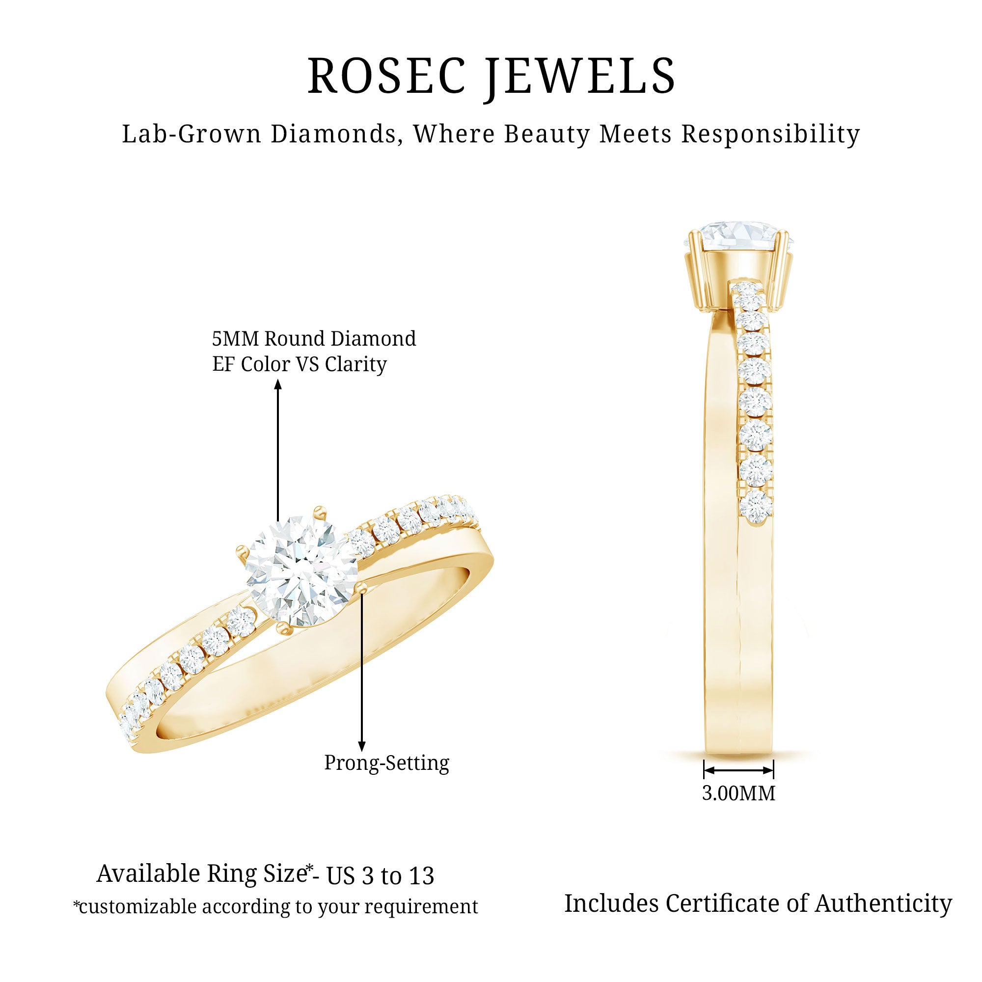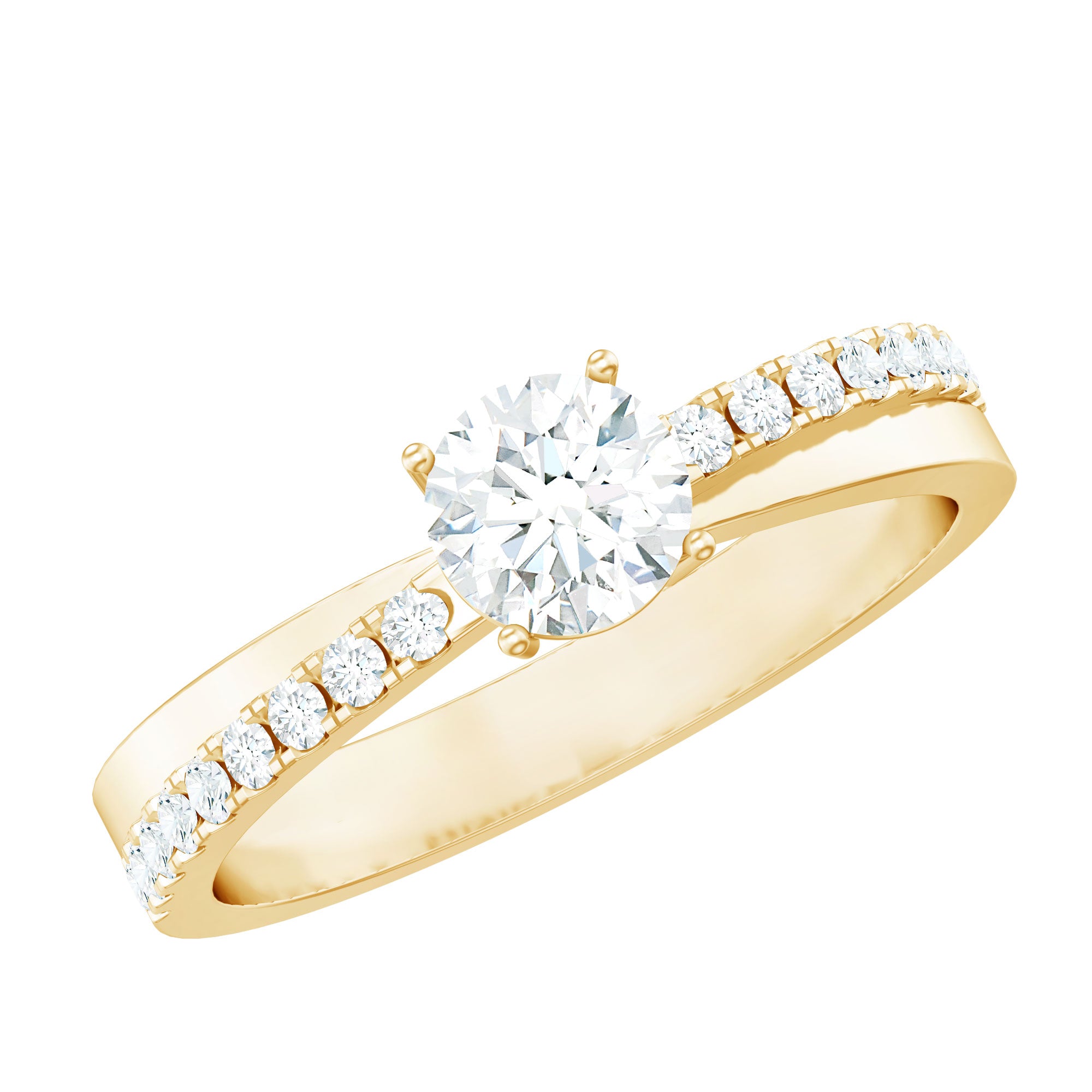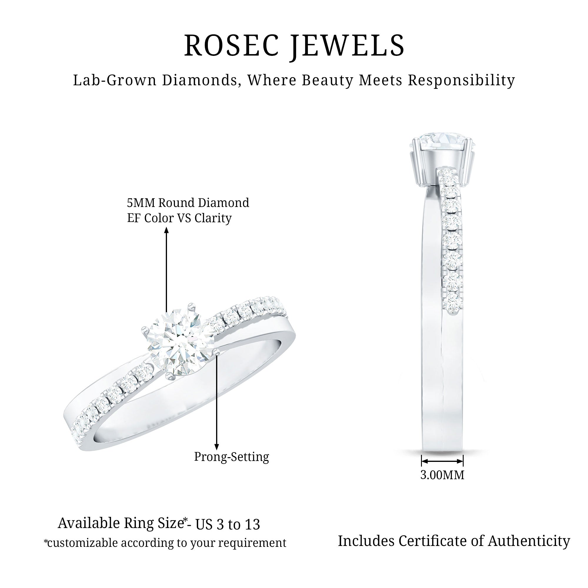 A graceful embodiment of commitment, this Promise Ring features a 5 MM Round Shape Lab Grown Diamond gemstone that takes center stage, beautifully set in Prong Setting over the Pinched Shank. With its elegant simplicity and timeless appeal, this Simulated Diamond Ring serves as a token of love and devotion.
