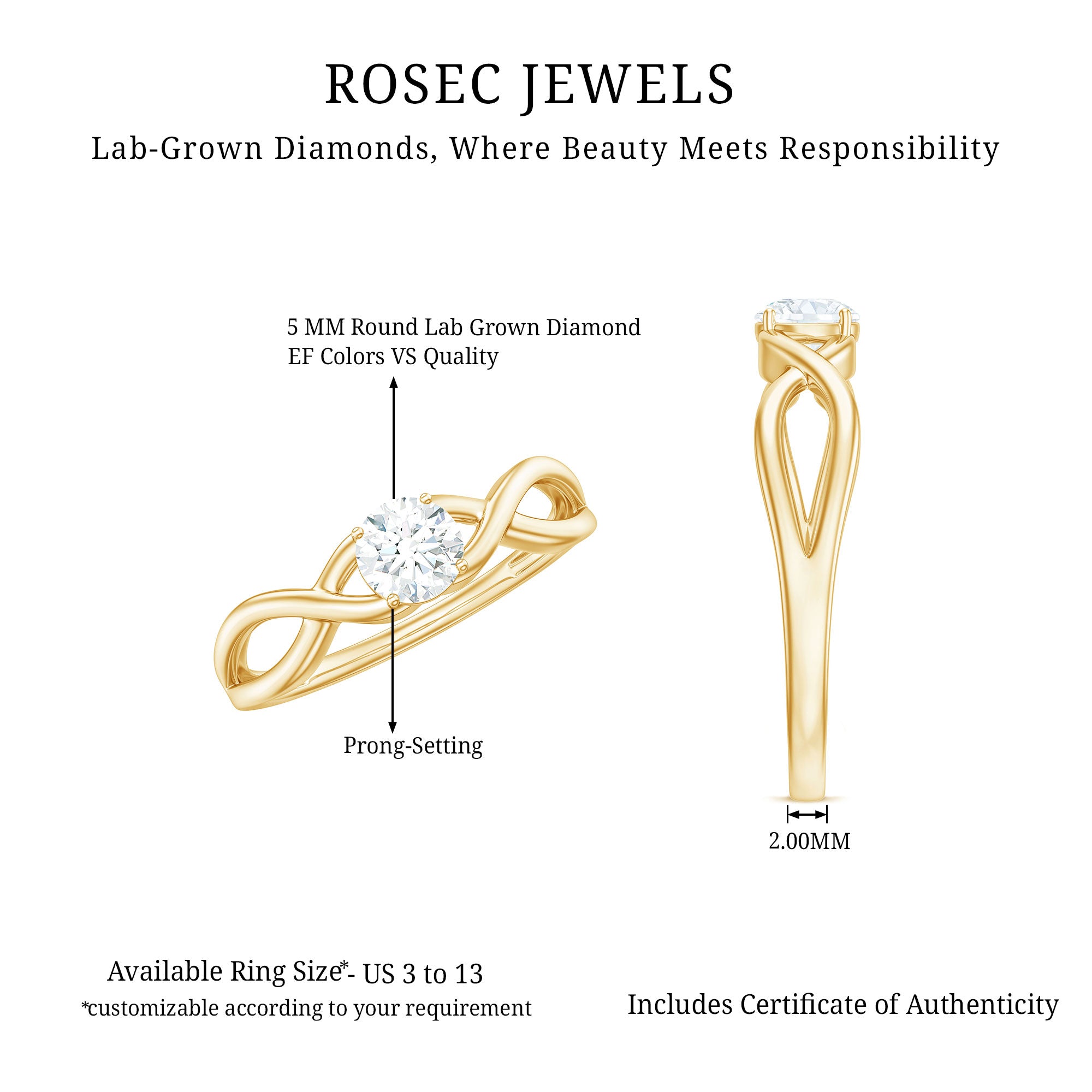 Round Lab Grown Diamond Solitaire Promise Ring in Crossover Shank