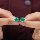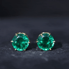 Round Lab Grown Emerald Solitaire Stud Earrings