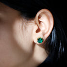 The Solitaire Stud Earrings are embellished with Round Shape Lab Created Emerald secured by 6 Claw Setting, crafted with Solid Metal. The Lab Grown Emerald Earrings are secured comfortably with screw backs. Add an eye-catching interest to any look with these Screw Back Earrings whenever you pair them with your everyday outfit or occasional wear.