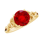 Round Lab Grown Ruby Solitaire Celtic Knot Ring with Diamond