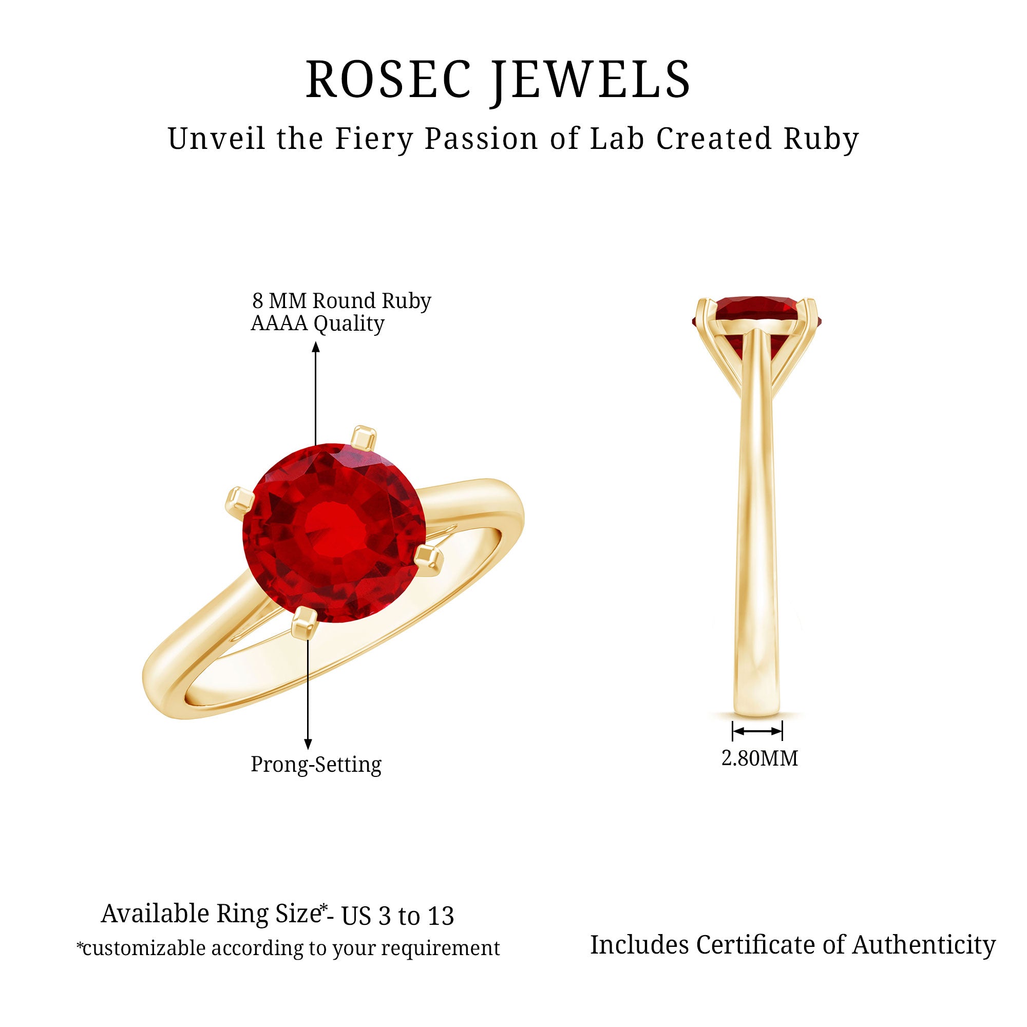 Discover the beauty of the extraordinary with this stunning Solitaire Ring. Adorned with a Round Lab Grown Ruby Gemstone, it graces the Cathedral-style shank with elegance. This Created Ruby ring, ideal for womens work wear.