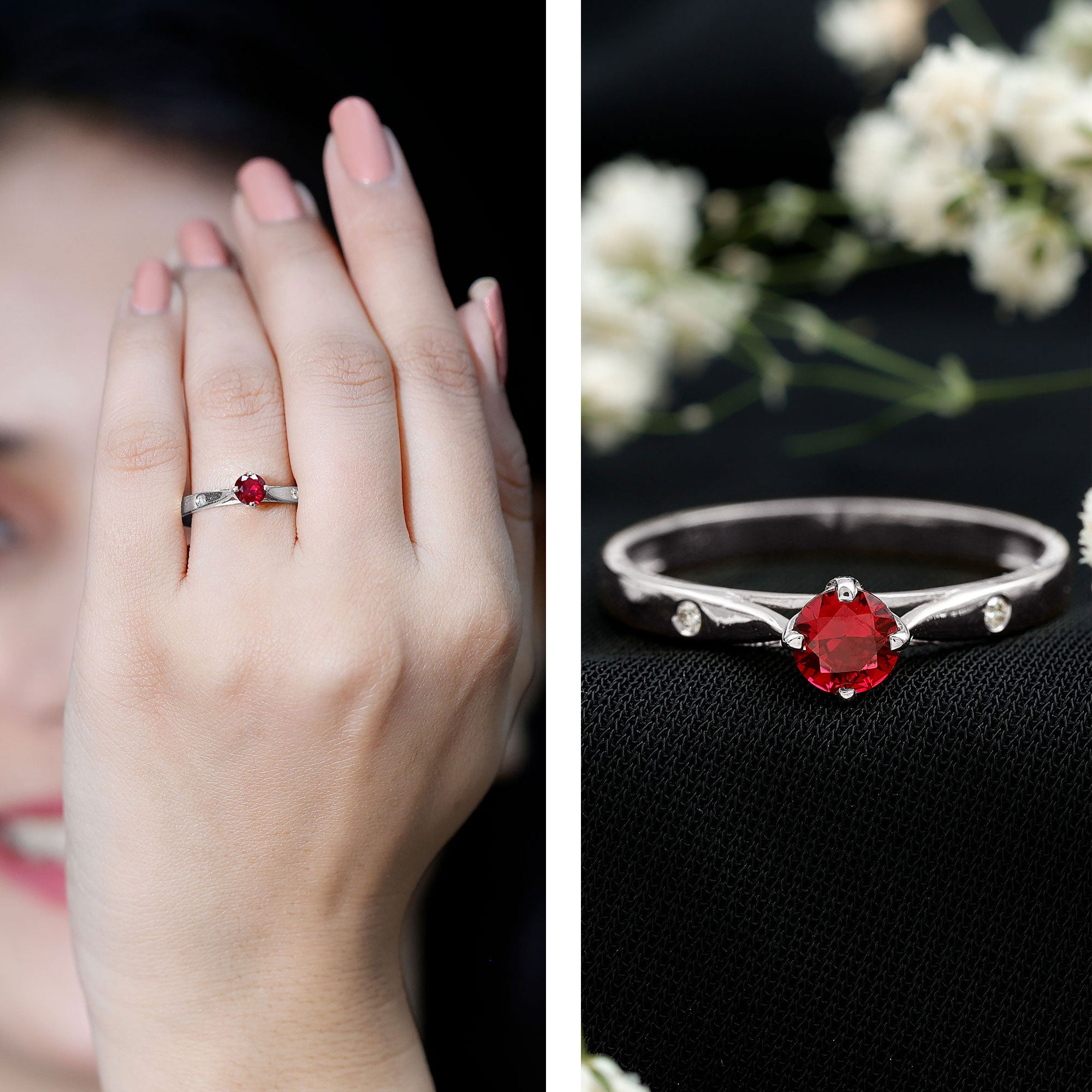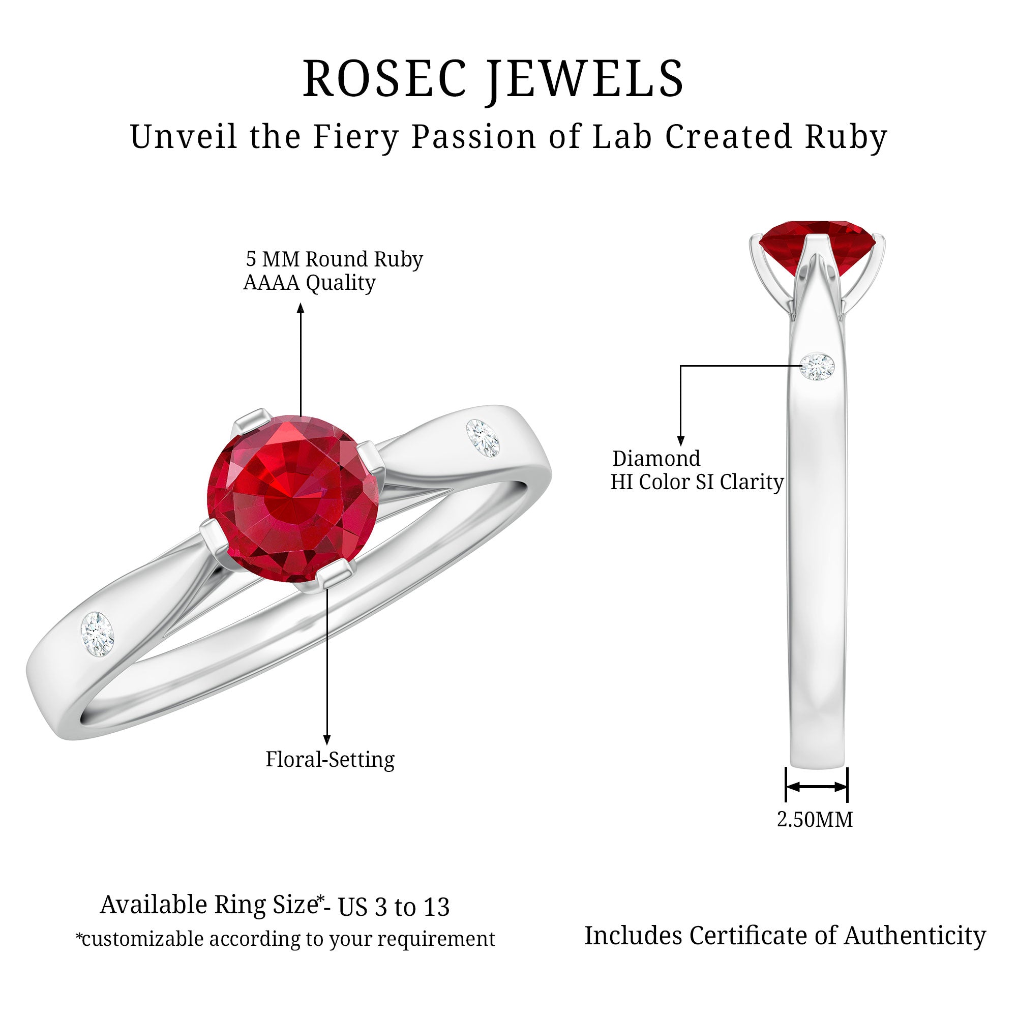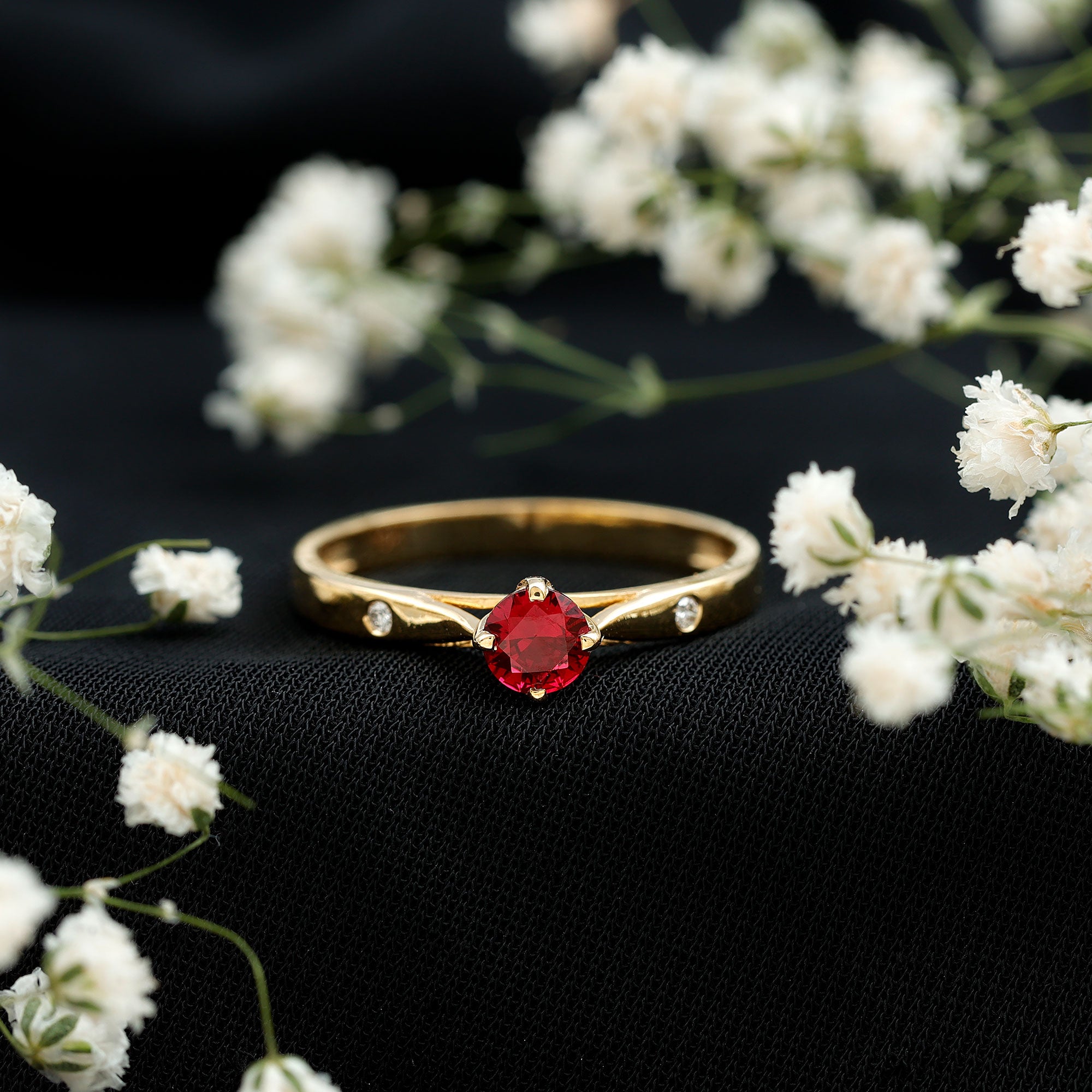 Round Lab Grown Ruby Solitaire Ring with Diamond