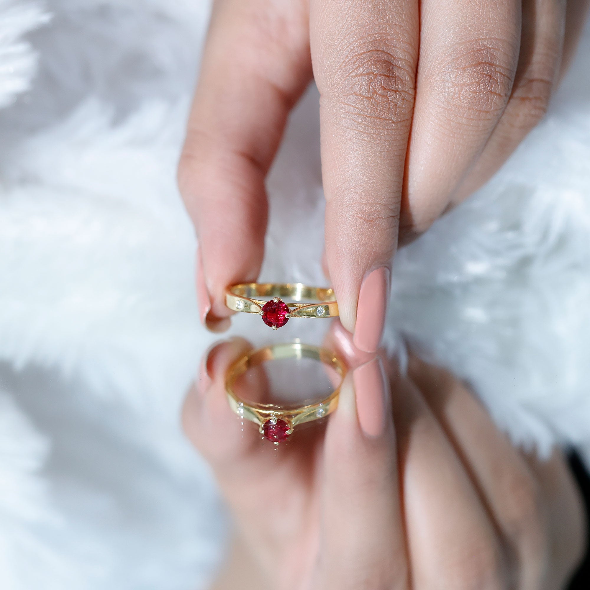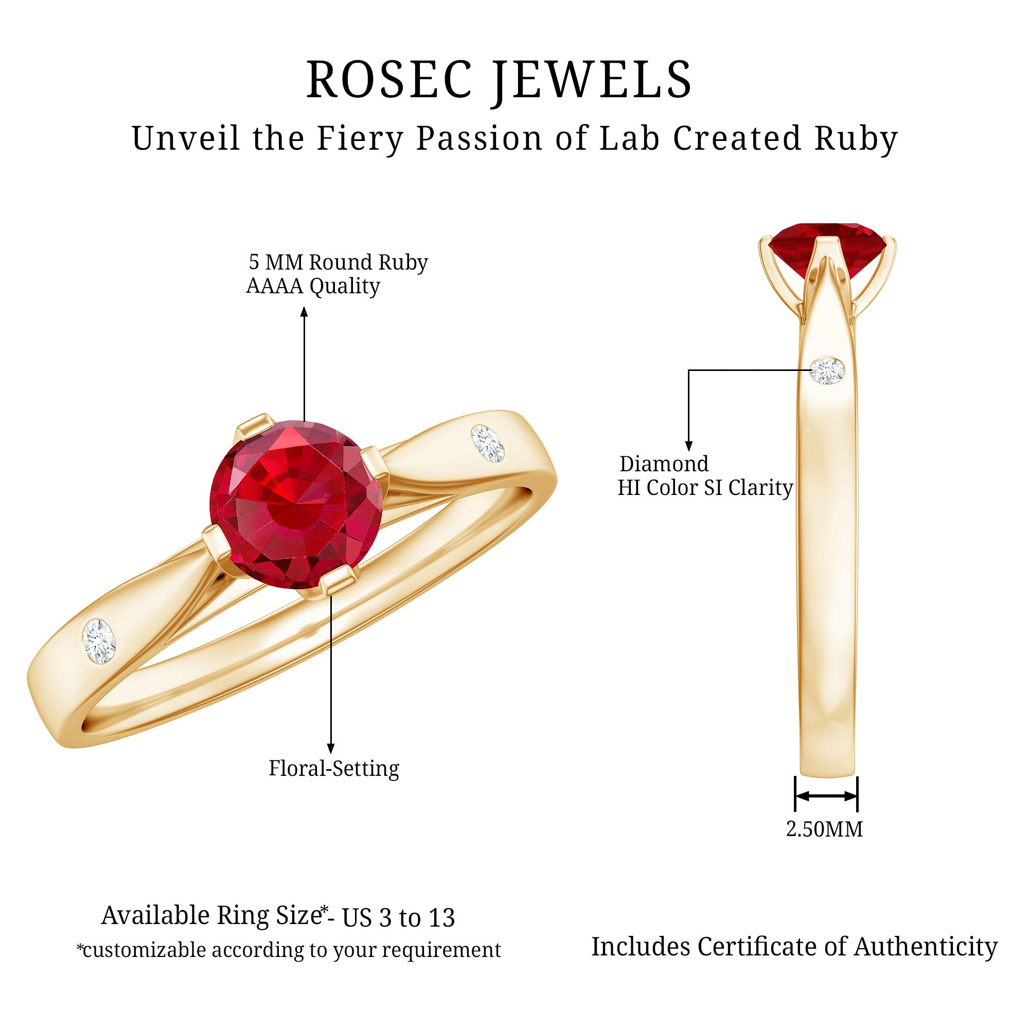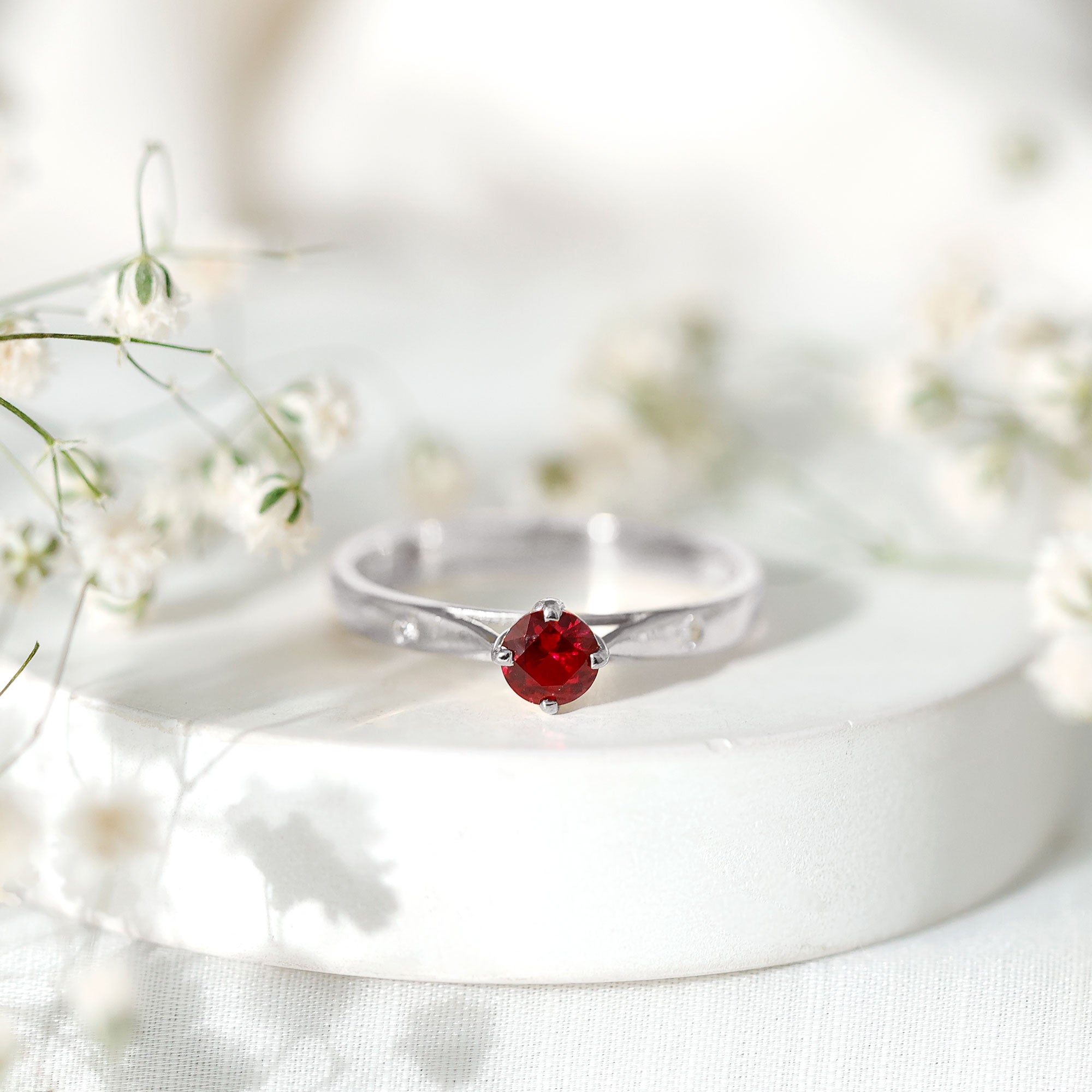 Round Lab Grown Ruby Solitaire Ring with Diamond