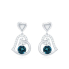 Round London Blue Topaz and Diamond Heart Drop Earring