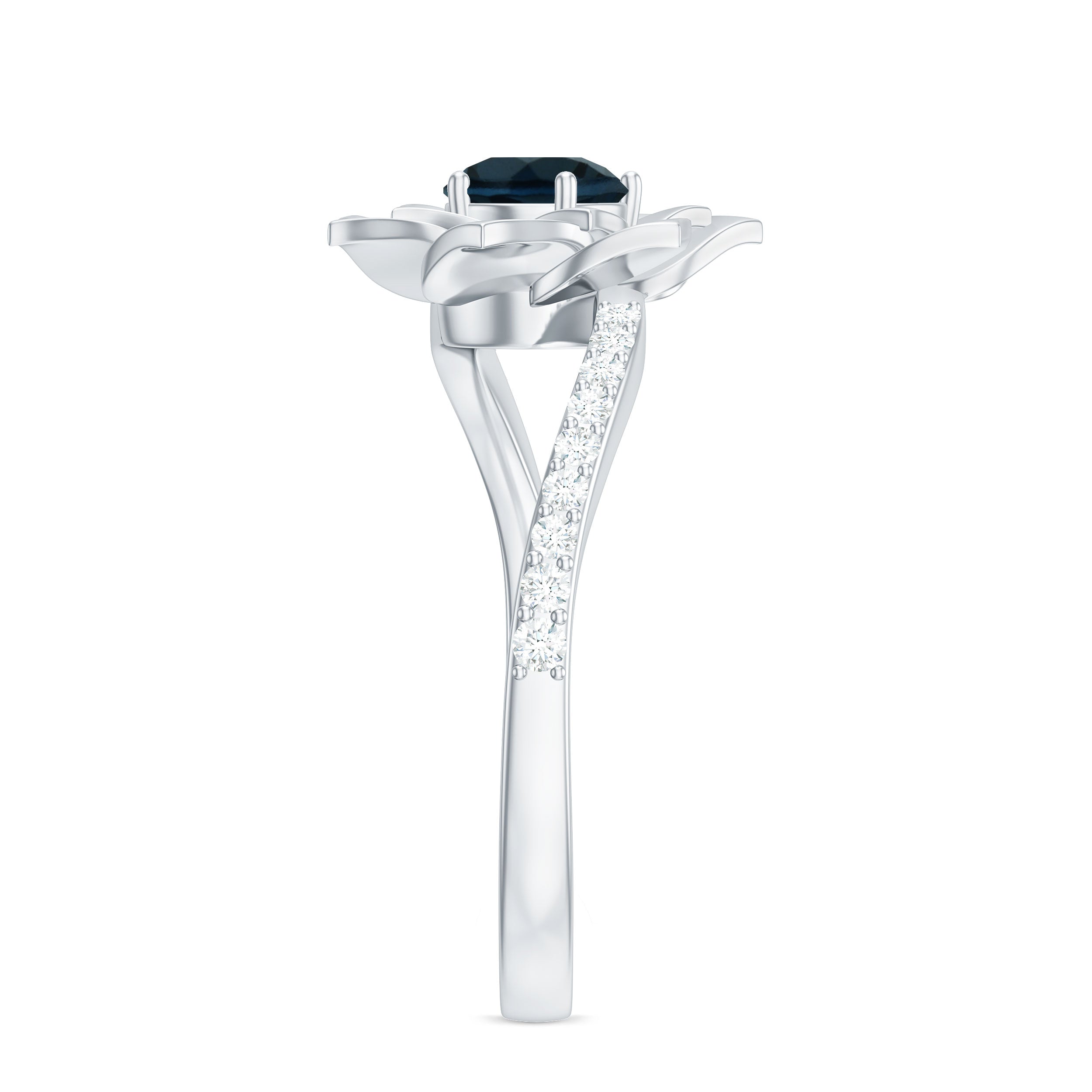 Flower Inspired London Blue Topaz Rose Engagement Ring with Diamond