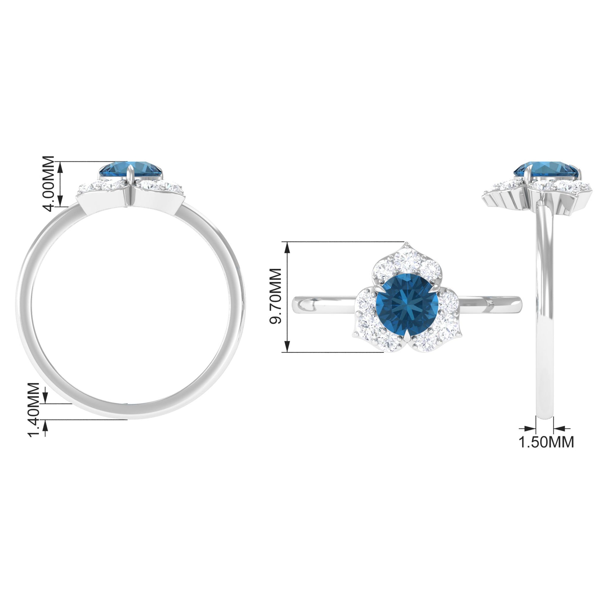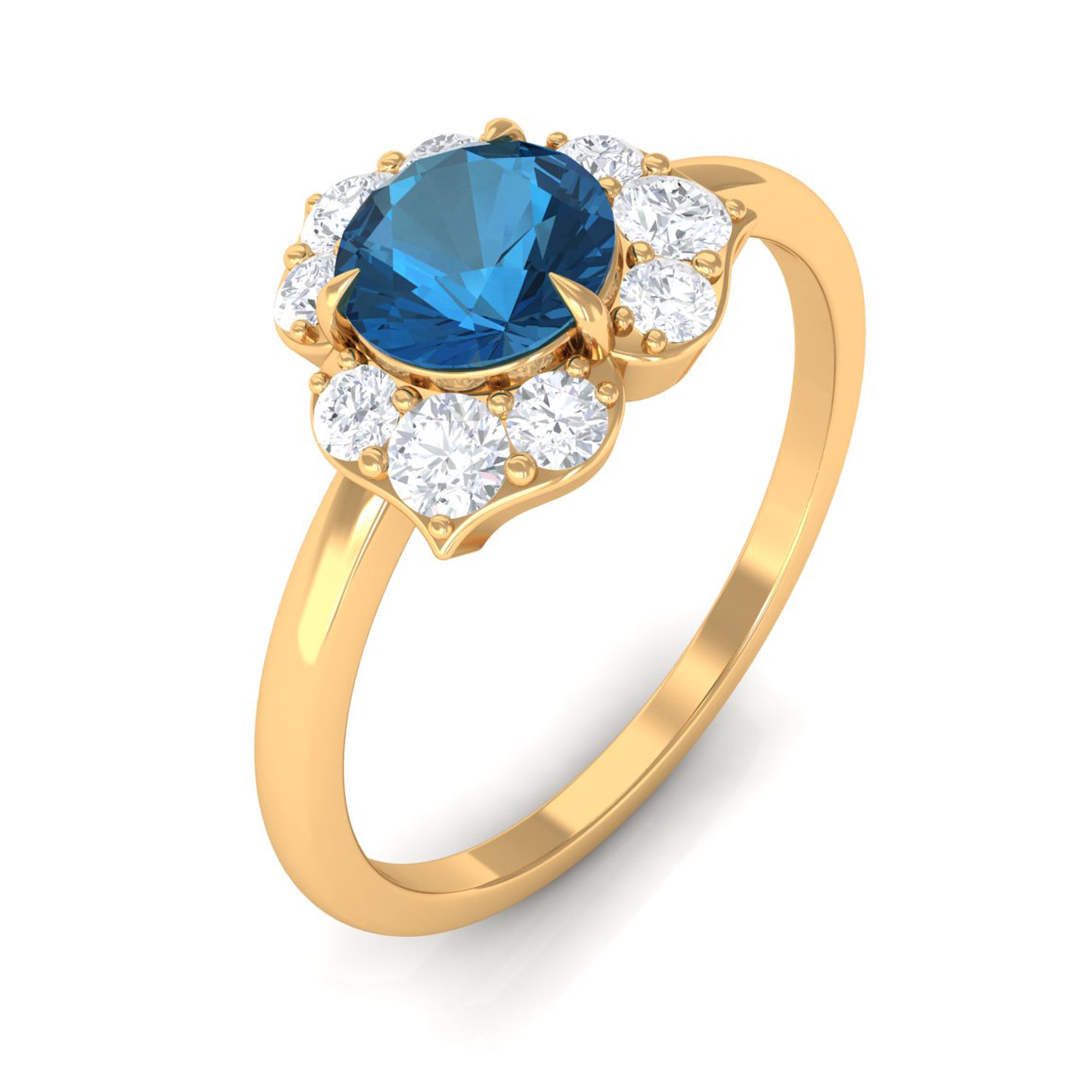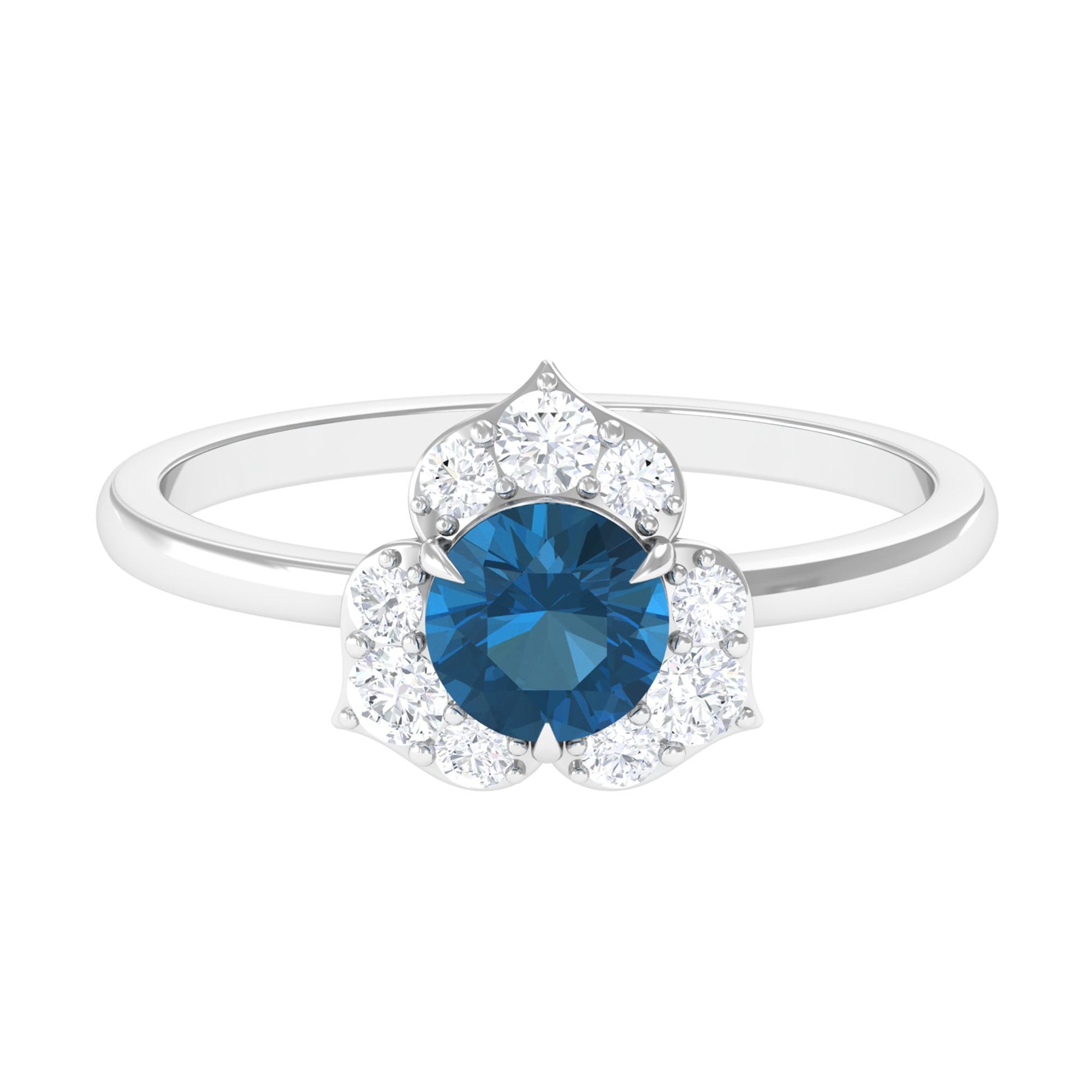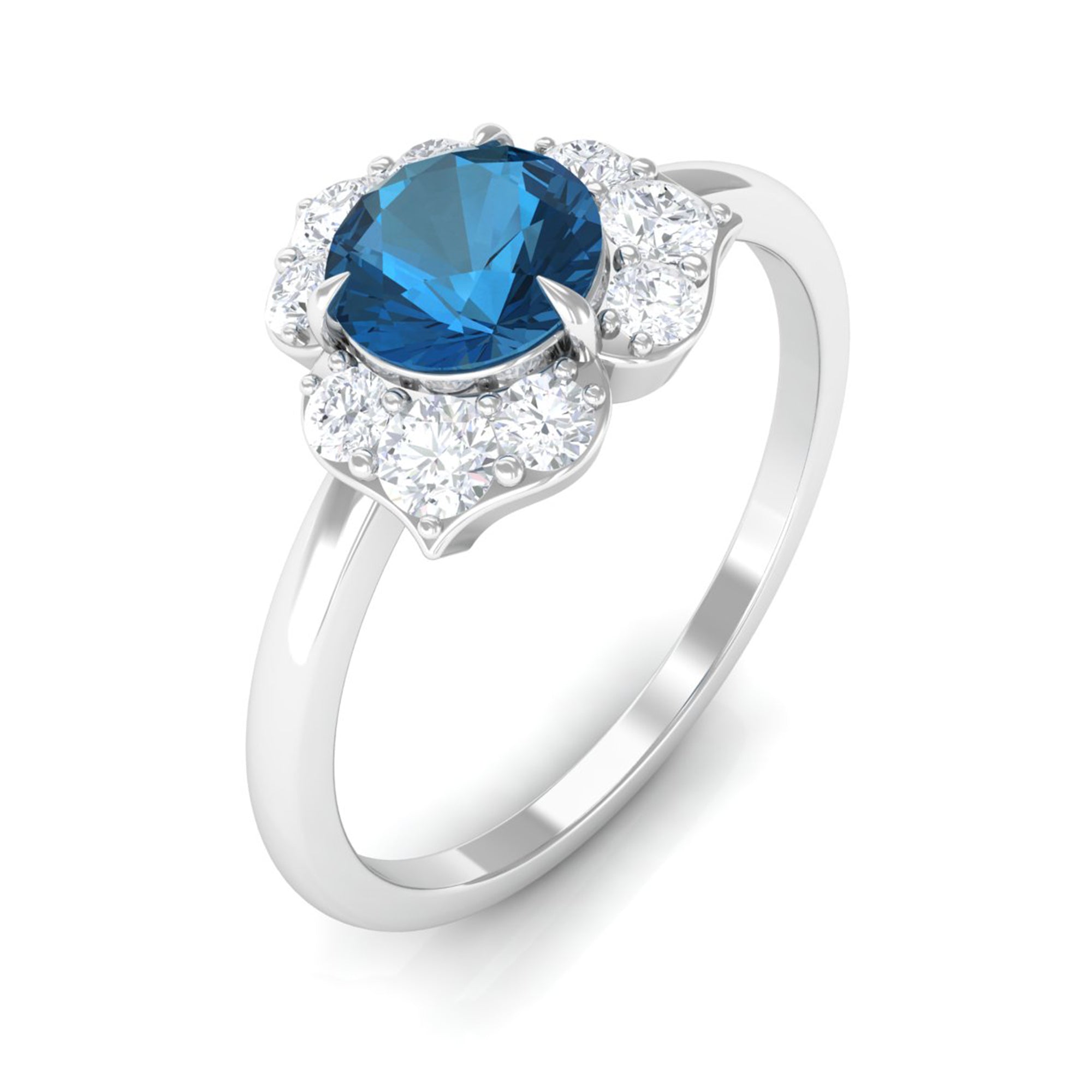 Round London Blue Topaz Floral Engagement Ring with Diamond