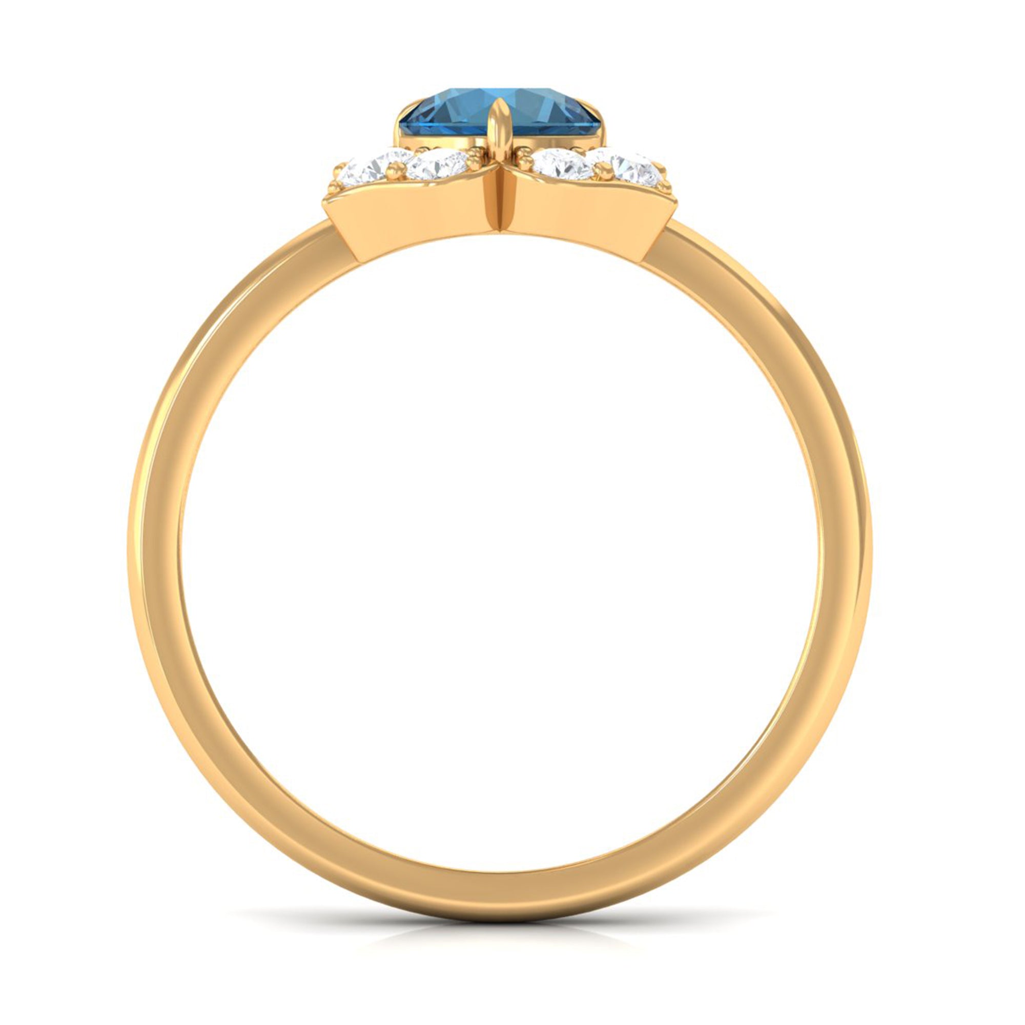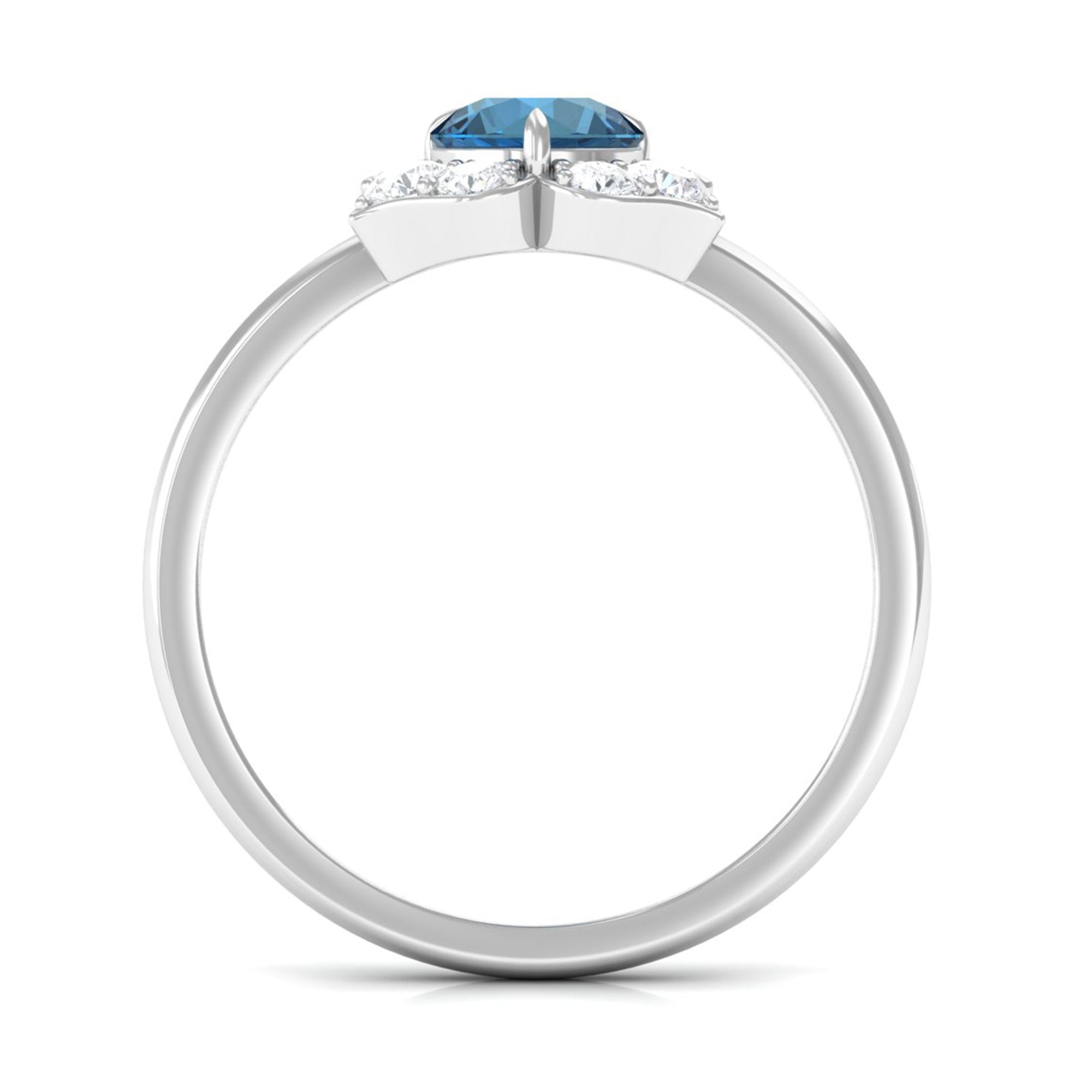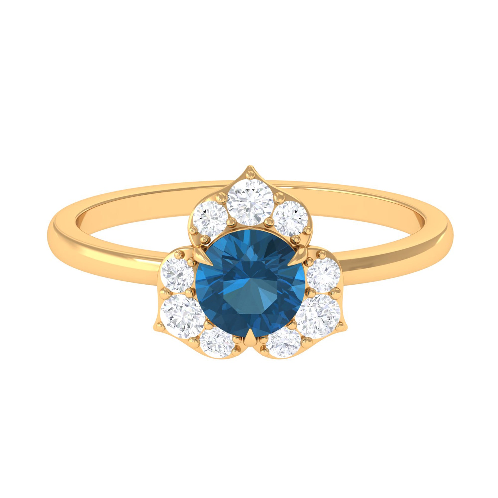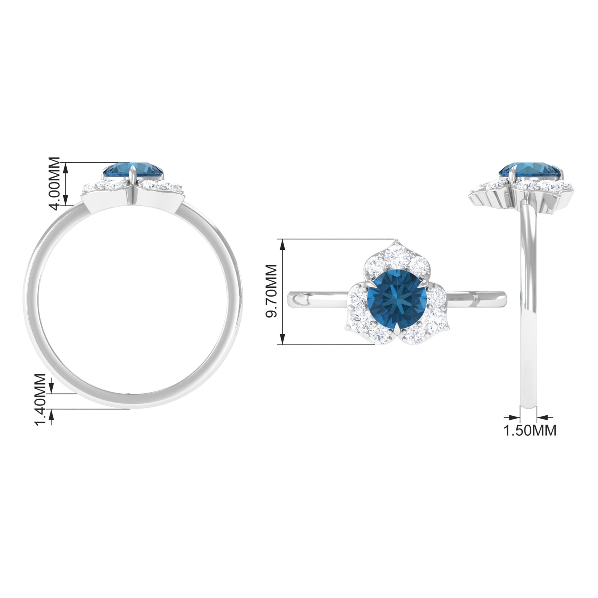 Round London Blue Topaz Floral Engagement Ring with Diamond