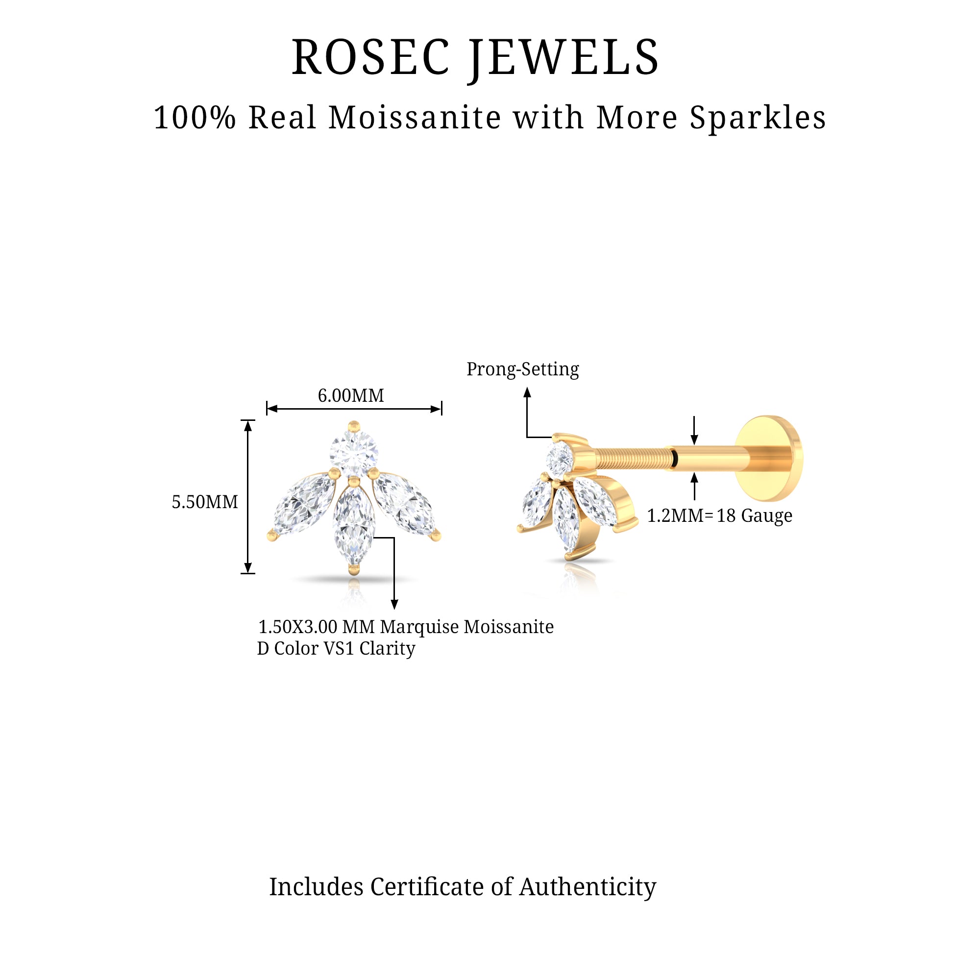 Adorn your ear with this luxurious Moissanite Floral Earring featuring Marquise and Round Cut Moissanites in a stunning Prong Setting. The captivating Flower design of this Earring makes it a perfect choice to wear alone or with other ear piercings on your Conch, Helix, Rook, Cartilage, or Upper Lobe. You can confidently style this Moissanite Earring with any of your casual or formal outfits to add a touch of elegance to your look. Surprise your beloved girl on her Birthday with this Helix Earring and make her feel loved and special.