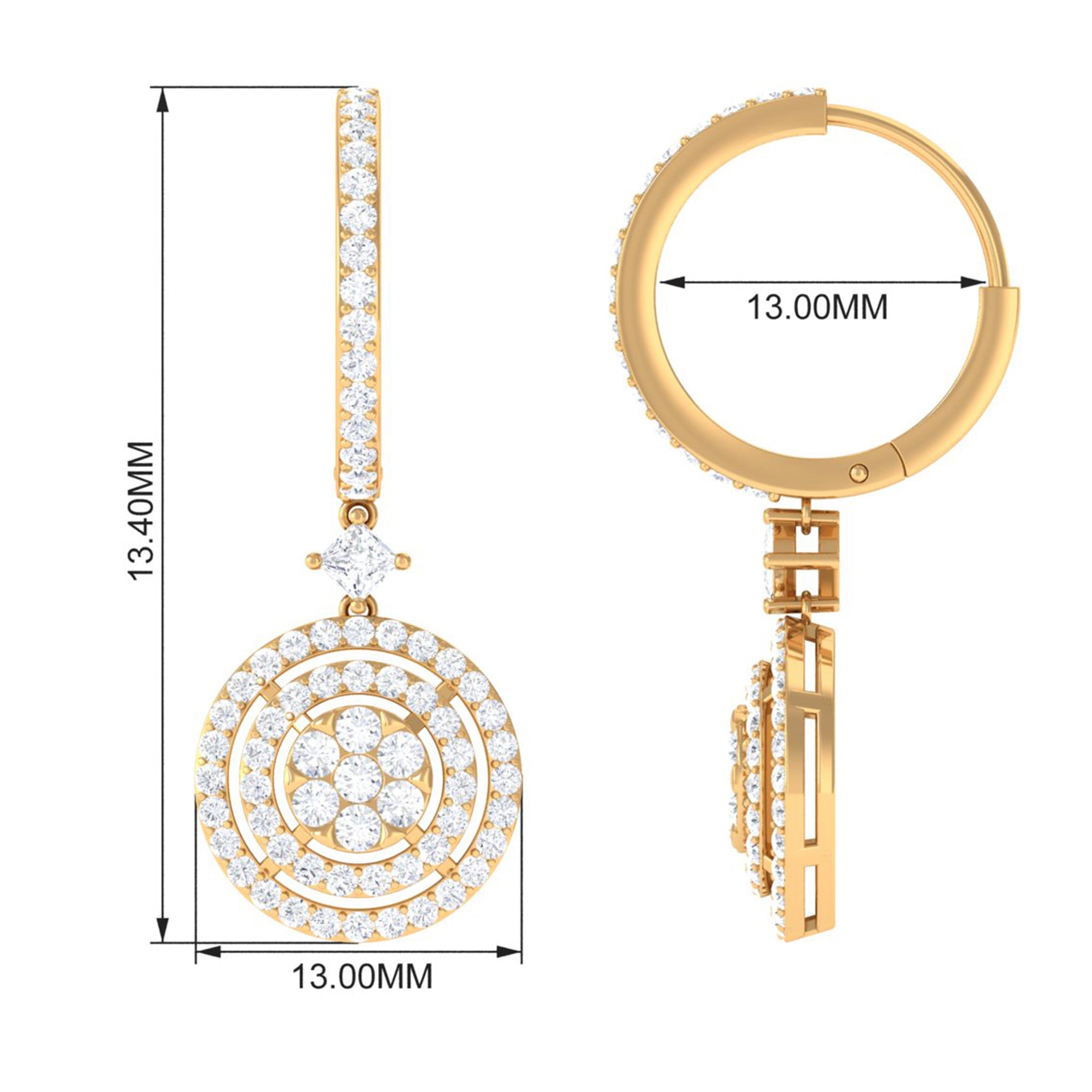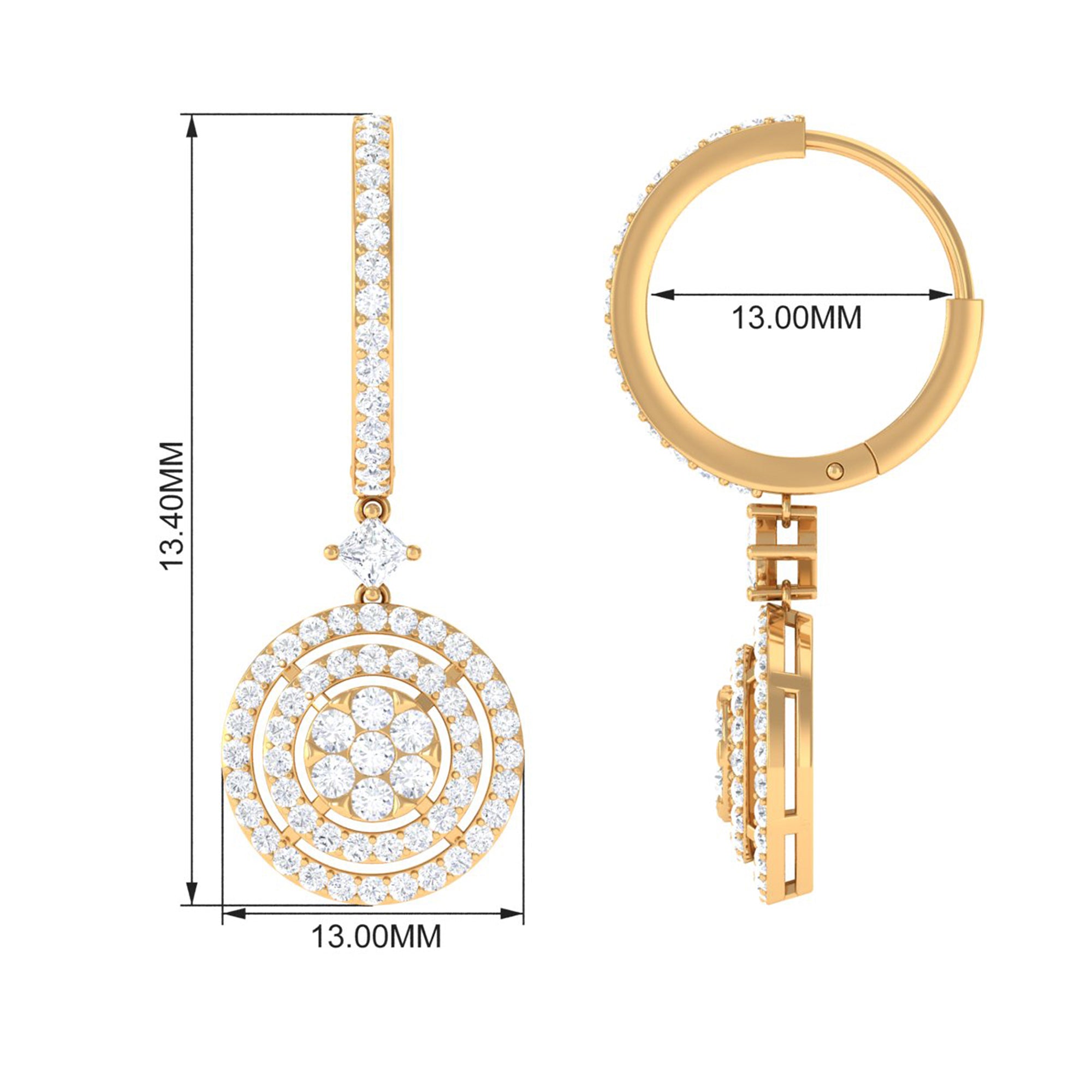 Update your evening looks with these Bridal Hoop Drop Earrings. Each drop features luminous Princess and Round Cut Moissanites enhances the charm of the Hoop Drop Earrings. Set an elegant tone at your events with these Moissanite Drop Earrings that secure comfortably with a hinged back closure. Gift this gorgeous pair of Hoop Earrings to your better half and let her shine and dazzle at all her events.