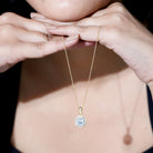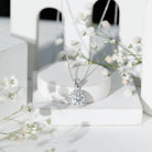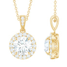 Enhance your style with the exquisite Halo Pendant Necklace featuring a brilliant Round Cut Moissanite delicately held in a Claw Setting, embraced by a shimmering Halo of Round Cut dainty Moissanite stones. The bail is also adorned with round moissanite stones, adding an extra touch of elegance. Whether you choose to wear it with casual or dressy attire, this Moissanite Pendant promises to make you stand out from the crowd with its undeniable allure.