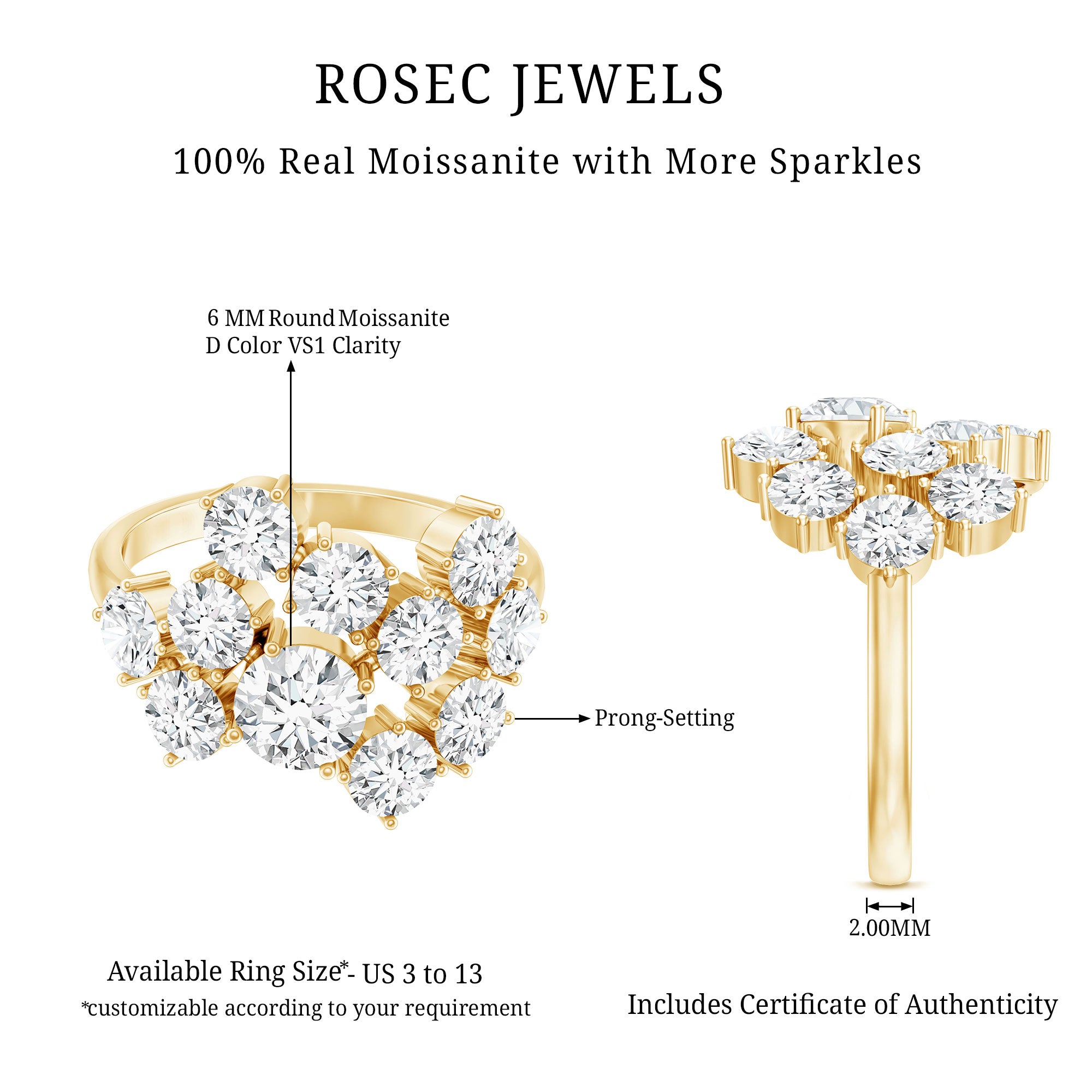 Designed with perfection for you amazing day, this Moissanite Cocktail Ring will make you gleam like never before. It is embellished with round cut moissanite set in prong setting, this Cluster Statement Ring is a perfect as well as enchanting appeal.