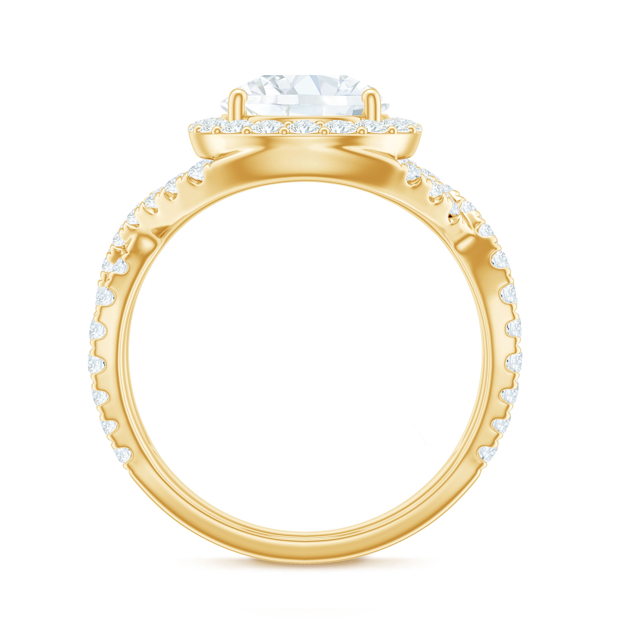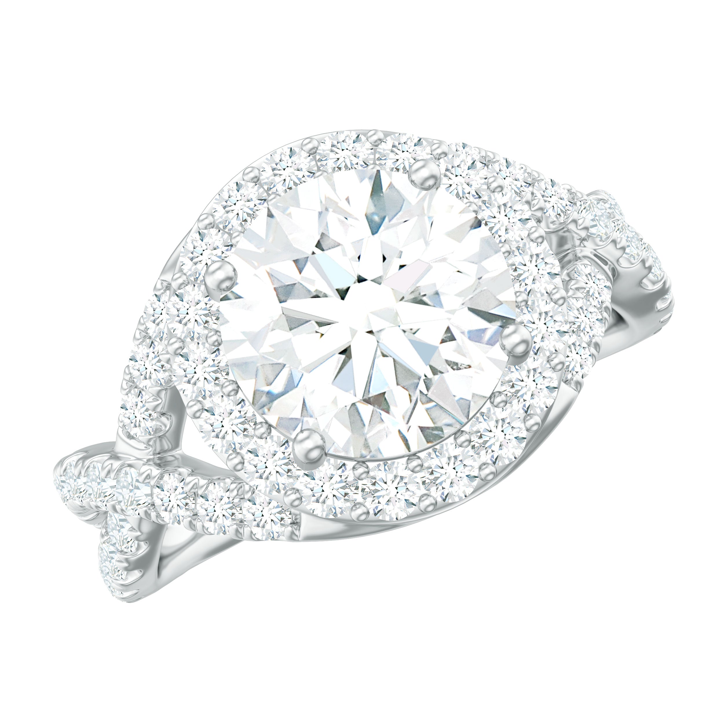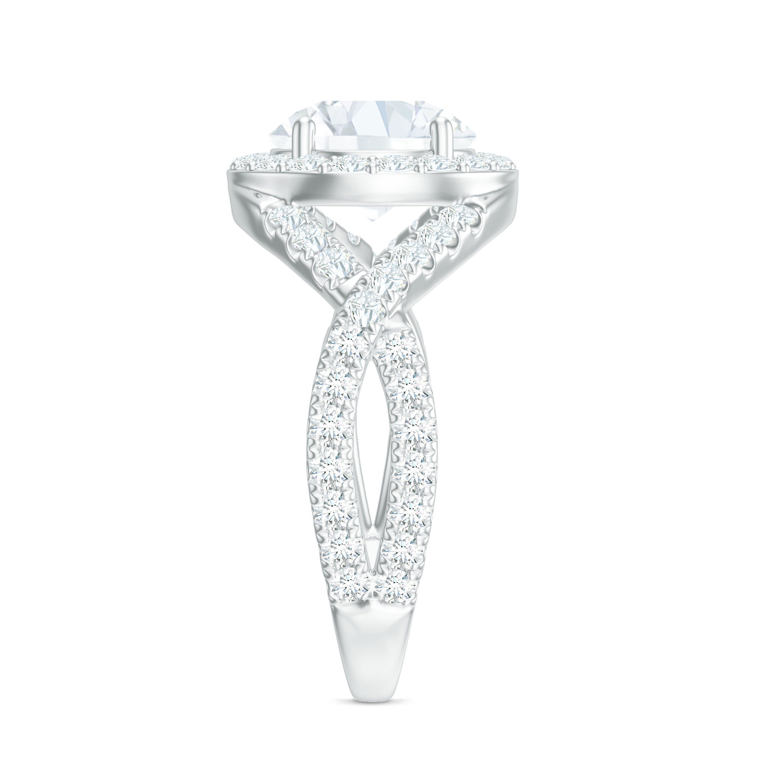 Show your love in the most beautiful way with this Moissanite Engagement Ring, designed to shine with meaning and modern style. At the heart of the Halo Engagement Ring sits a brilliant 8 MM round cut moissanite, secured in prong setting. It is surrounded by a delicate halo of tiny stones that add extra sparkle and make the center stone look even more radiant. One of the standout features of this Round Engagement Ring is its criss cross band, decorated with small round moissanites. This elegant twist in the design represents two lives coming together, making it not just stylish but also meaningful. The modern crossover detail adds a fresh and elegant touch while still keeping the 2 Carat Moissanite Ring timeless. It is crafted with care, designed to be comfortable for daily wear, and is sure to become a favorite piece in any jewelry collection. Presented in a chic jewelry box, this Criss Cross Engagement Ring is ready to be gifted or kept as a lasting memory of love and commitment. Whether worn every day or on special occasions, it is a ring that speaks from the heart.