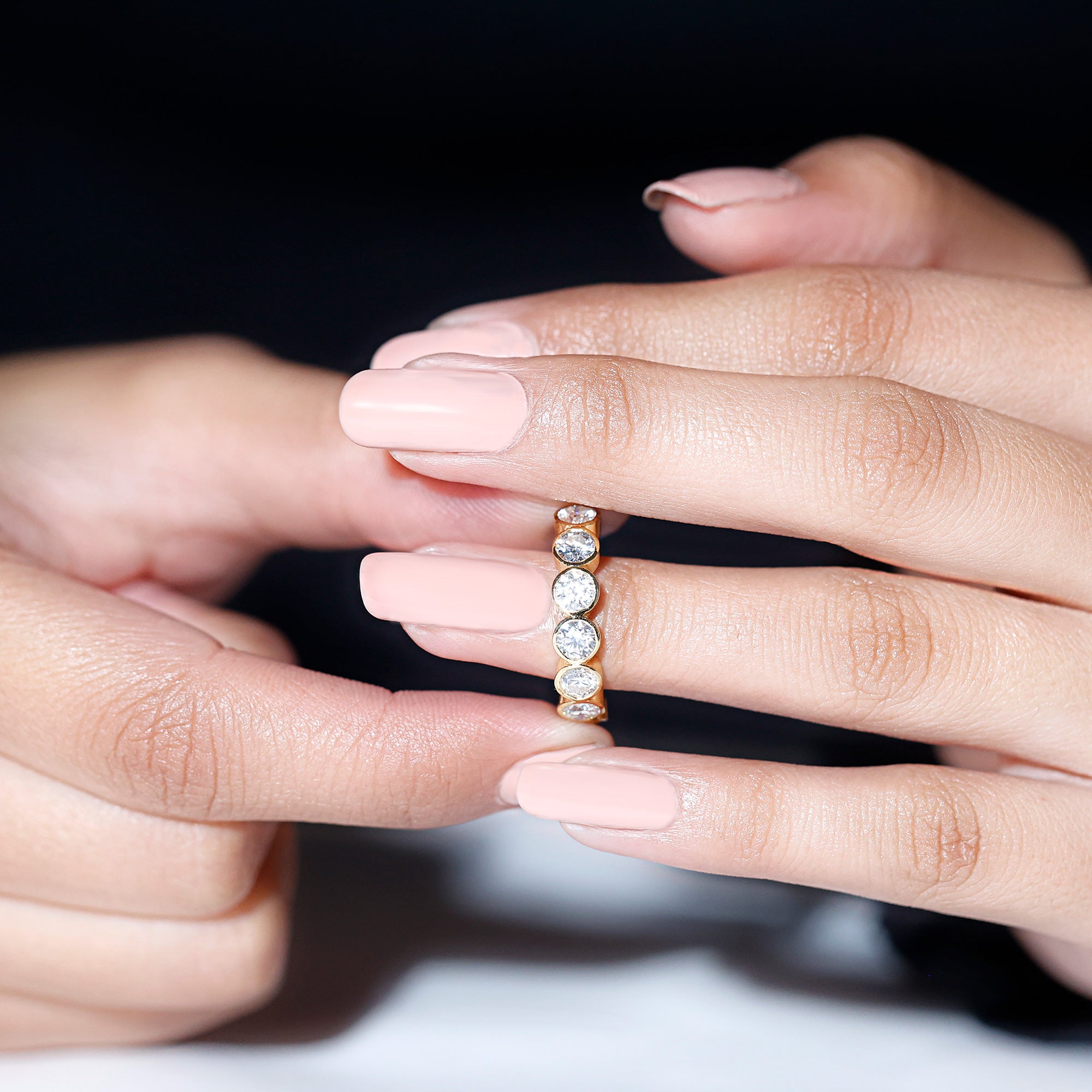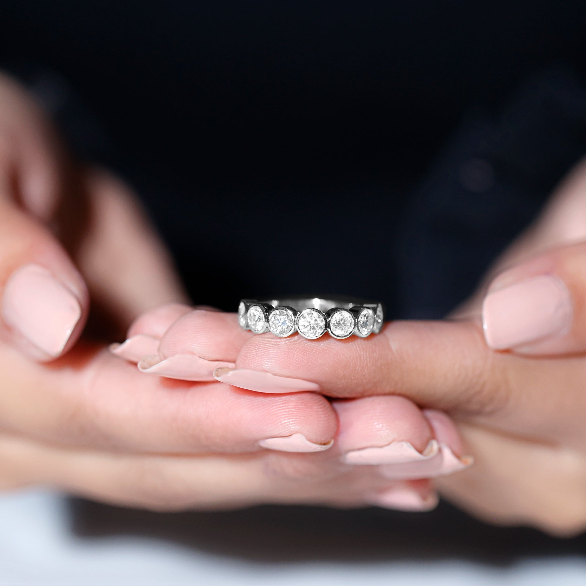 Round Moissanite Half Eternity Ring in Bezel Setting