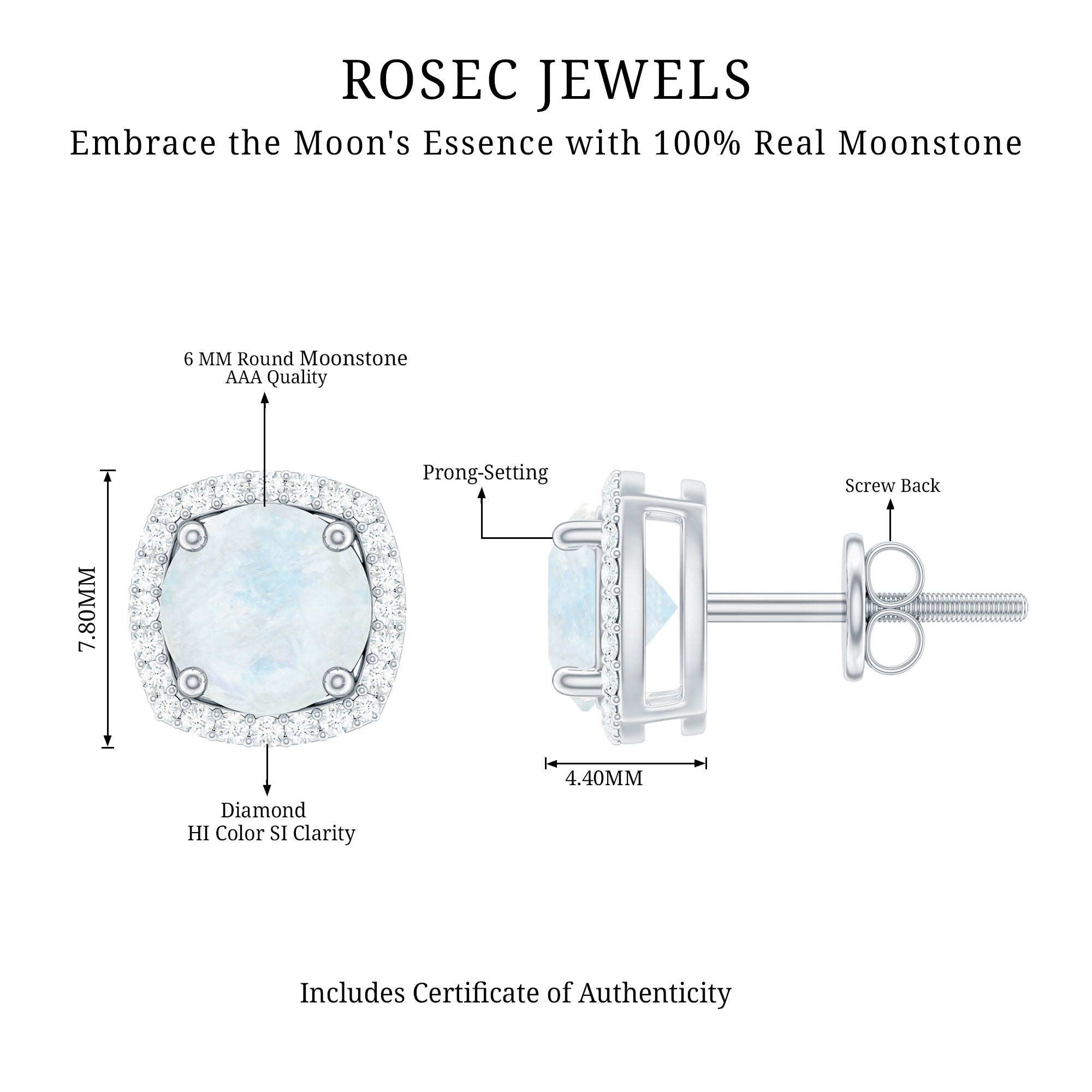 Round Moonstone Classic Halo Stud Earrings with Diamond