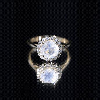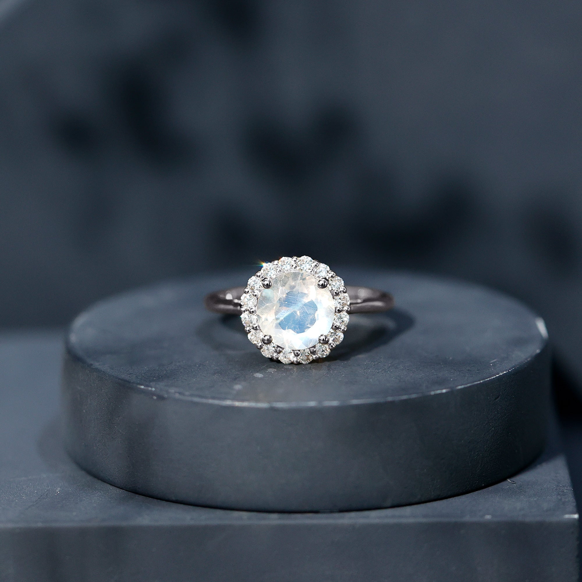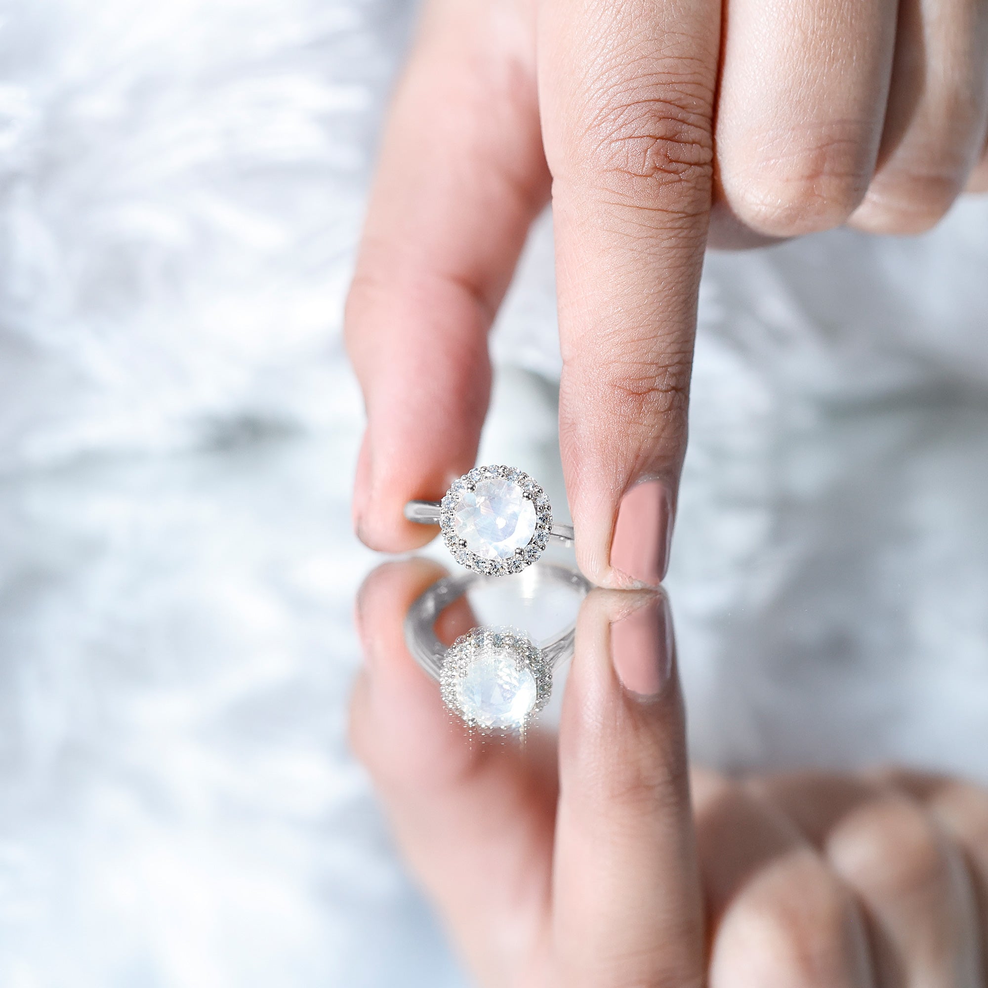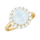 Round Moonstone Simple Halo Engagement Ring with Diamond