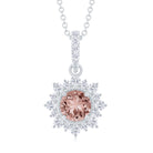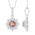 Round Morganite and Diamond Halo Pendant Necklace