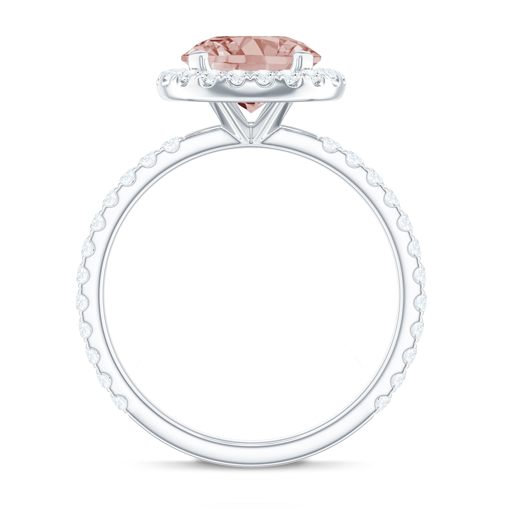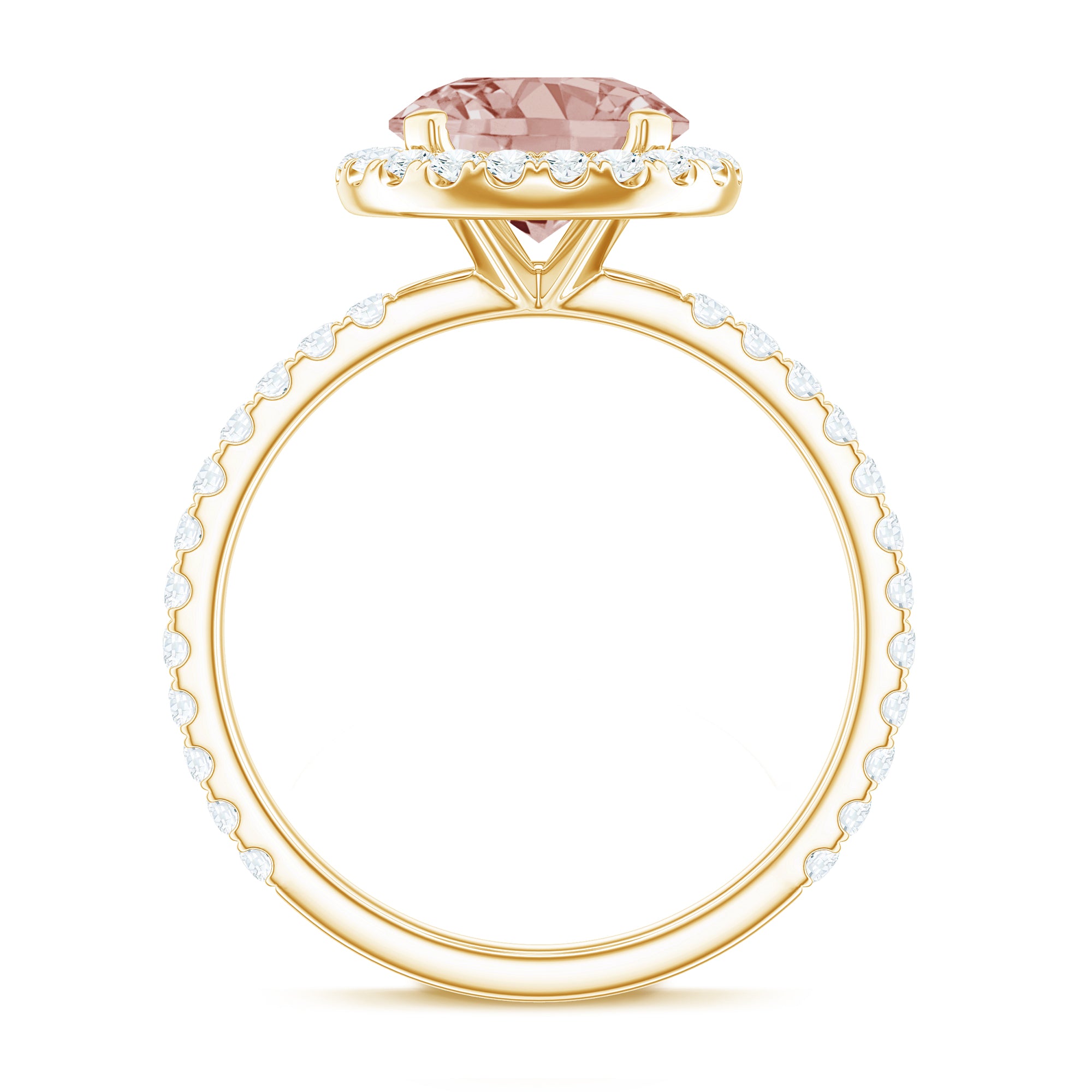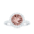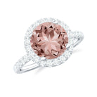 Make a bold statement with this stunning Floating Halo Ring, featuring an 8 MM round cut Morganite as the centerpiece with shimmering Moissanite creating a floating halo effect. Crafted with solid gold metal for a luxurious finish.