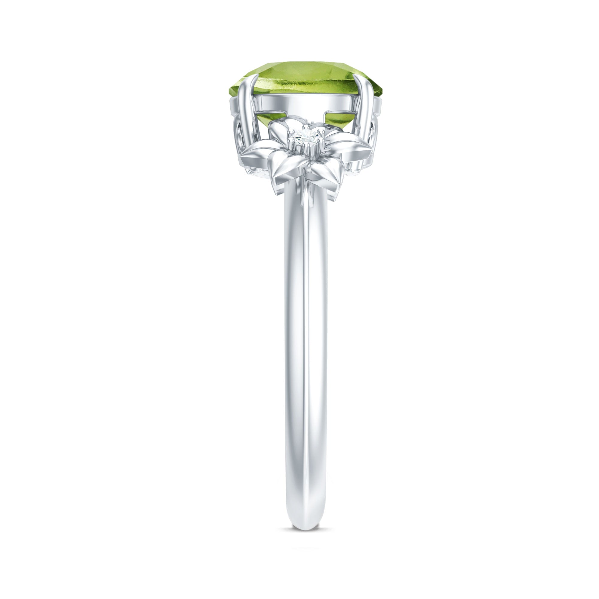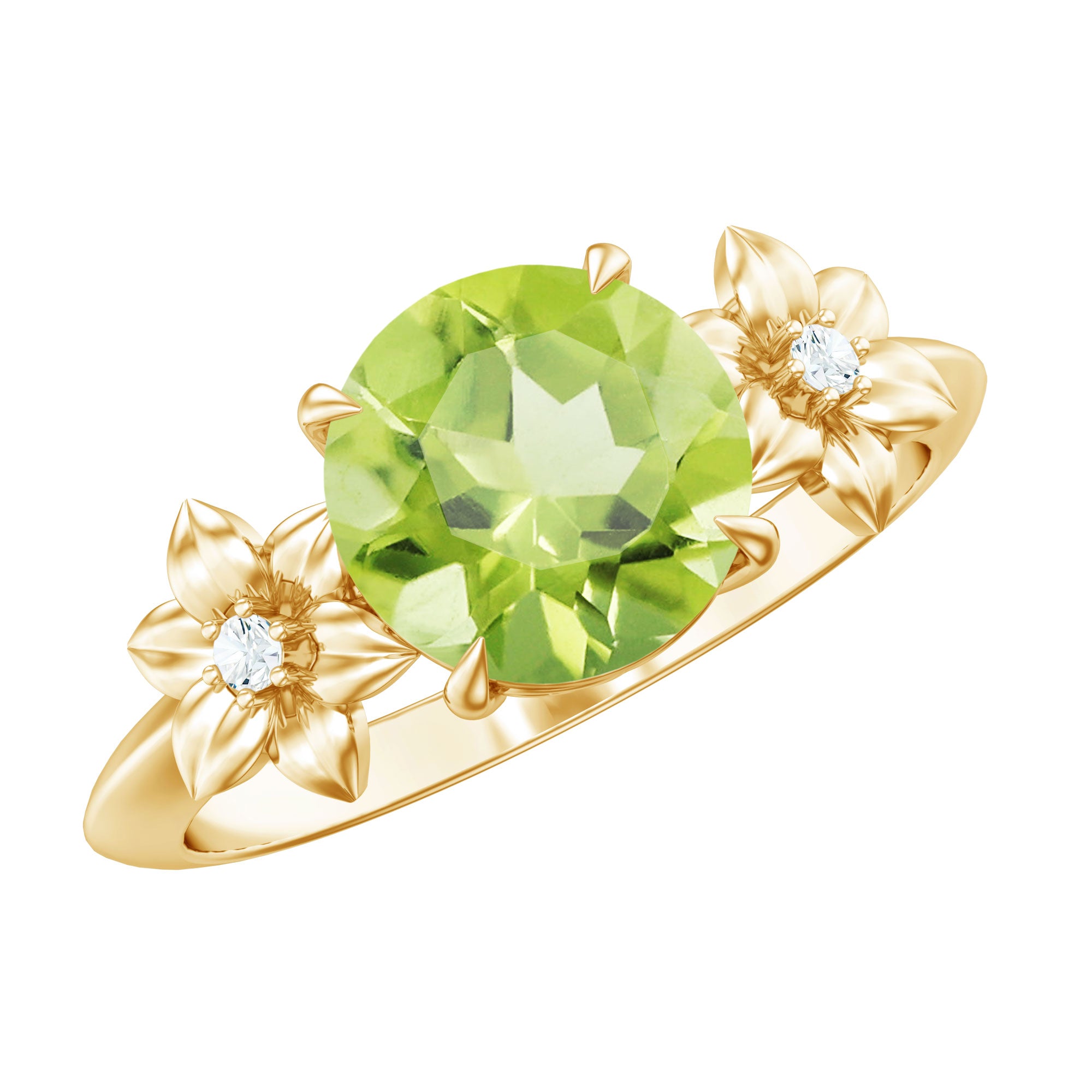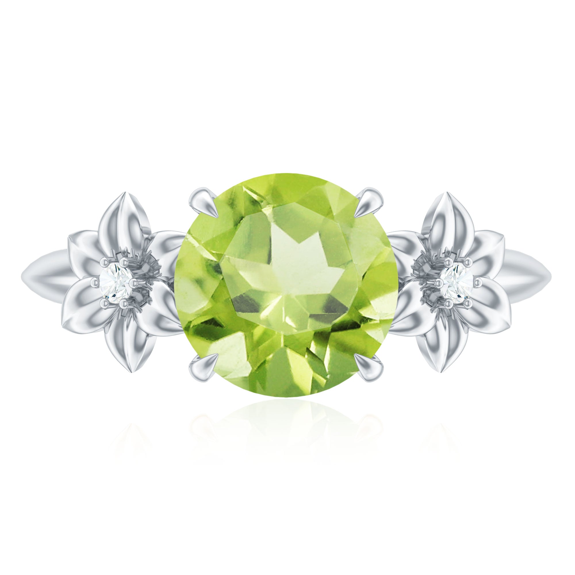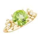 Round Peridot Solitaire Flower Engagement Ring with Diamond