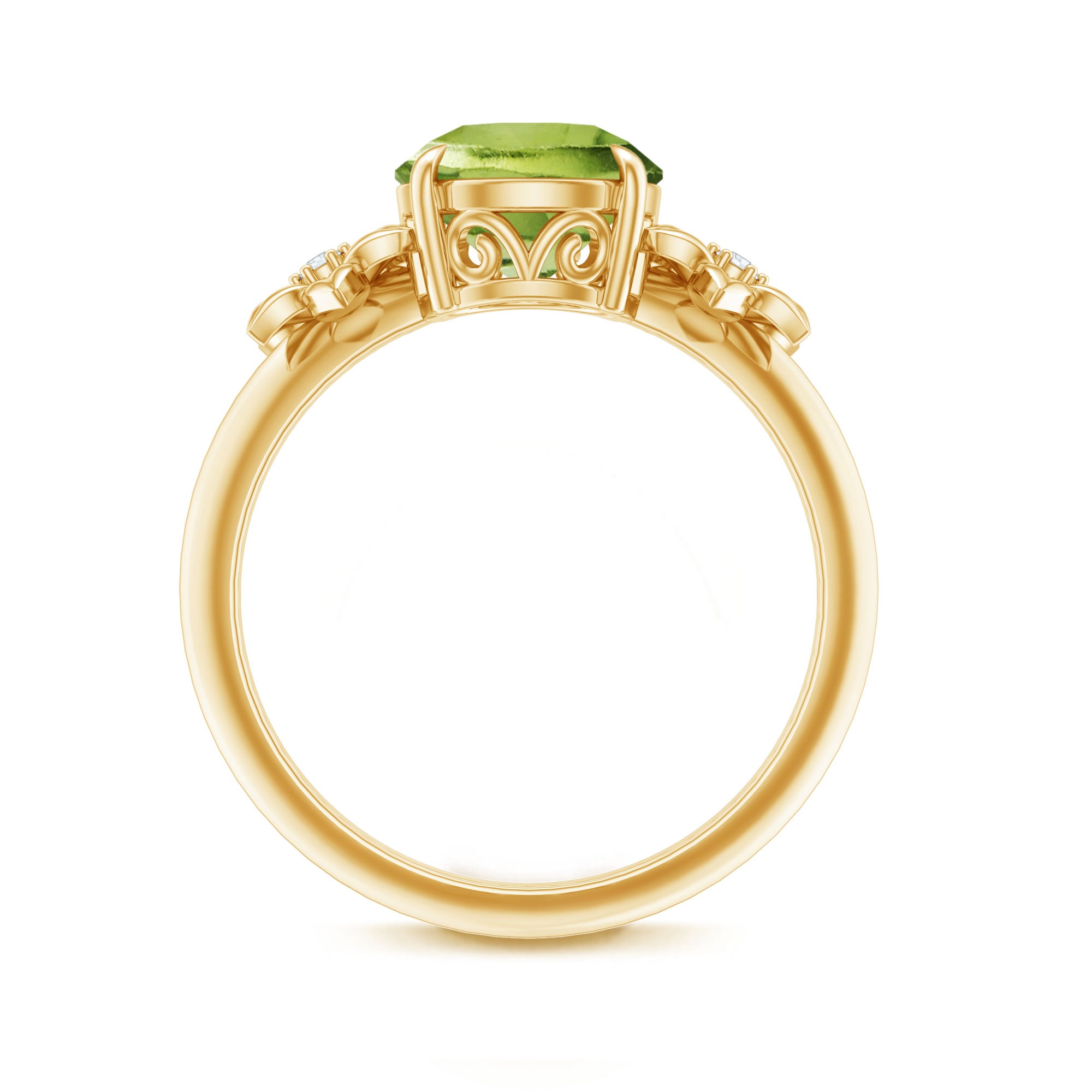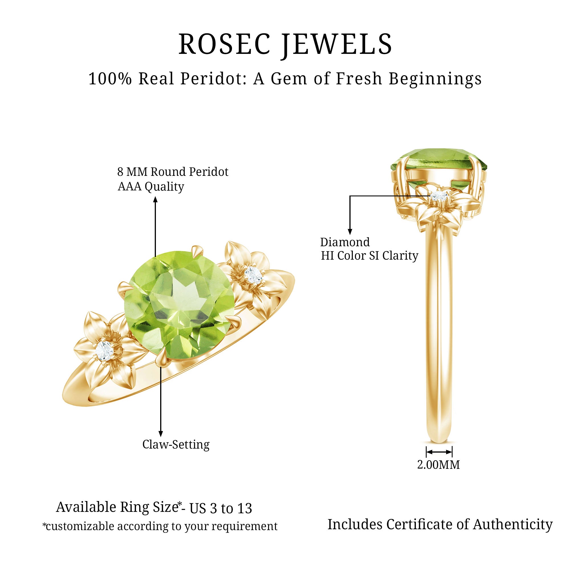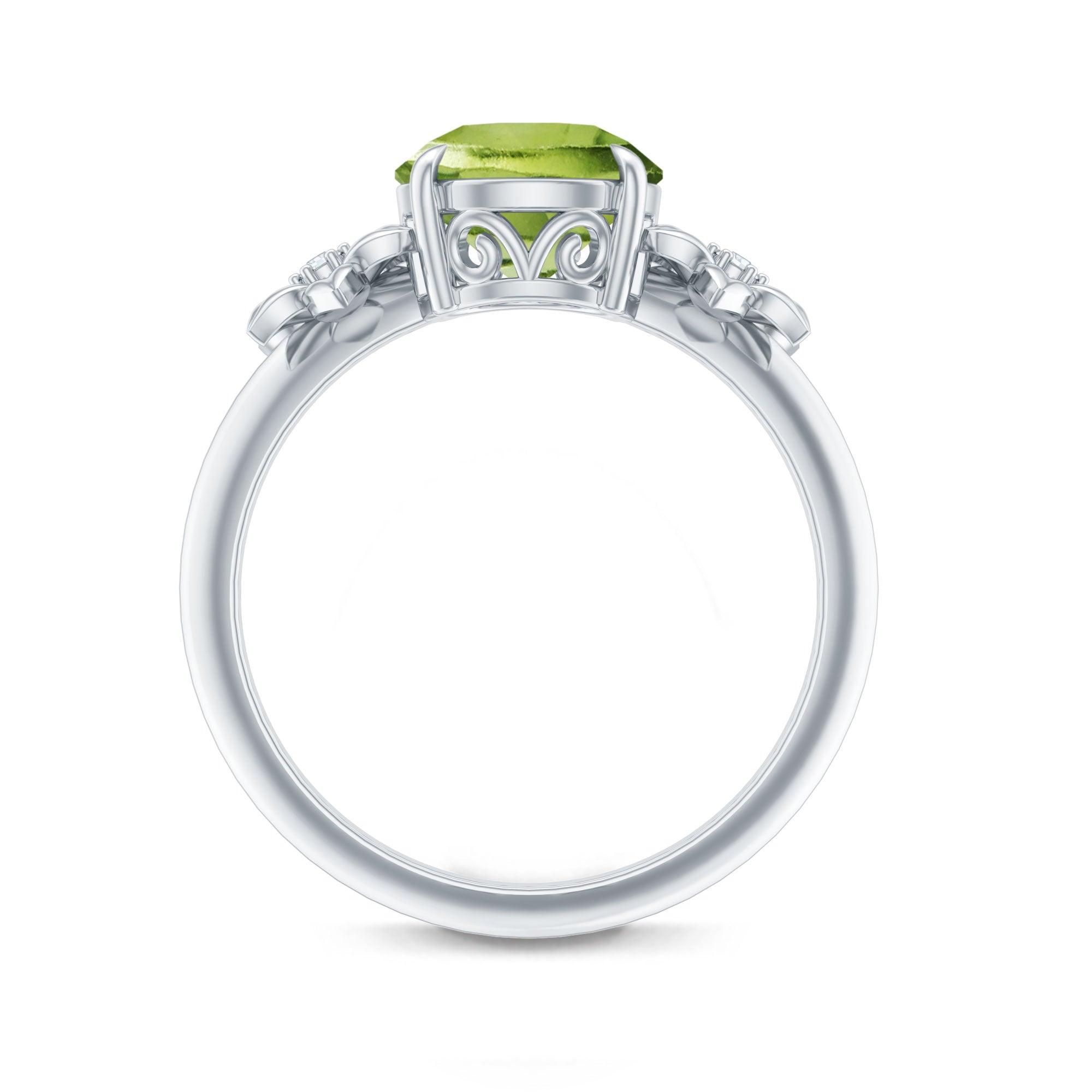 Round Peridot Solitaire Flower Engagement Ring with Diamond