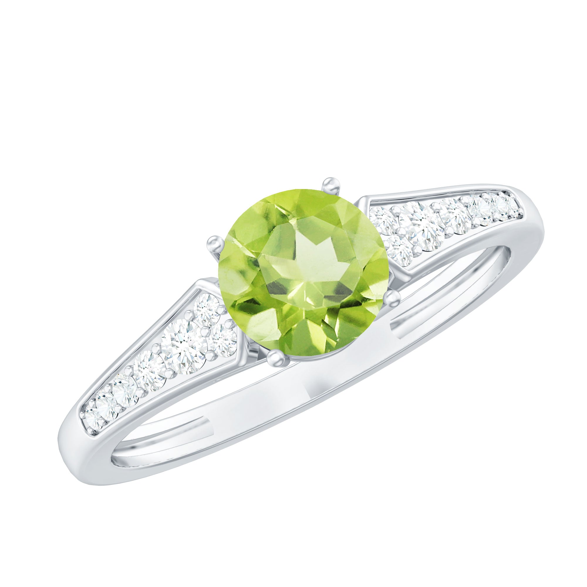 Round Peridot Solitaire Ring with Diamond Side Stones