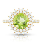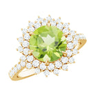 Round Peridot Statement Engagement Ring with Moissanite Cluster Halo