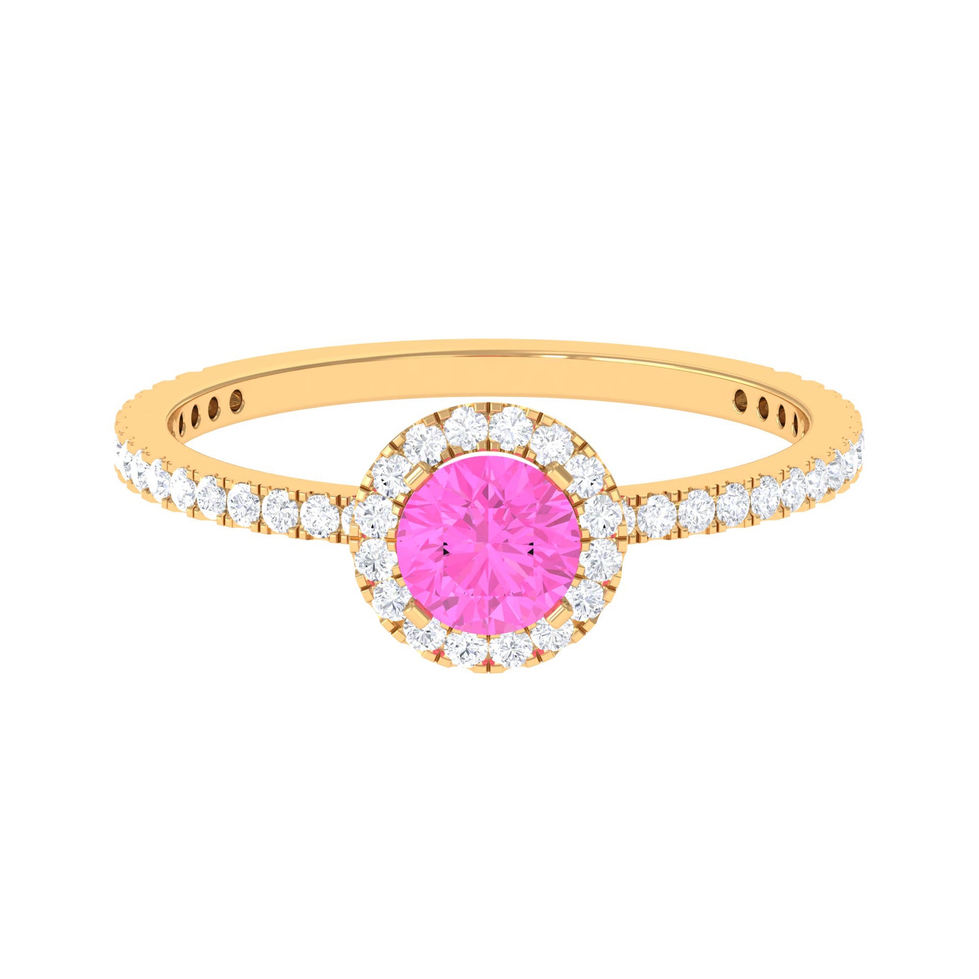 Round Pink Sapphire Halo Engagement Ring with Diamond