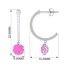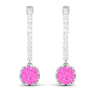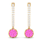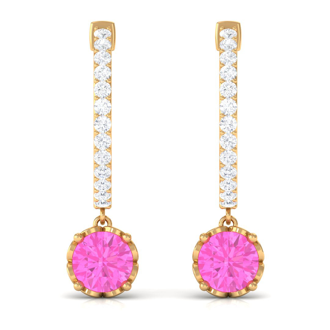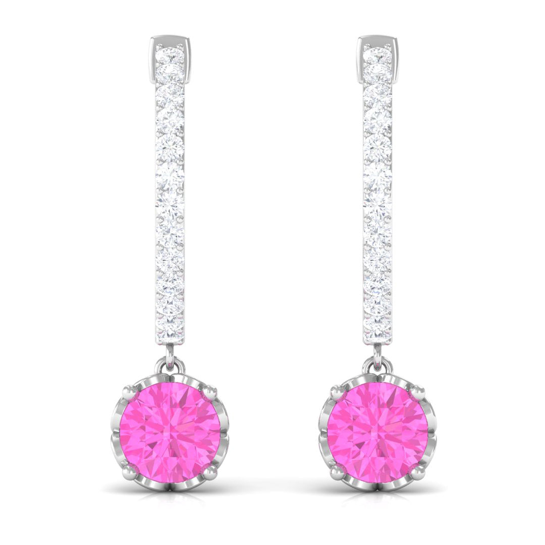 Round Pink Sapphire Hoop Drop Earrings with Diamond