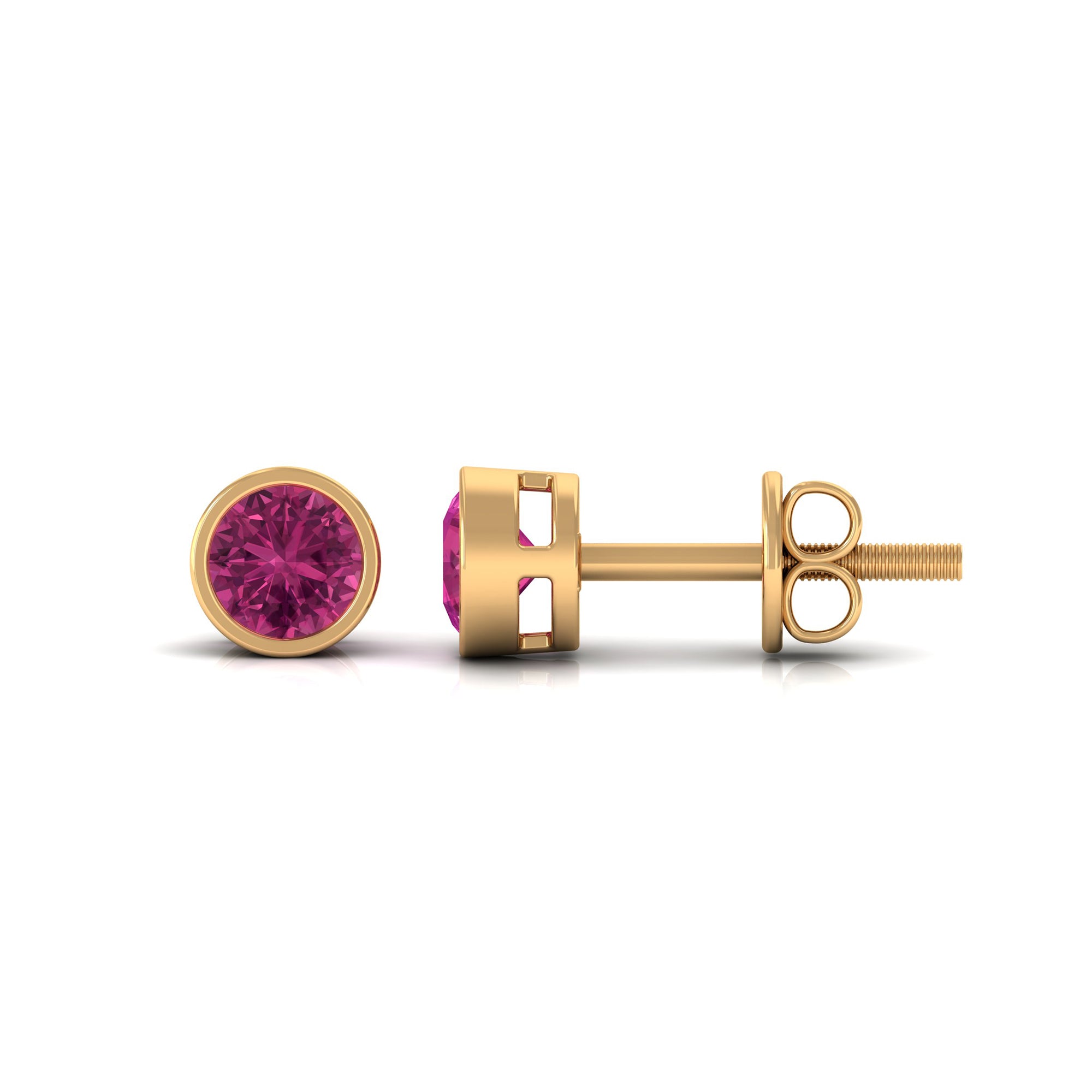 Treat yourself with these Solitaire Stud Earrings feature a Round Shape Pink Tourmaline secured by Bezel Setting. Set an elegant tone at your events with these Gold Stud Earrings that secure comfortably with a screw back closure. Get this stunning pair of Tourmaline Earrings as a gift for her and wait for her to shine and dazzle at all her events.