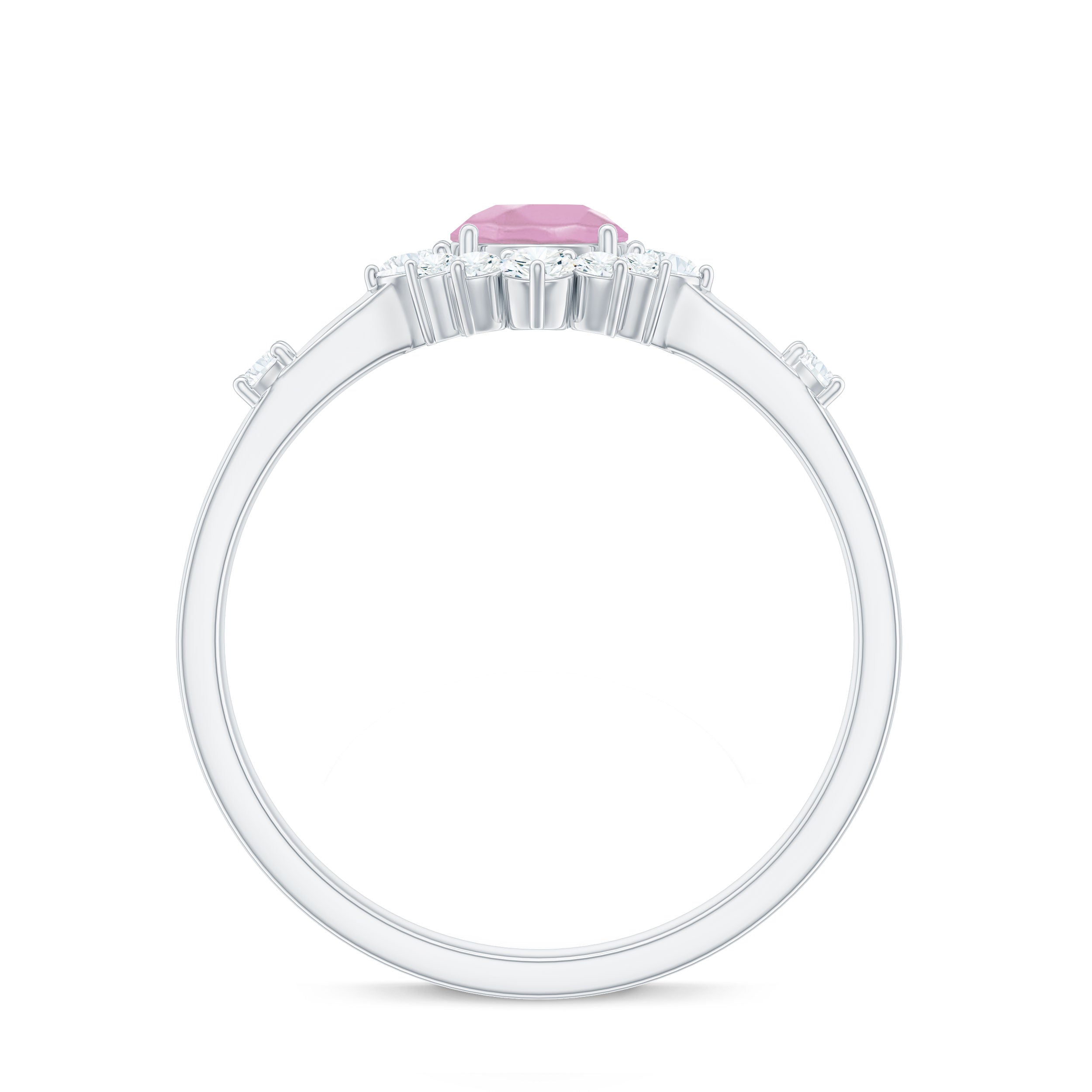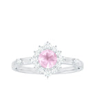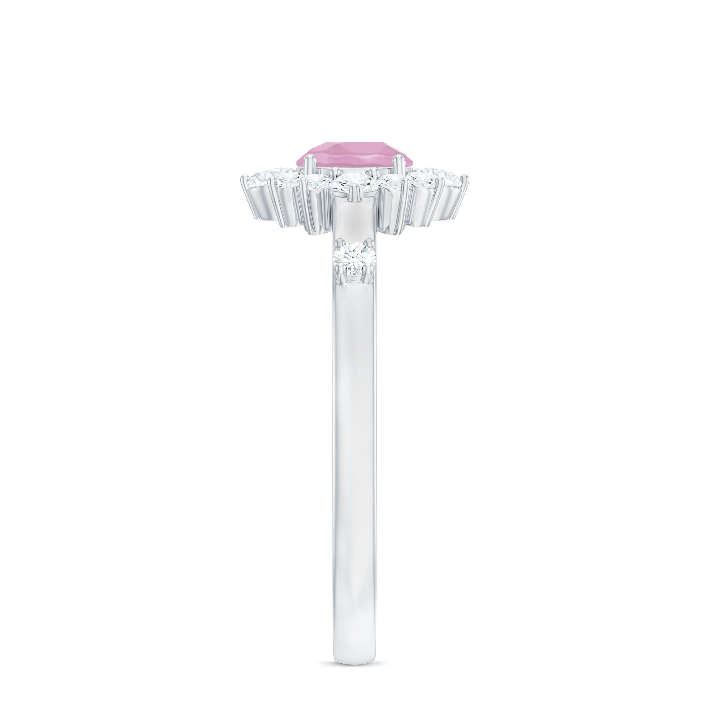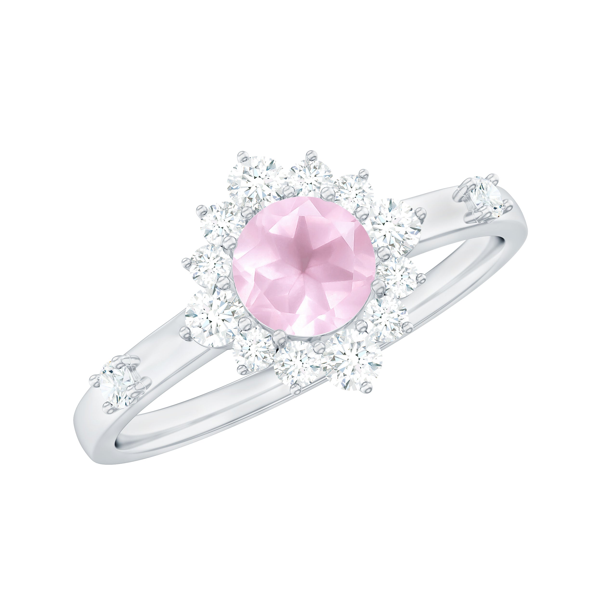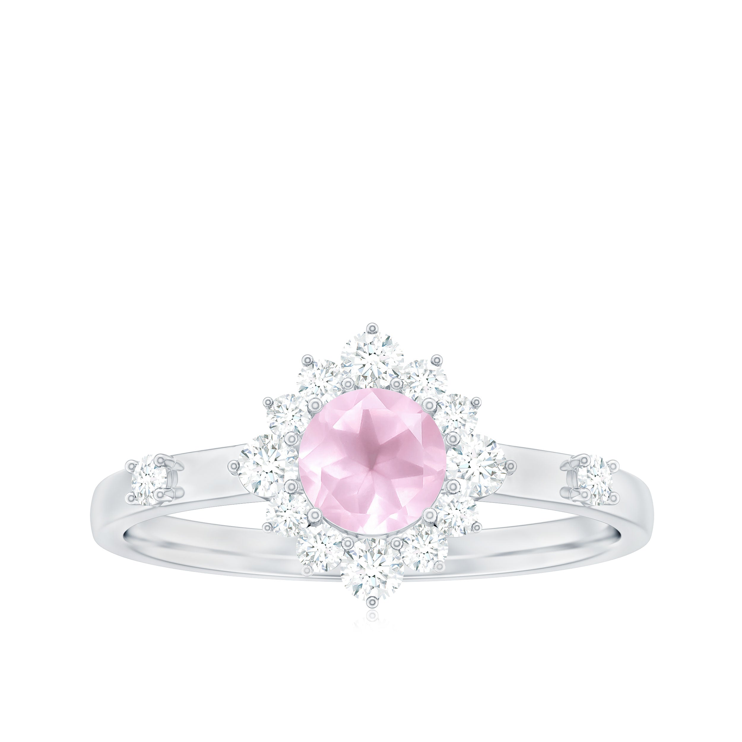 Round Rose Quartz Classic Halo Engagement Ring with Diamond