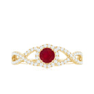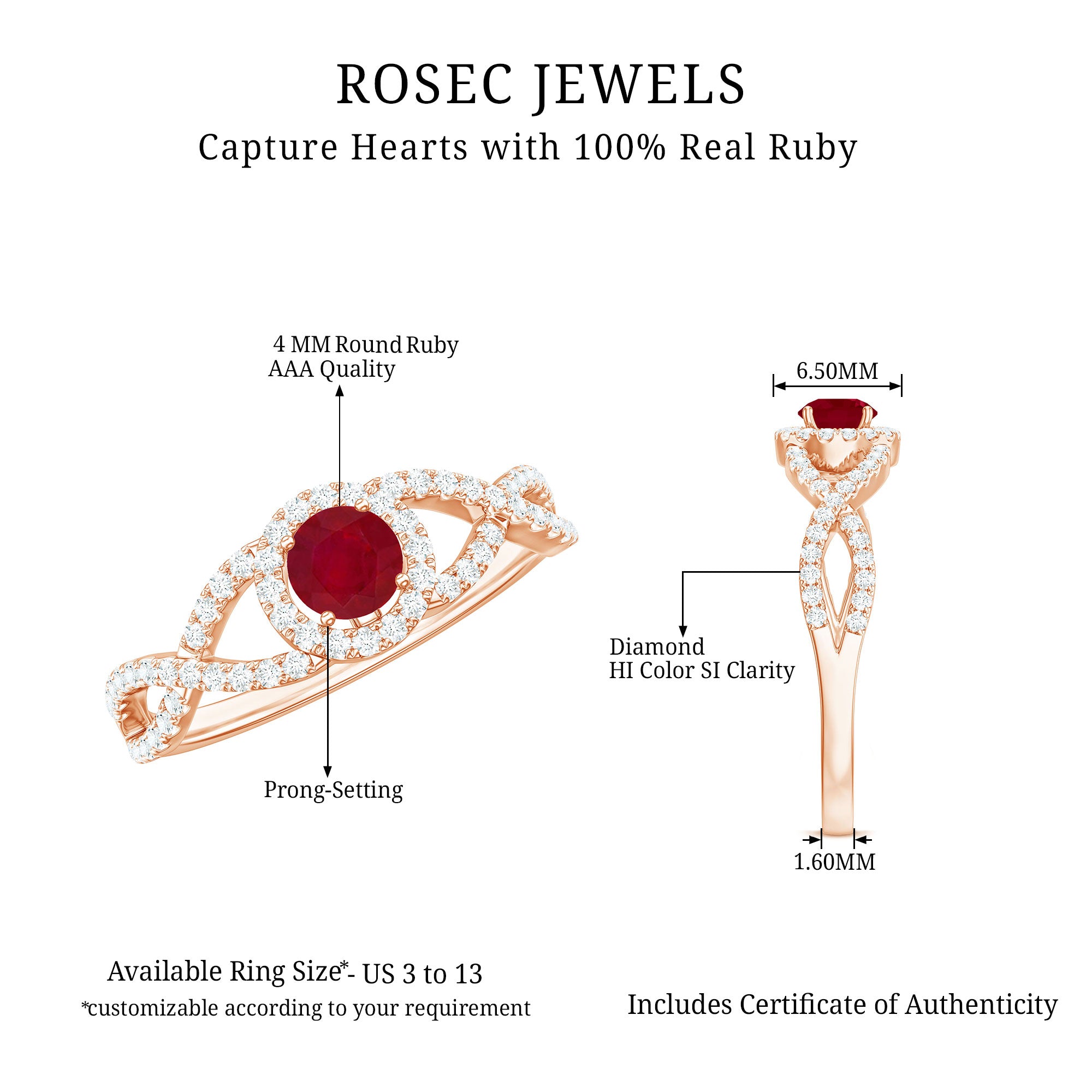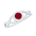 Round Ruby and Diamond Criss Cross Engagement Ring