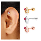 Add a special touch to your style with this classic Helix Earring. The Body jewelry is crafted with Gold, giving it a luxurious appeal, while Round Cut Ruby and moissanite create a timeless look. This Ruby Earring is designed to create a captivating and sparkling effect, enhancing the beauty of the Helix Stud. Wear it as a Cartilage, Upper Lobe, or Helix Piercing to achieve a chic and fashionable look.