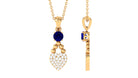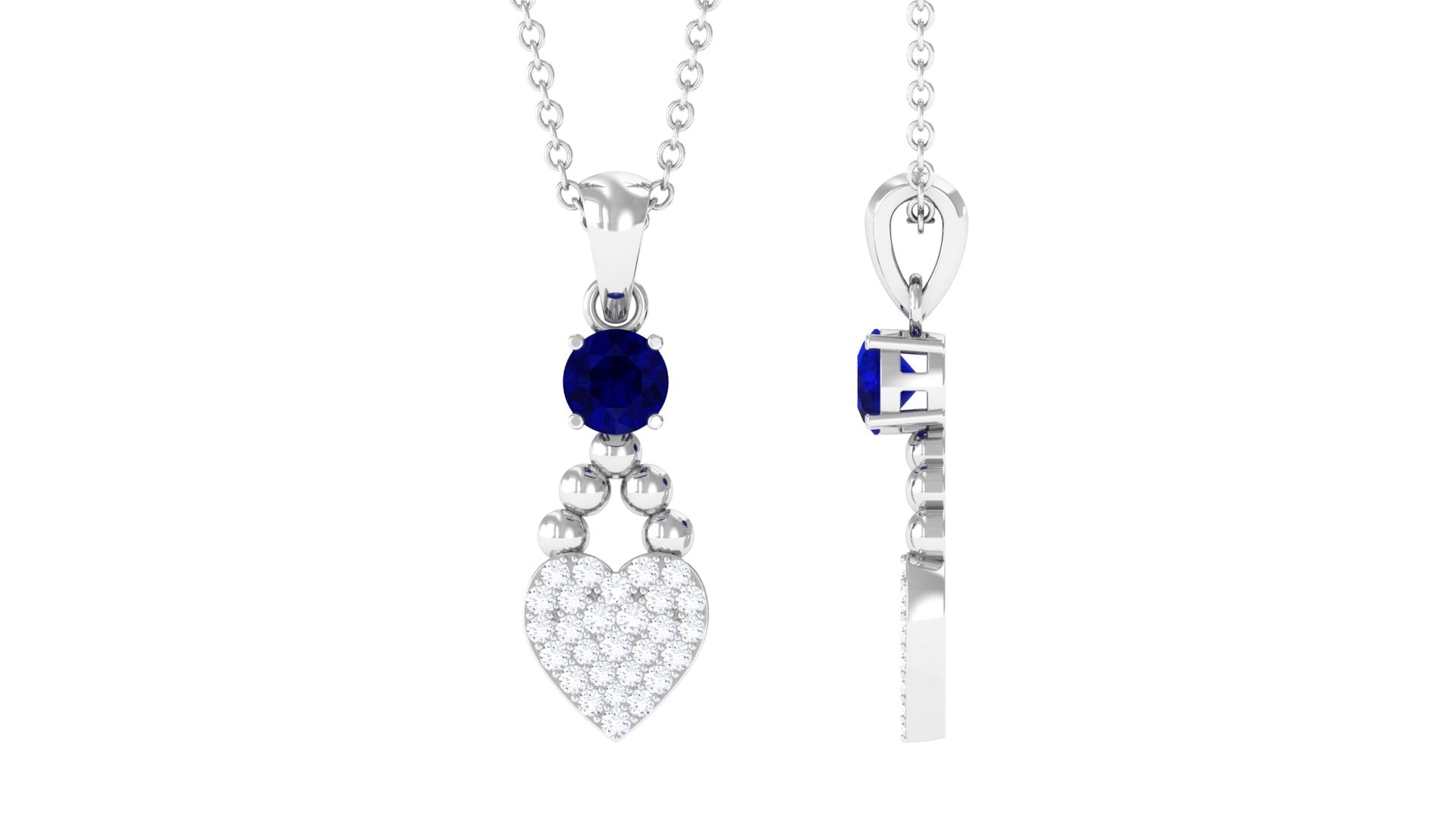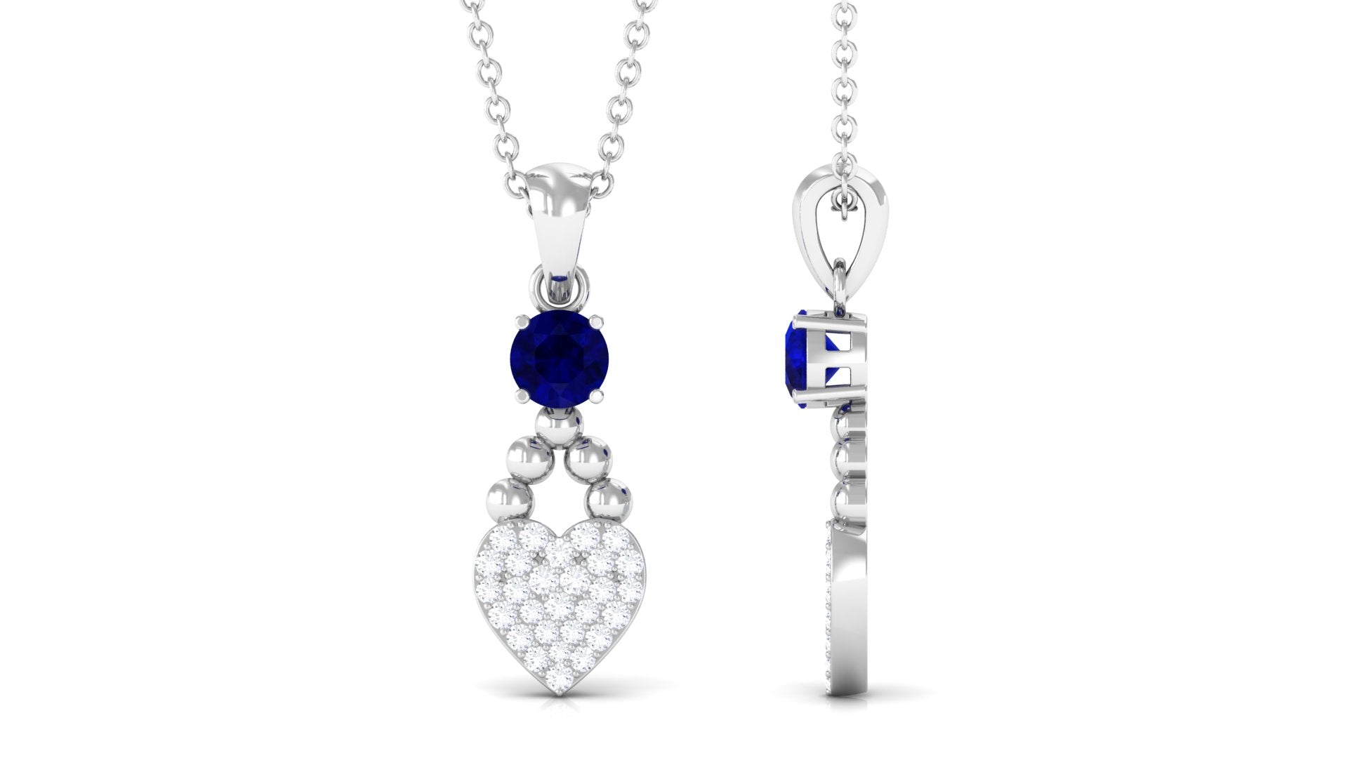 Round Shape Blue Sapphire and Diamond Heart Pendant