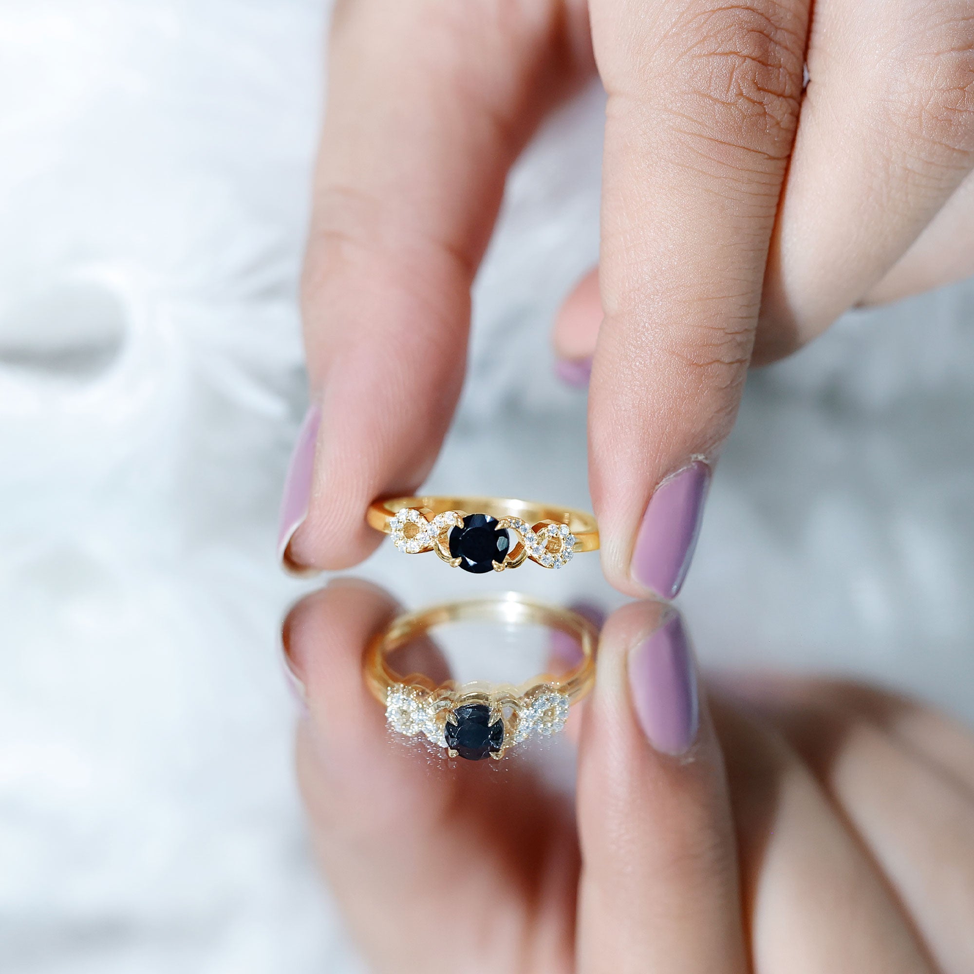Round Shape Created Black Diamond and Diamond Infinity Engagement Ring