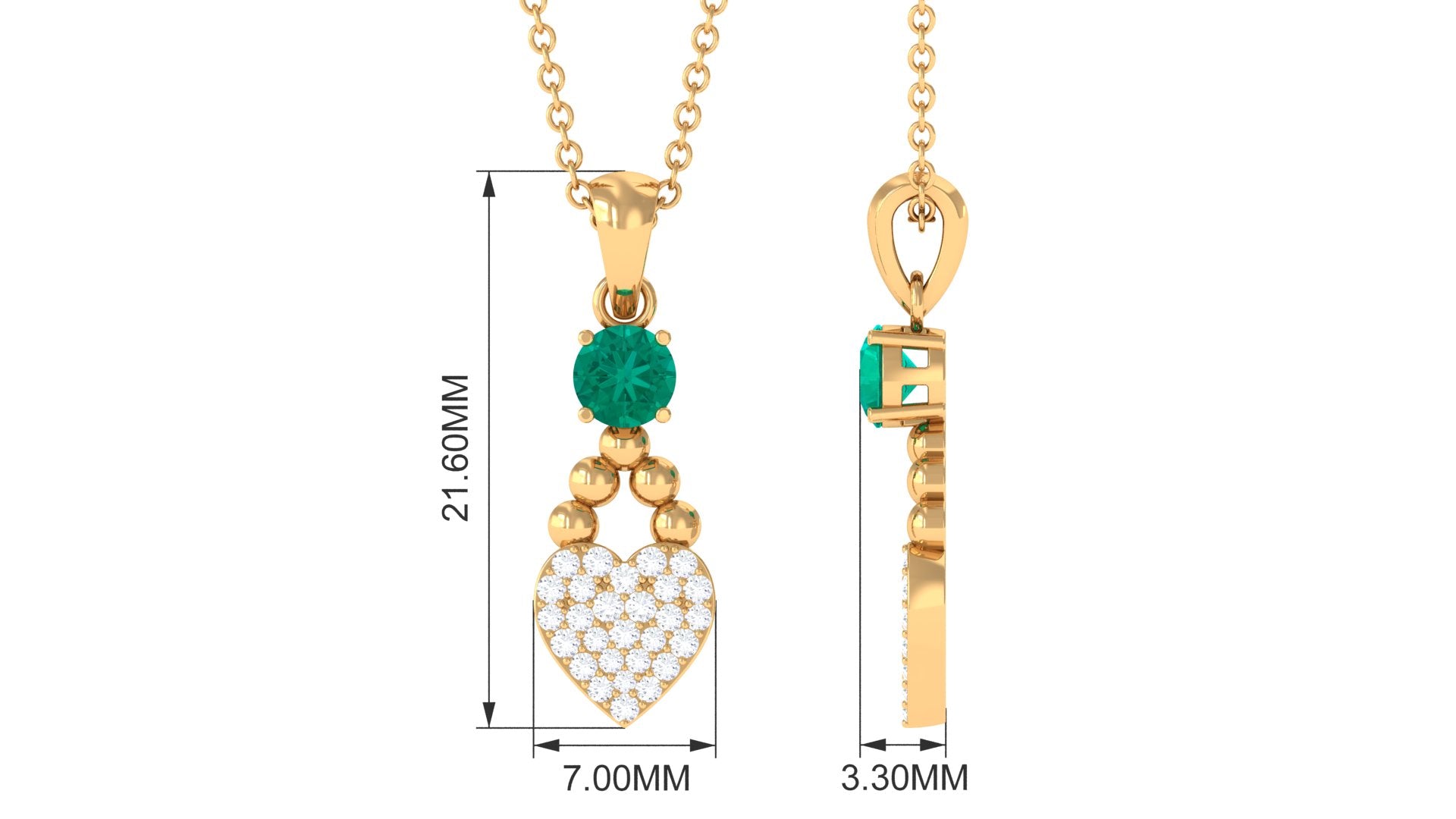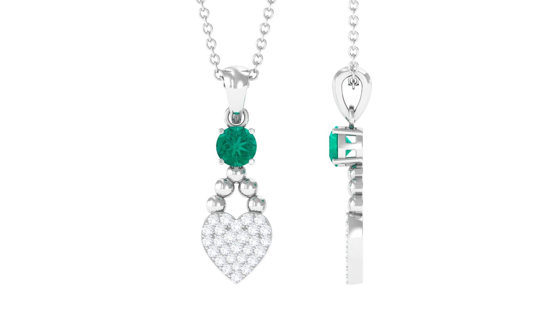 Round Shape Emerald and Diamond Heart Pendant