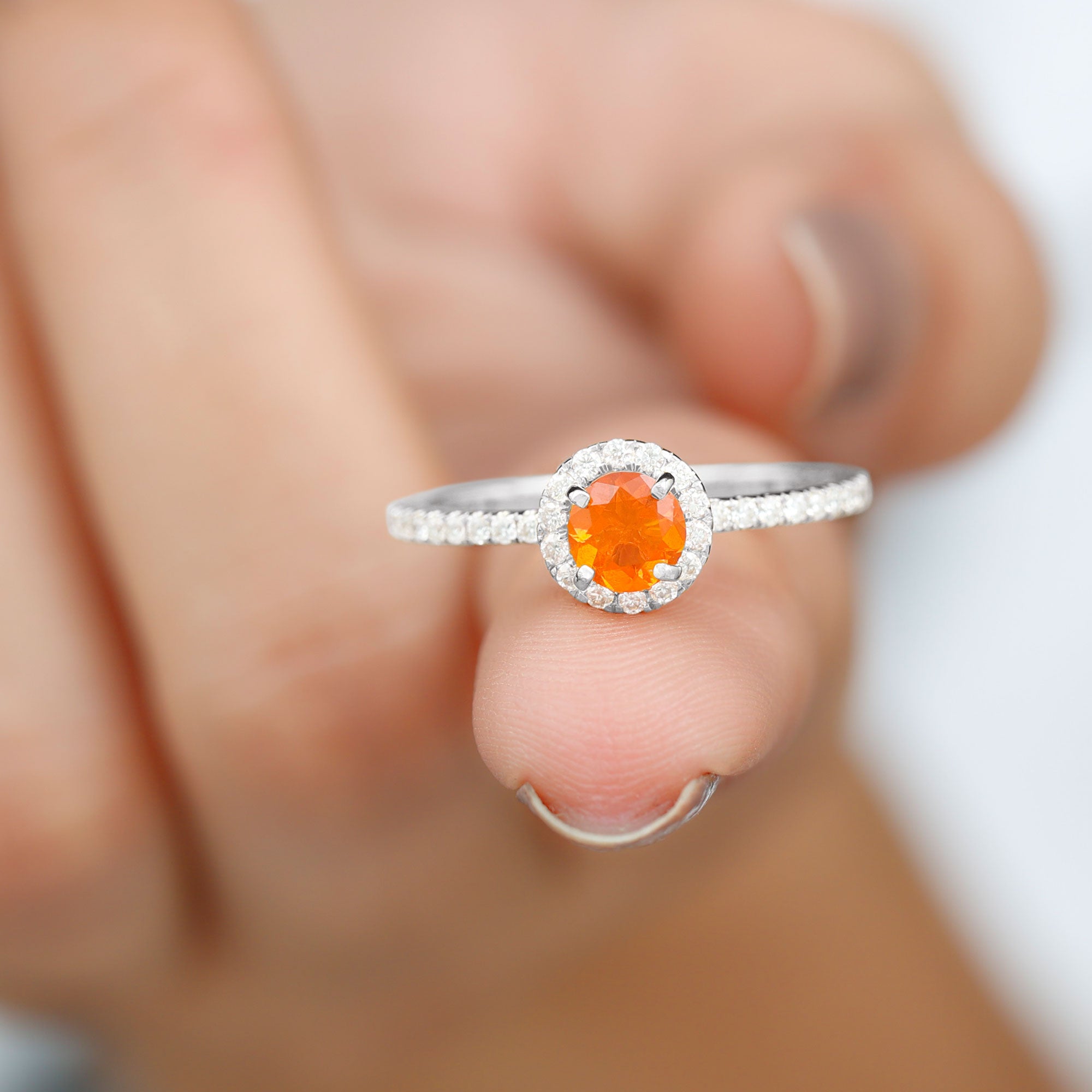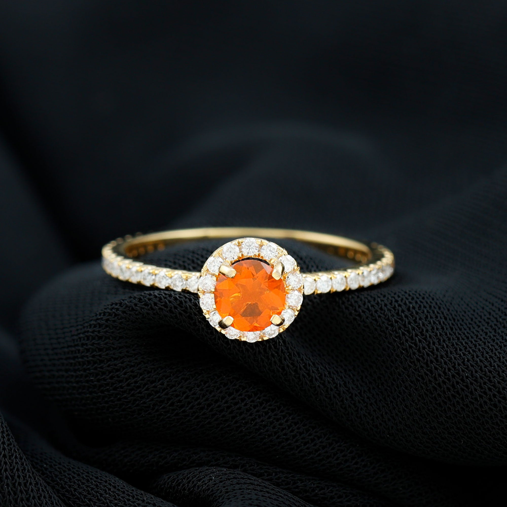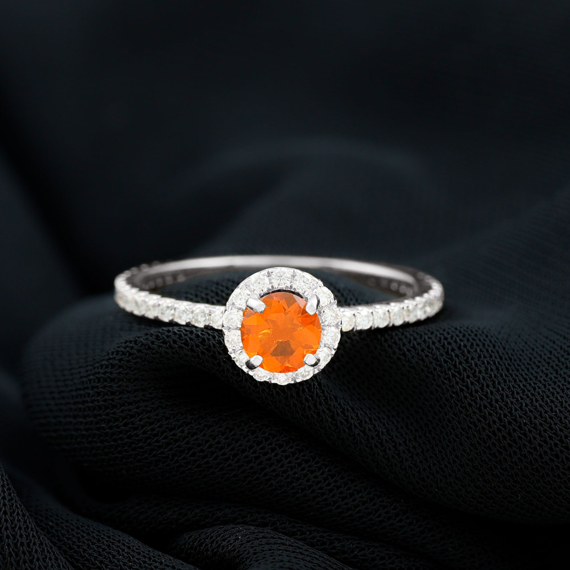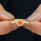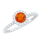 Round Shape Fire Opal Halo Engagement Ring with Diamond