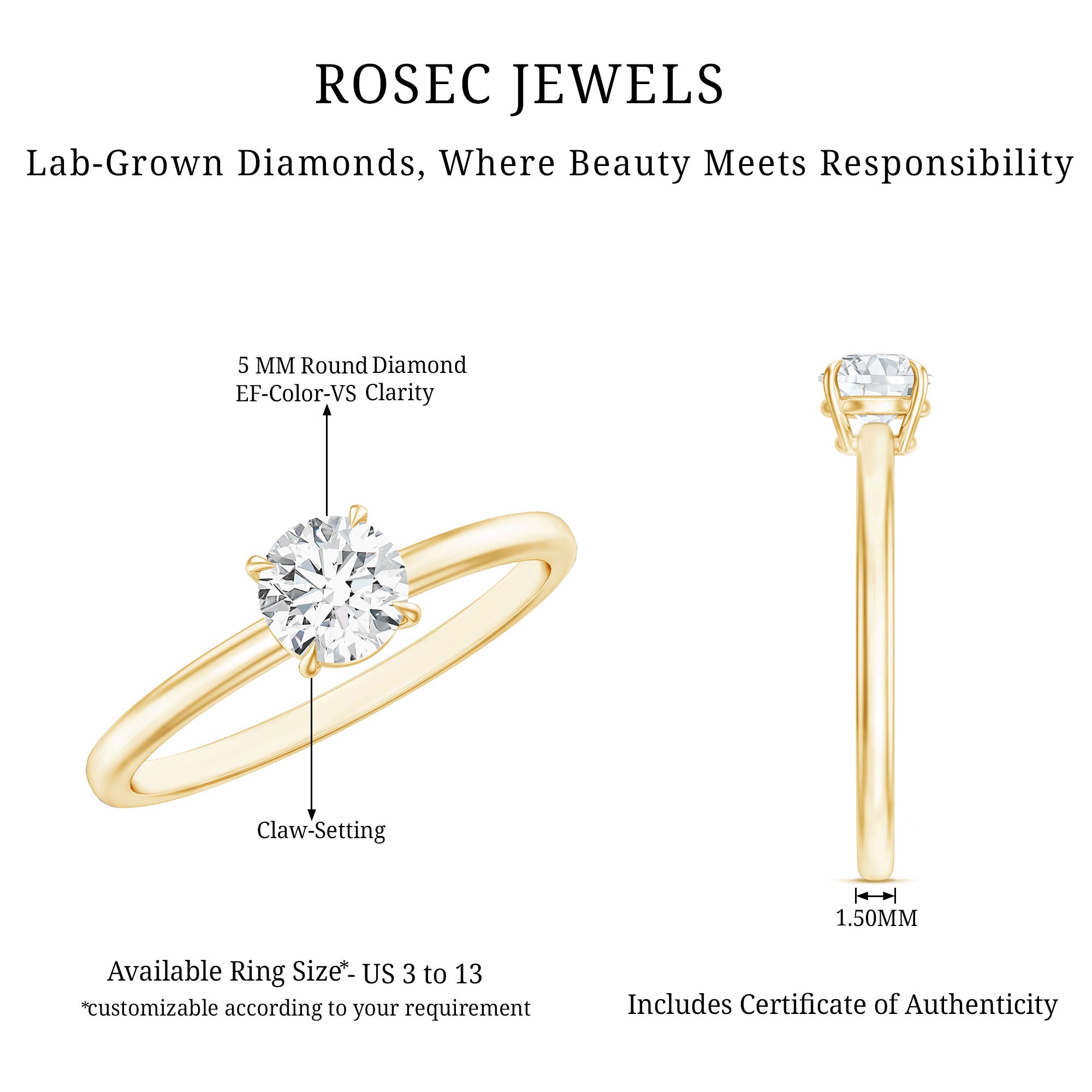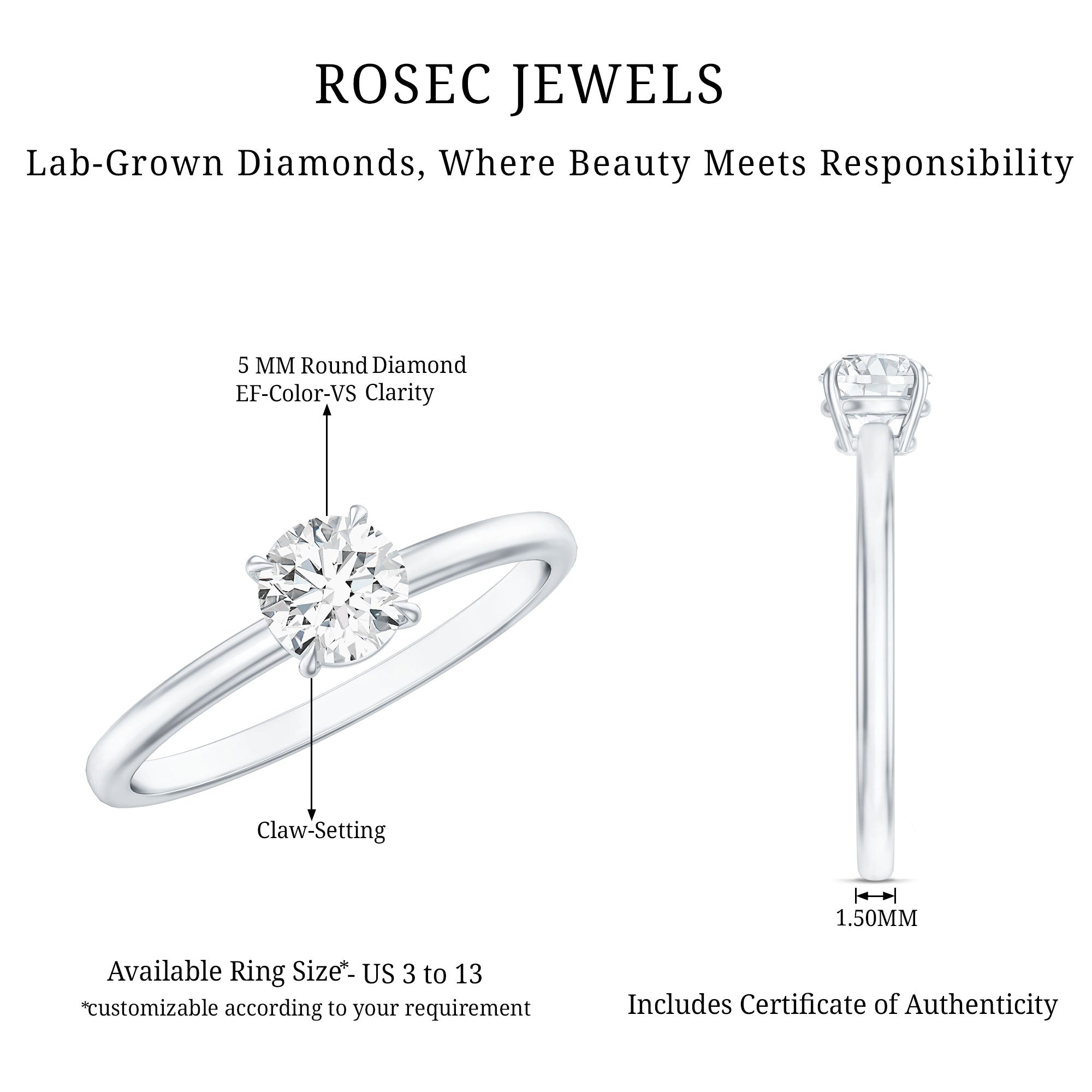Make her day with the gift of this Lab Grown Diamond Solitaire Ring. Adorned with a brilliant Round Lab Grown Diamond, delicately secured within a claw setting, this ring exudes timeless elegance. Crafted from high-quality metal, it offers a touch of luxury and sophistication thats sure to capture her heart. As a symbol of your commitment and love, this Ring serves as a captivating Promise Ring, destined to bring boundless joy to your special someone.