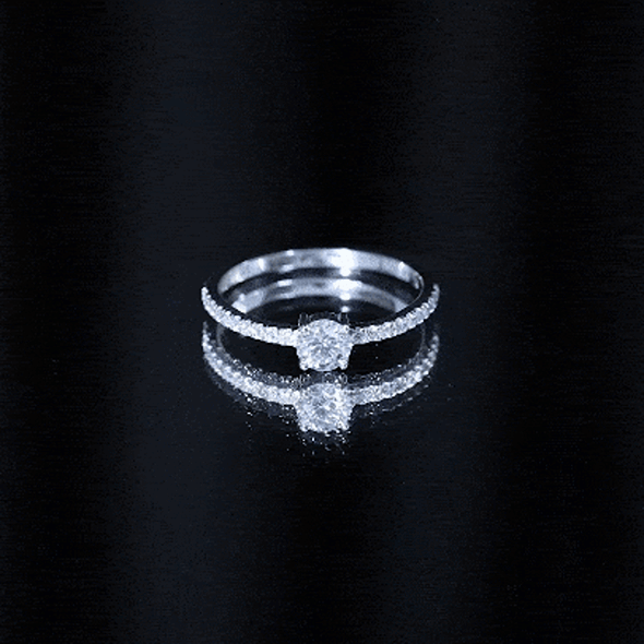 The structured arrangement creates a refined look suited for promise rings and symbolic jewelry styles.