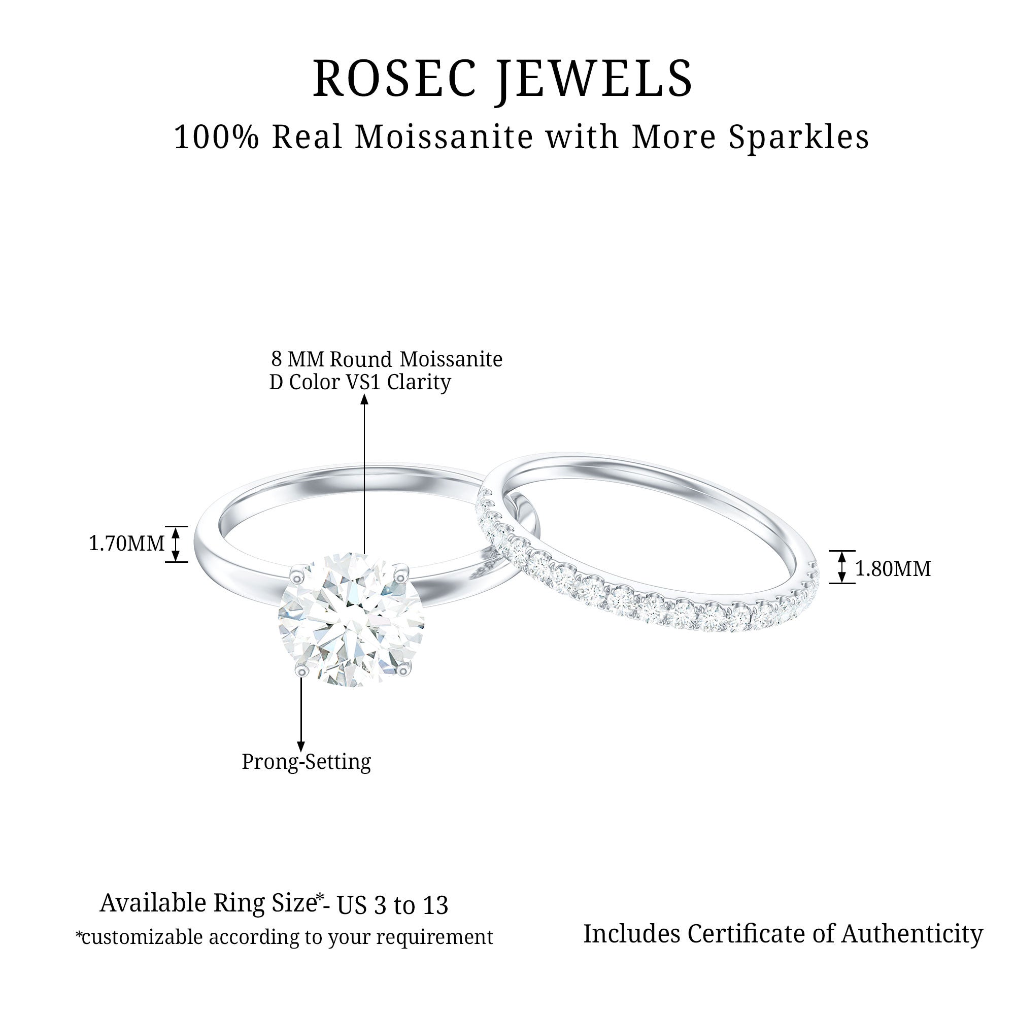 Round Shape Moissanite Solitaire Wedding Ring Set